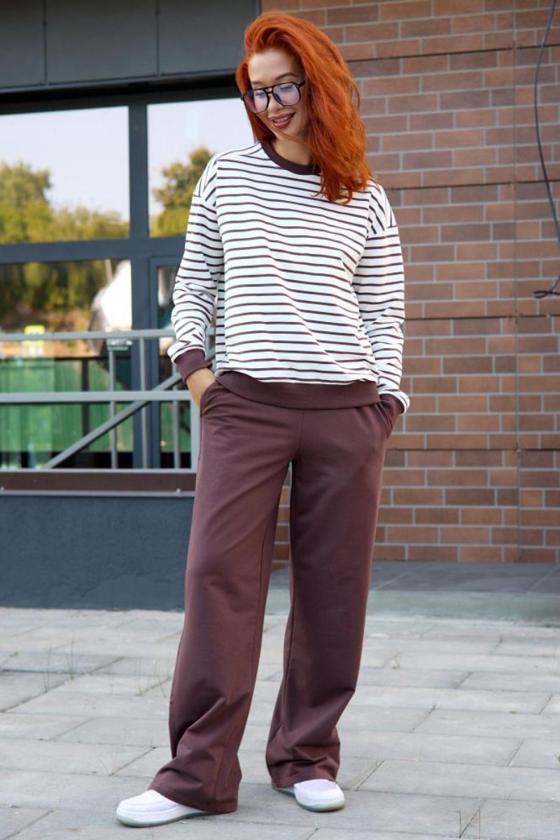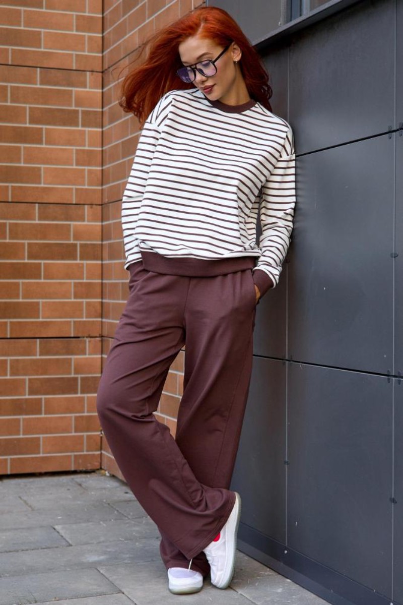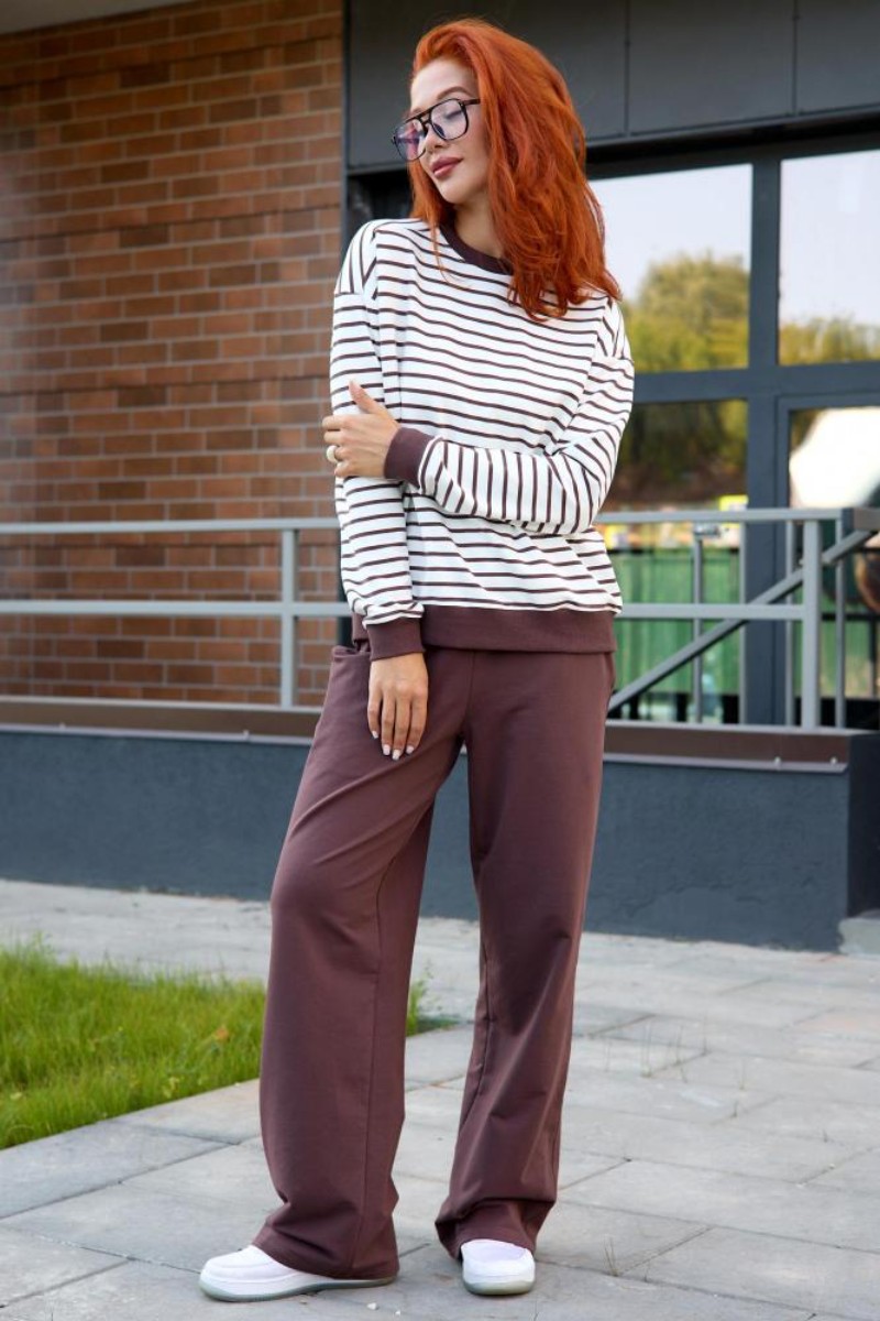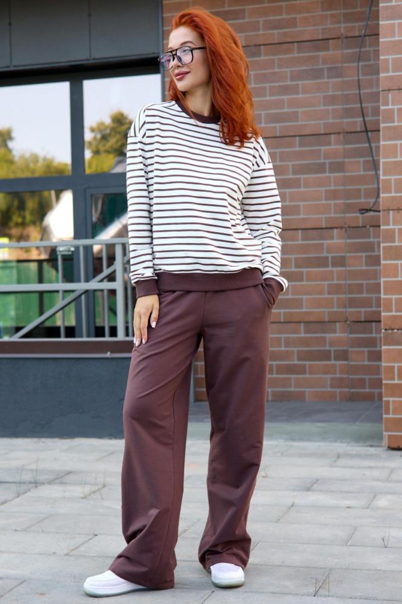Костюм двойка женский "Полоса" футер 2-х нитка (последний размер) коричневый 62