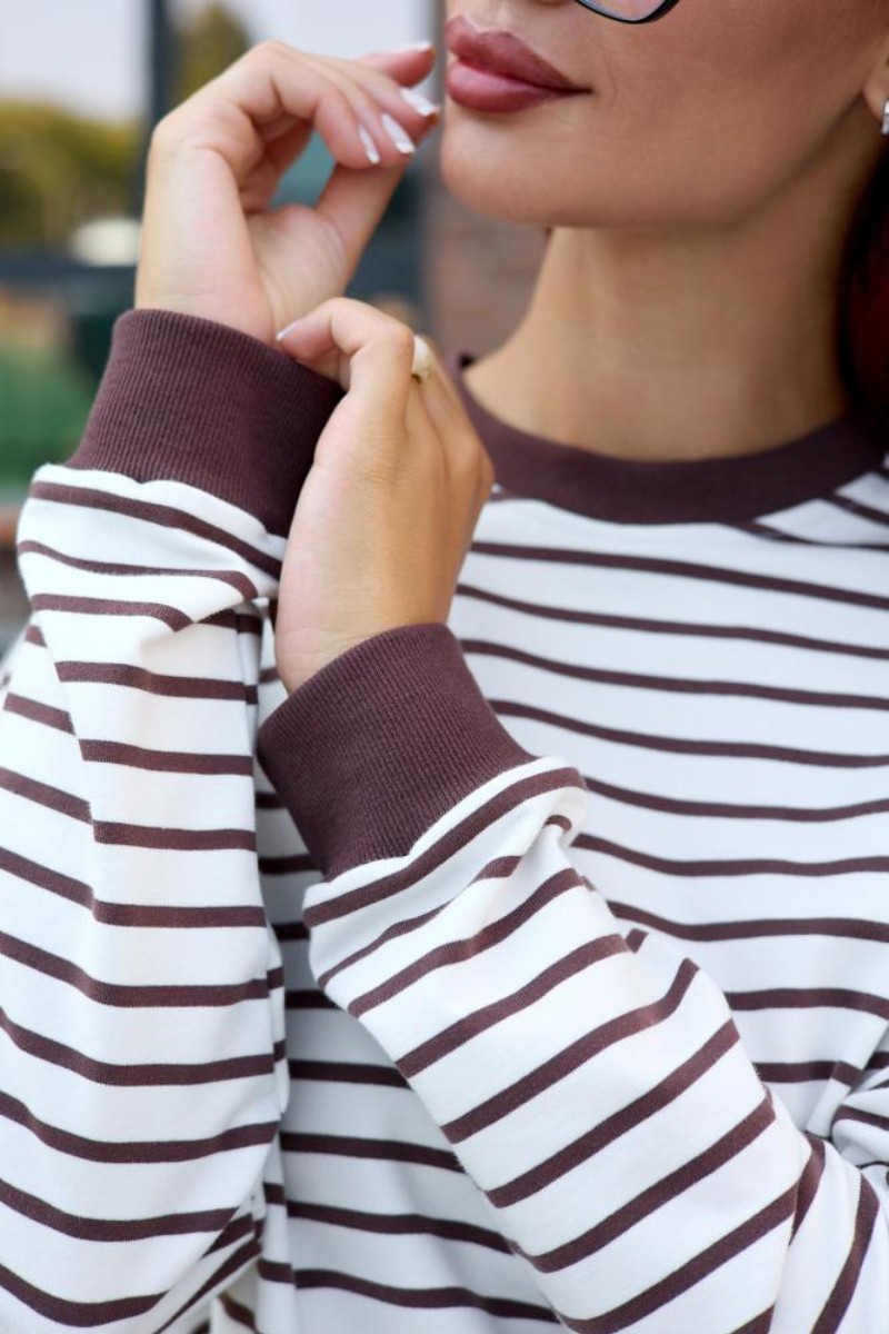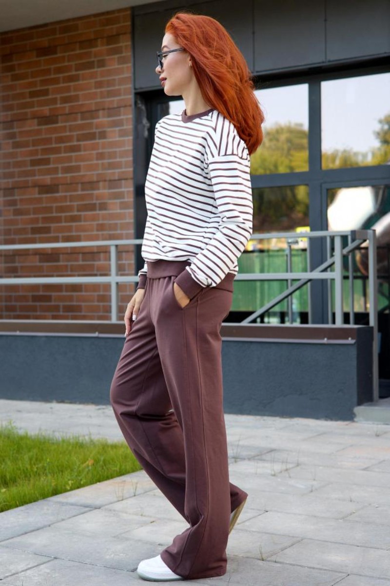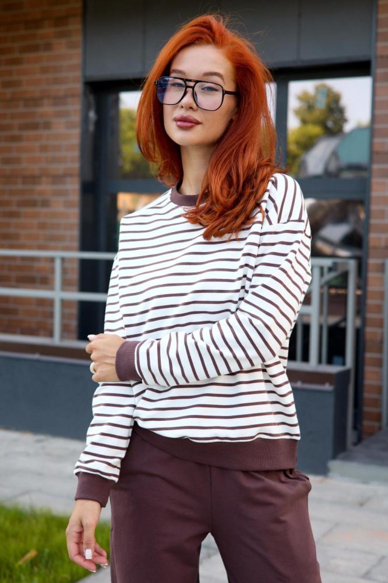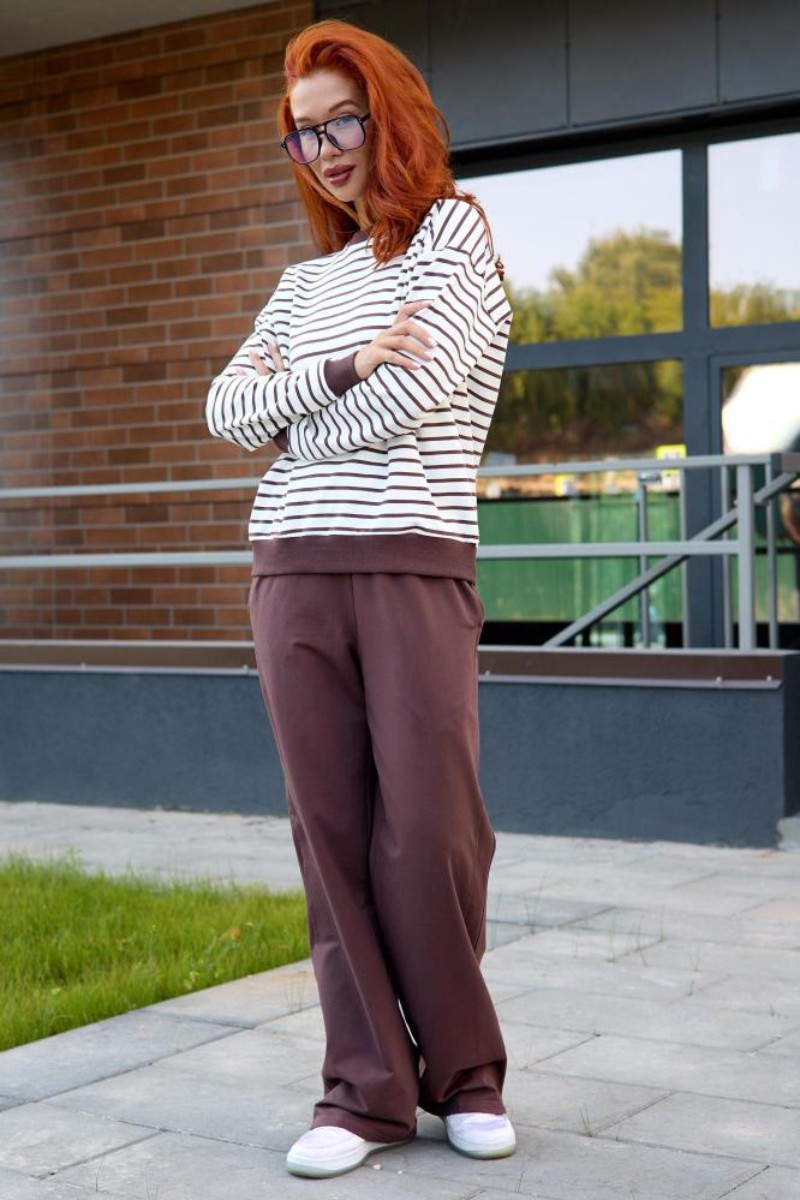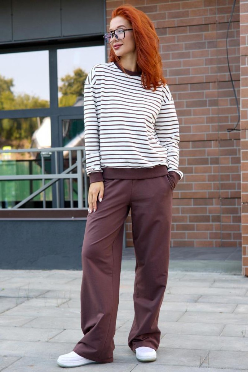 Костюм двойка женский "Полоса" футер 2-х нитка (последний размер) коричневый 62