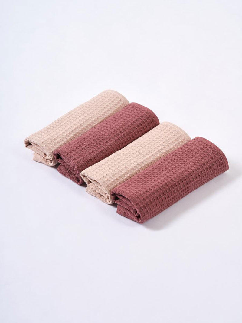 Набор вафельных полотенец "Ночь Нежна" коричневый-пыльно-бежевый 4 шт.