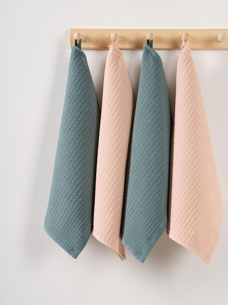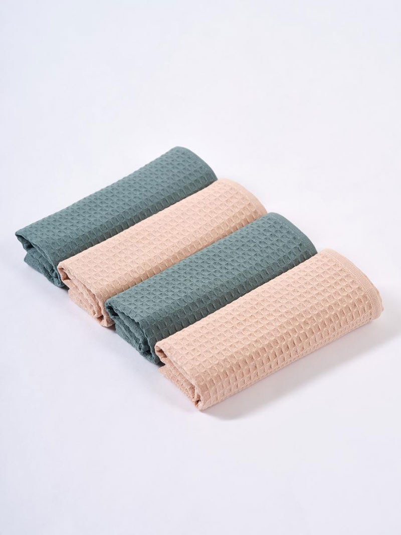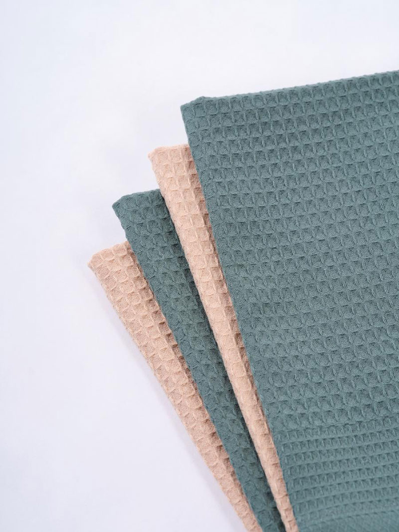 Набор вафельных полотенец "Ночь Нежна" темно-зеленый-бежевый 4 шт.