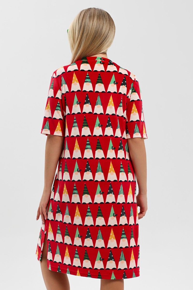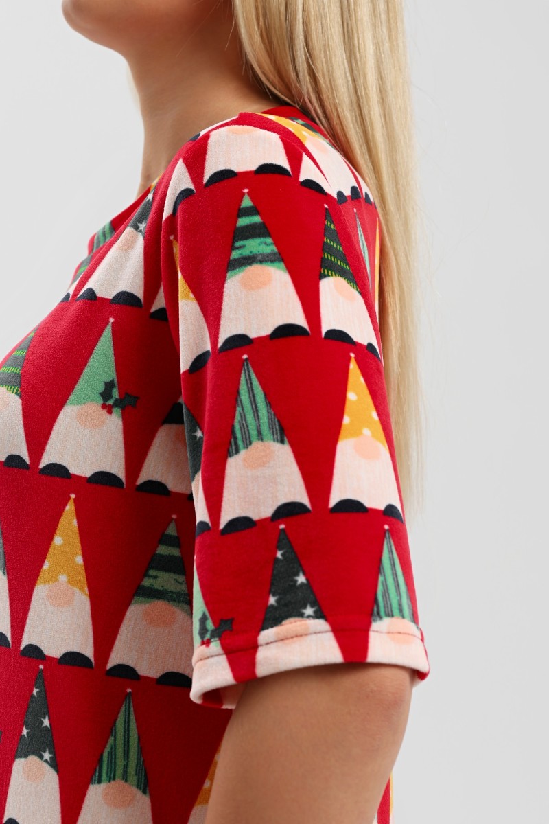 Представляем Вашему вниманию тунику из трикотажного полотна «велюр стрейч» с набивным рисунком, свободного покроя, с короткими втачными рукавами, горловиной овальной формы, обработанной втачной планкой и разрезами в боковых швах.