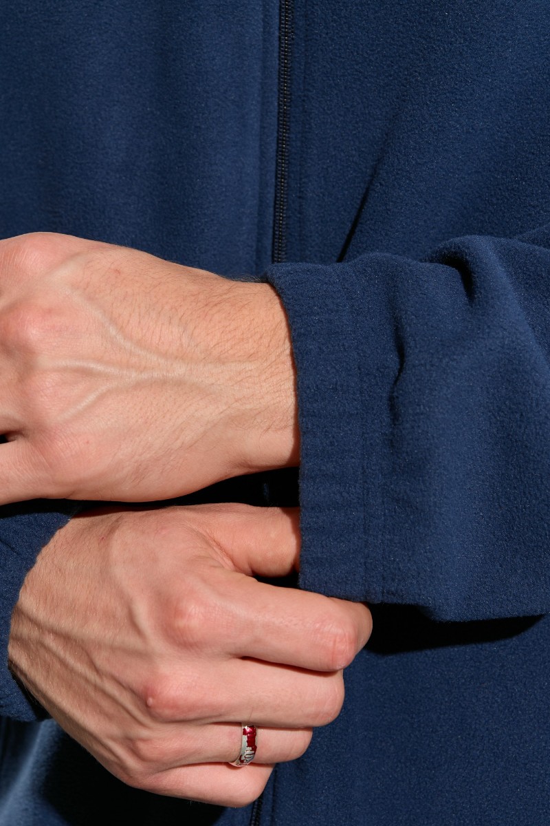 Представляем Вашему вниманию куртка-толстовку мужскую из флиса, с длинными втачными рукавами, воротником-стойкой и центральной бортовой застежкой на тесьму "молния". На полочках -кокетки и накладные карманы с вертикальными входами, на левой полочке в области груди - вышивка. Нижние срезы рукавов обработаны подгибкой с эластичной тесьмой, а низ изделия - с вложением в шов шляпной резинки с фиксаторами для регулирования степени прилегания изделия по бедрам.