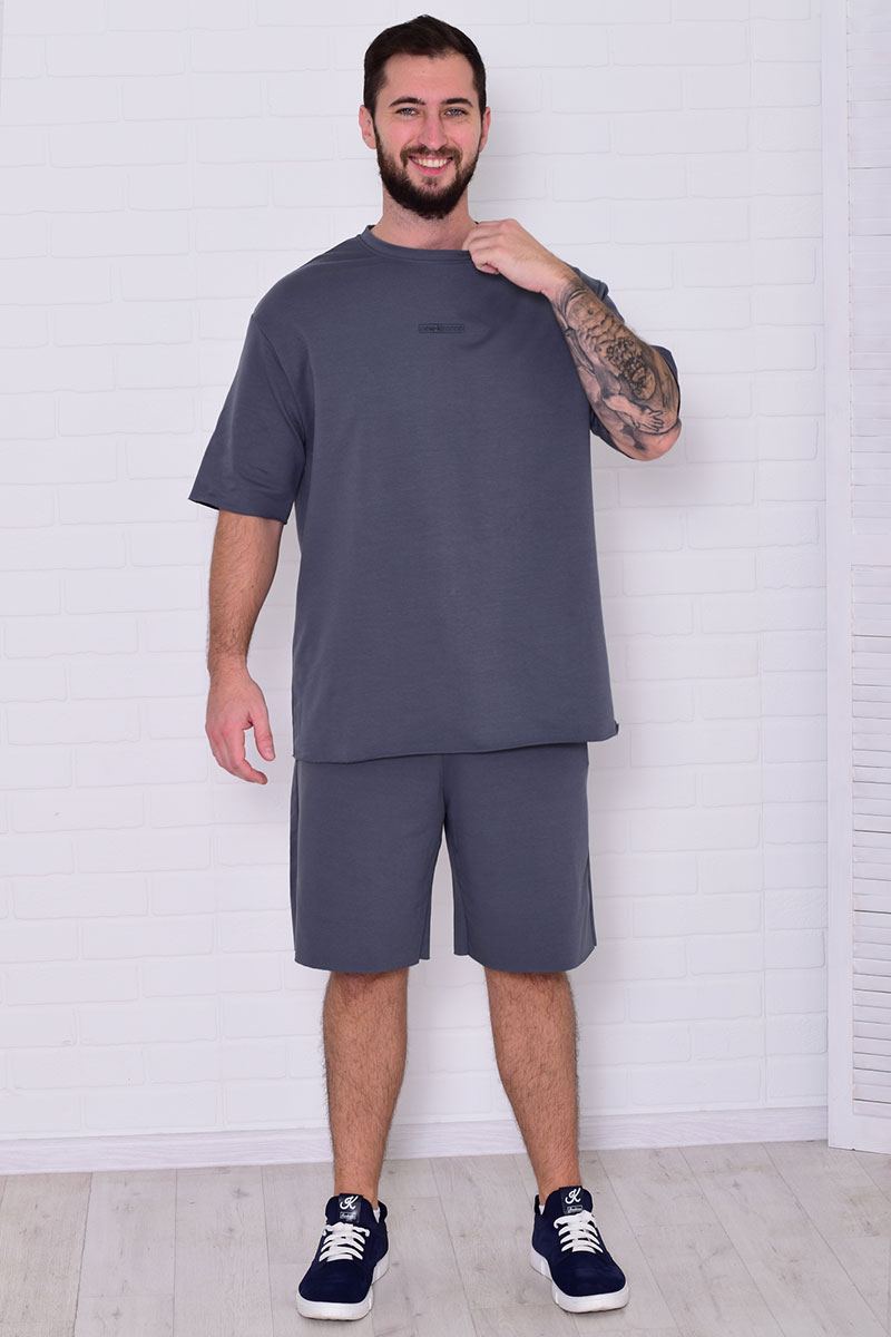 Костюм двойка мужской 9219 футер 2-х нитка (последний размер) графит 50,54