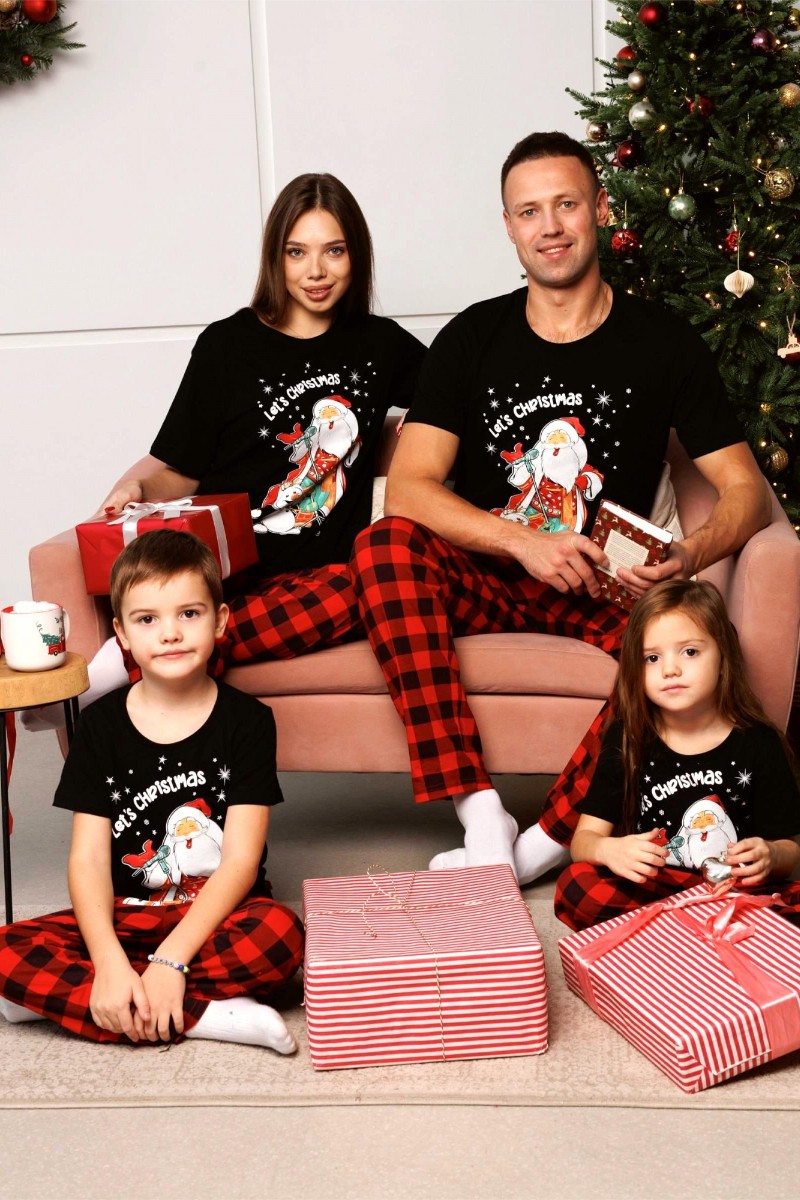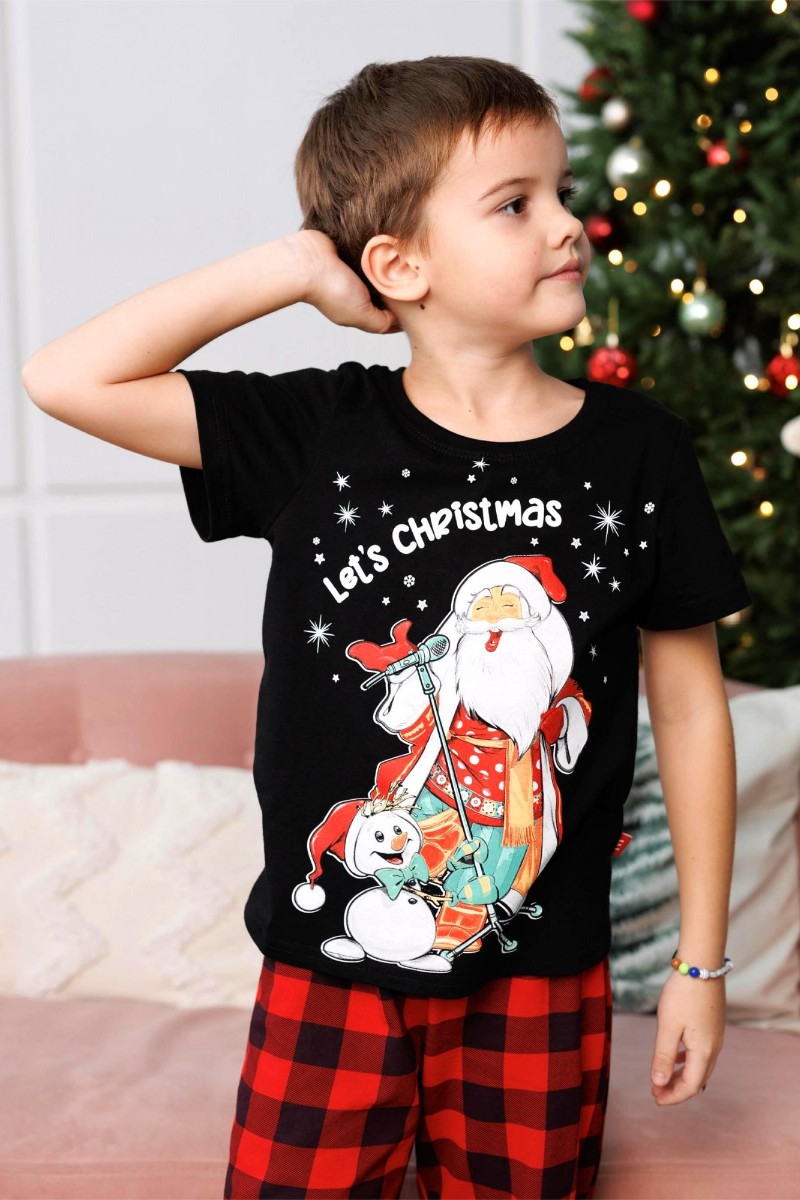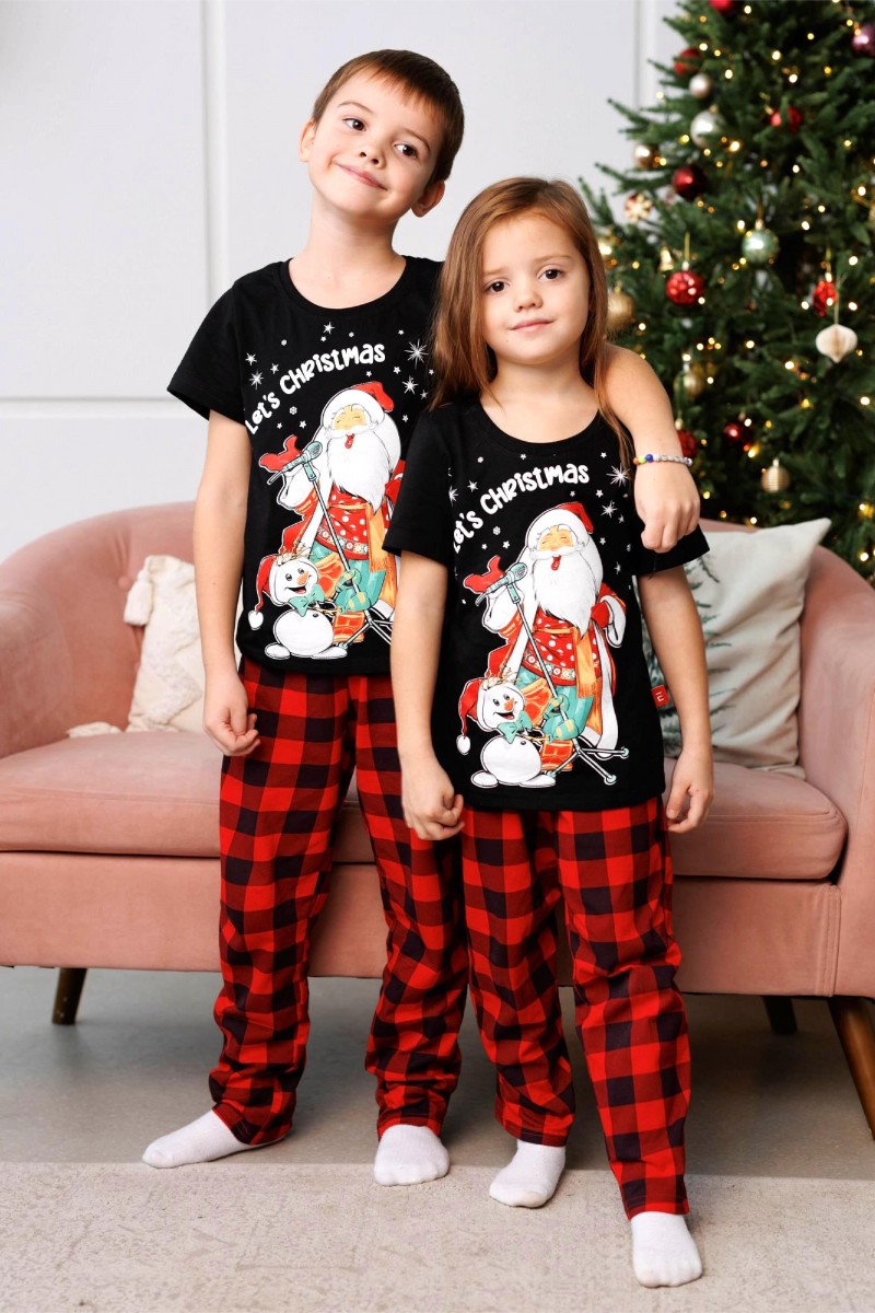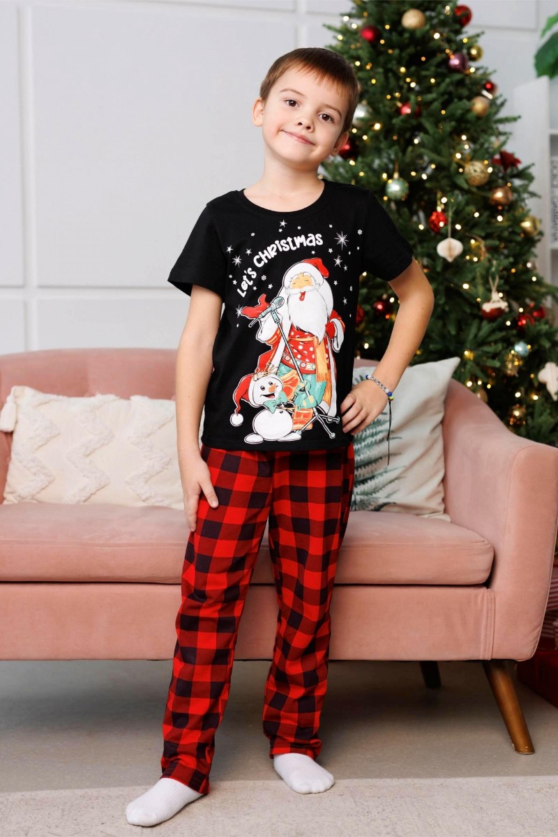 Пижама детская 3046 "Дед Мороз" трикотаж (последний размер) брюки красные 140