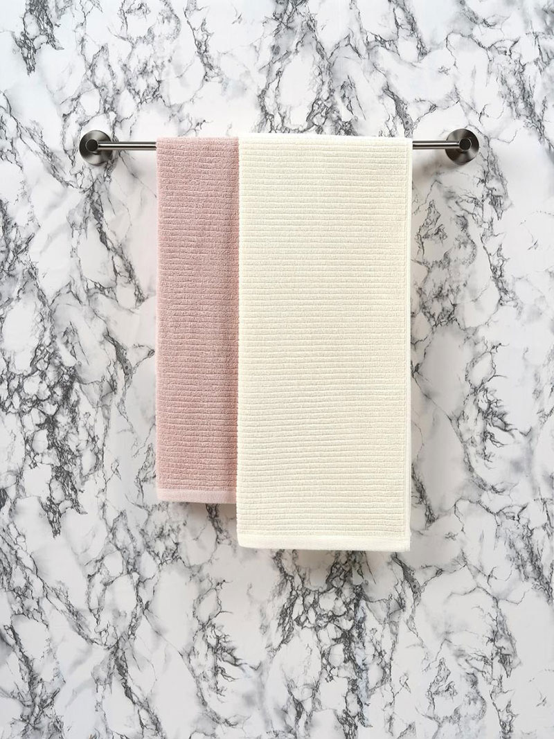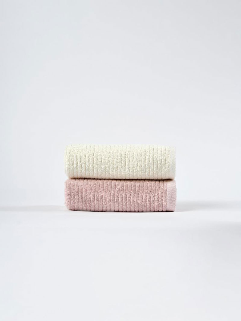Набор махровых полотенец "OZ Полоса" нежно-бежевый-пыльная роза 2 шт.