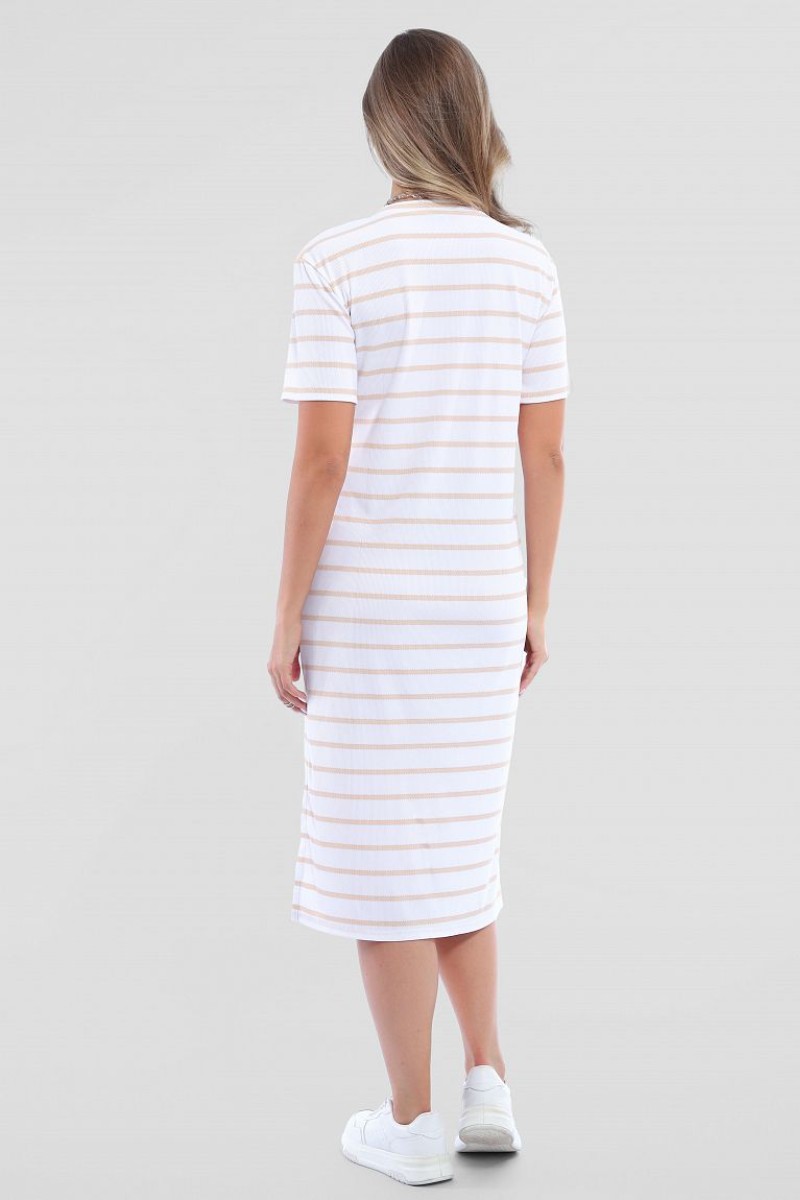 Представляем Вашему вниманию платье женское длиной ниже колена, полуприлегающего силуэта и слегка зауженное к низу. Горловина округлой формы с обтачкой. Рукава втачные короткие. В левом боковом шве платья высокий разрез. Без карманов.