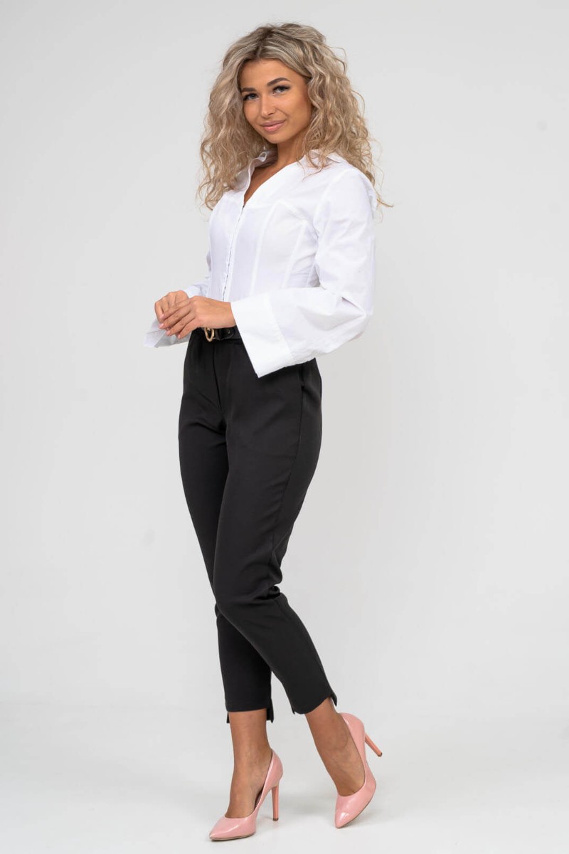 Представляем Вашему вниманию брюки женские полуприлегающего силуэта, с асимметричным низом. Спереди брюк есть карманы, верхний срез обработан поясом на резинке.