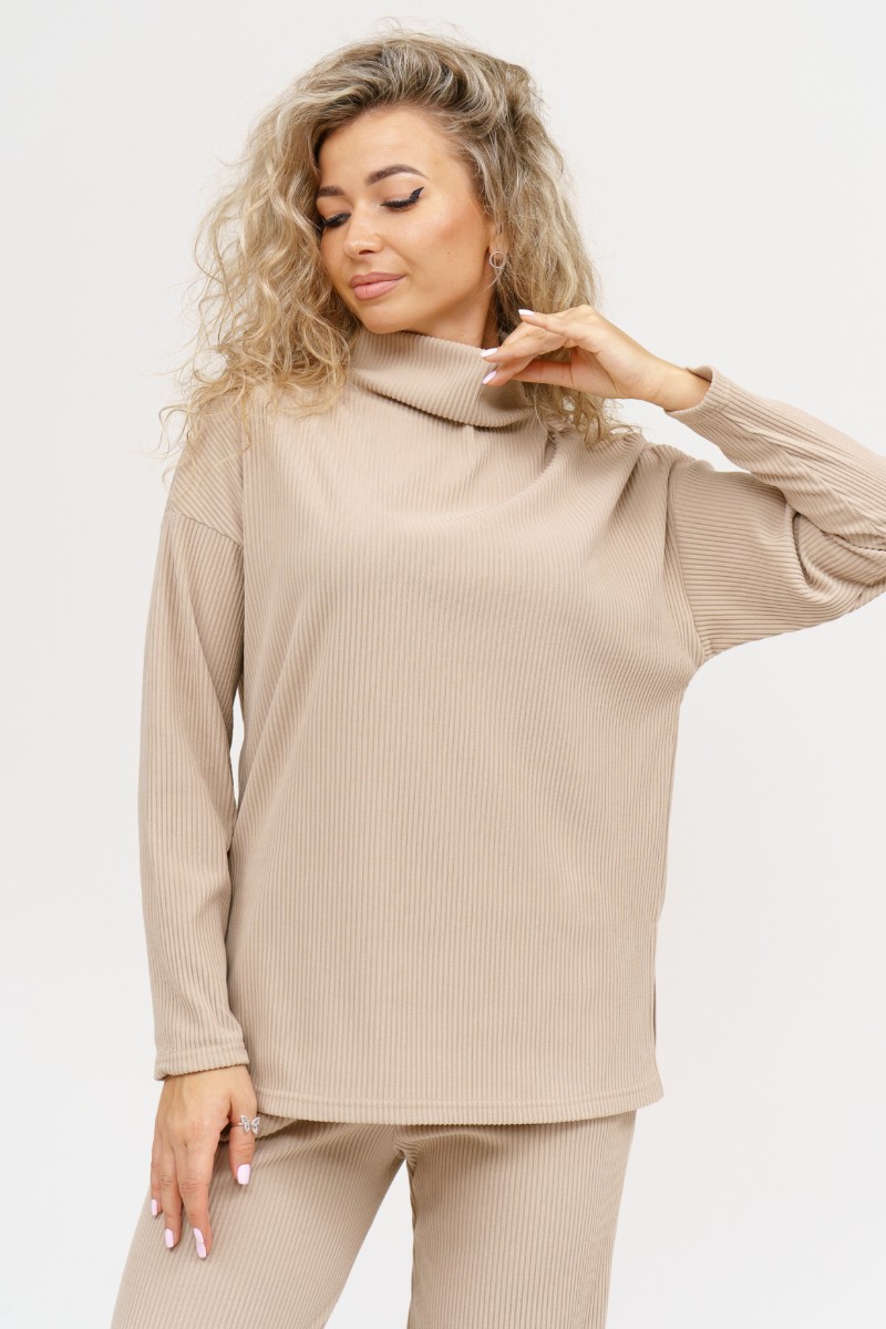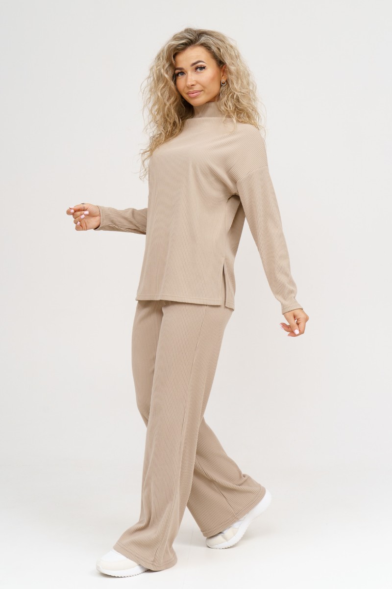 Костюм двойка женский 955 лапша рубчик с кашемиром (последний размер) бежевый 50