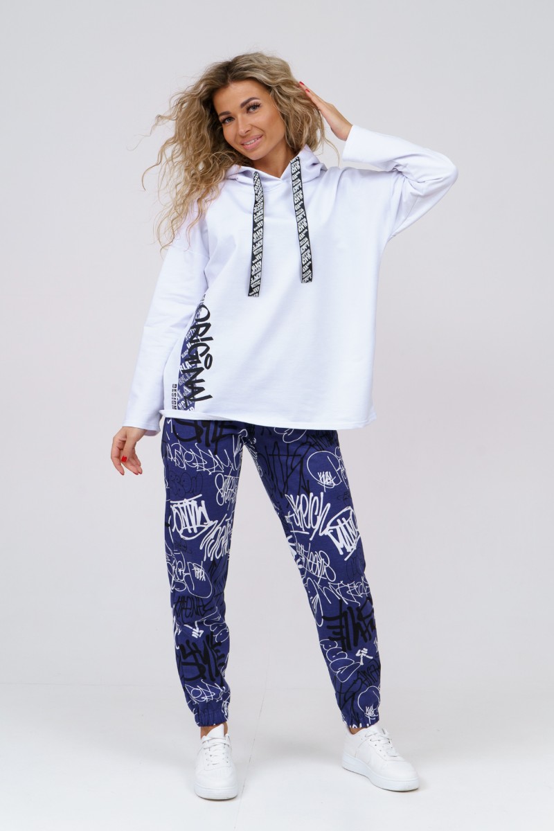 Представляем Вашему вниманию женский костюм двойку, сшитый из приятного телу, воздухопроницаемого материала. Комплект имеет интересную расцветку, которая красиво смотрится и поднимает настроение. Костюм хорошо сидит на фигуре и подчеркивает её достоинства. В нём Вы будете чувствовать себя комфортно и уверенно.
