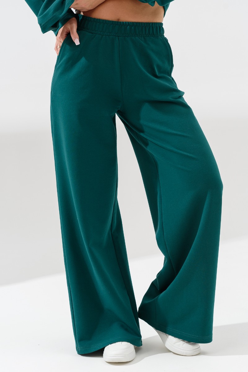 Брюки женские 2372-Фут "Палаццо" футер (р-ры: 46-56) изумрудный