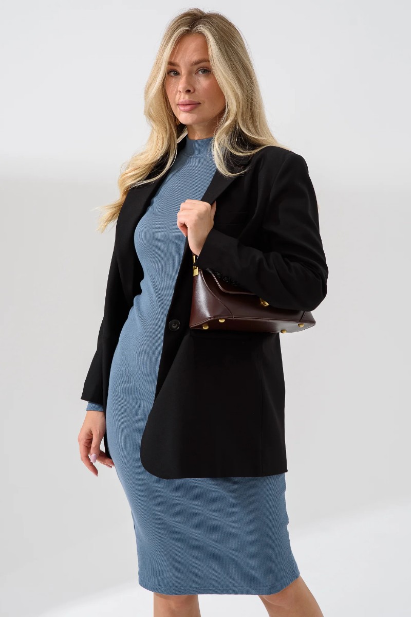 Представляем Вашему вниманию платье женское прилегающего силуэта – «футляр», из однотонного трикотажного х/б полотна с выработкой «рубчик». Изделие базового покроя, с длинным втачным рукавом на манжете и воротником – стойкой, длиной ниже линии колена. Платье прекрасно впишется, как в классический, так и спортивный стиль девушки-модницы, желающей подчеркнуть стройность своей фигуры.