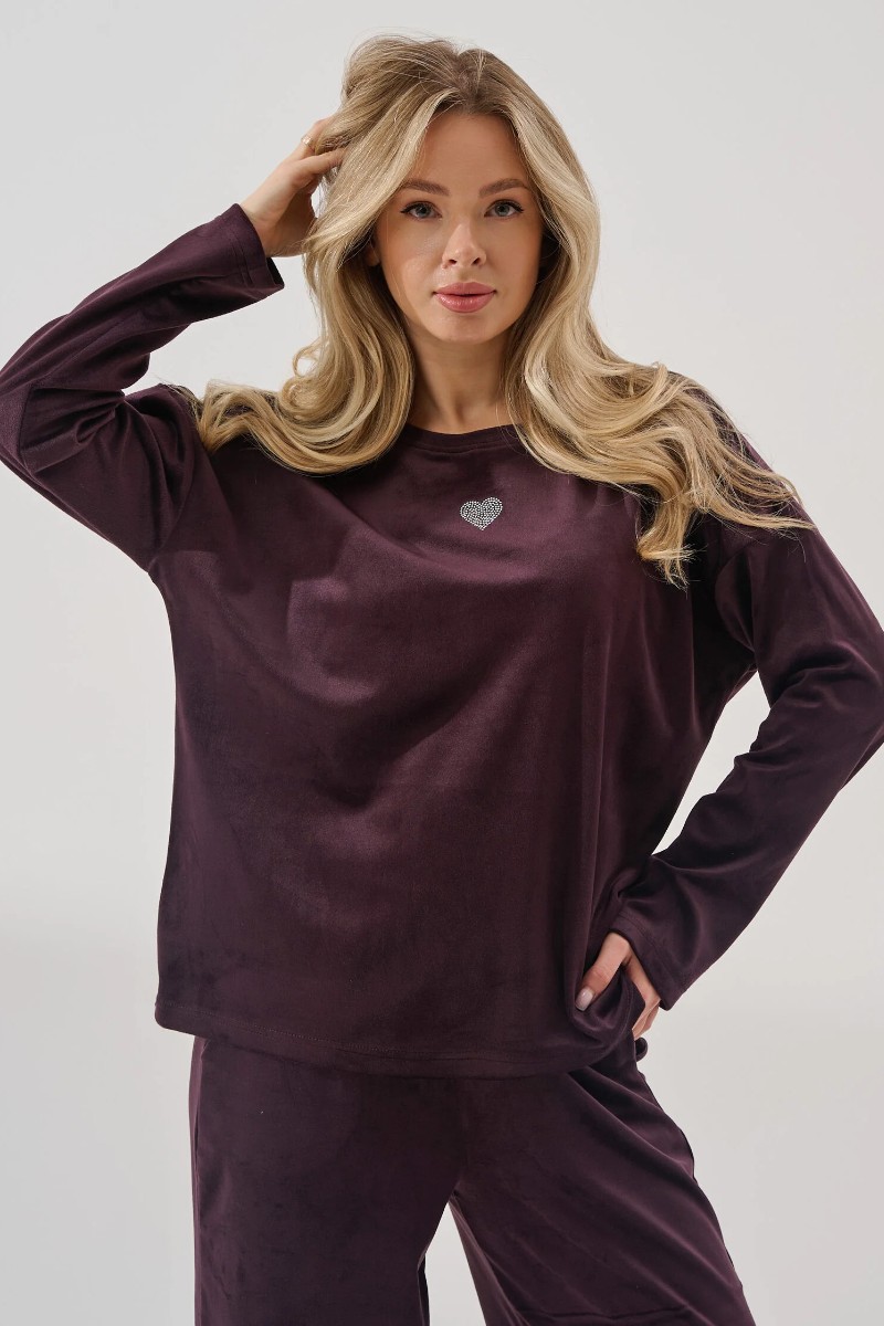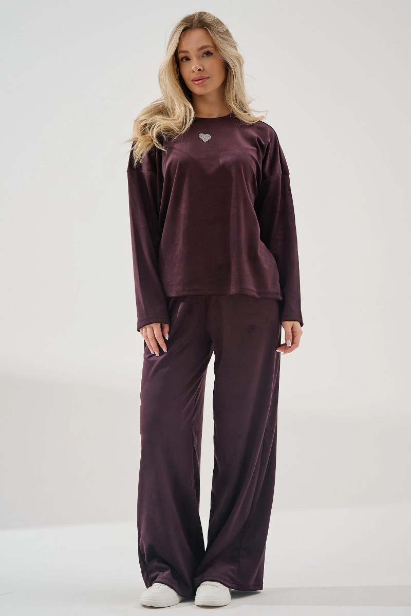 Костюм двойка женский "Бархат" 2406-В велюр (р-ры: 46-56) бордовый