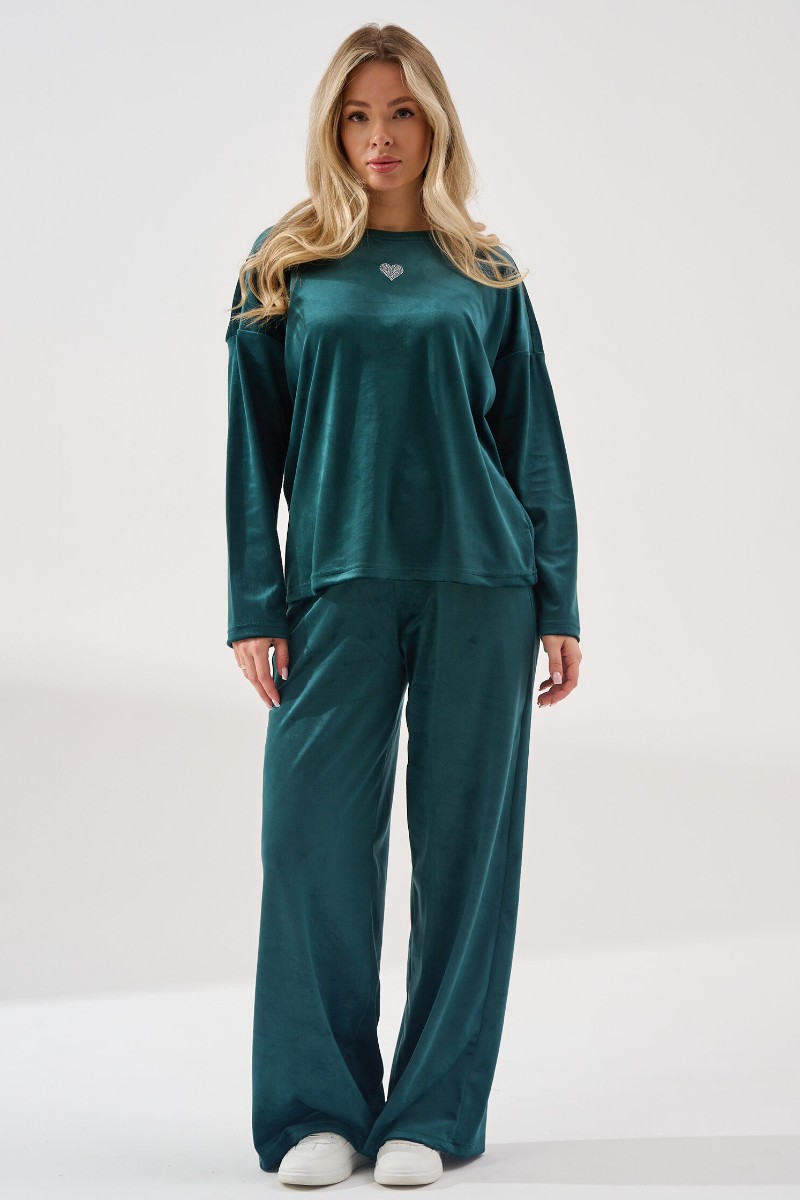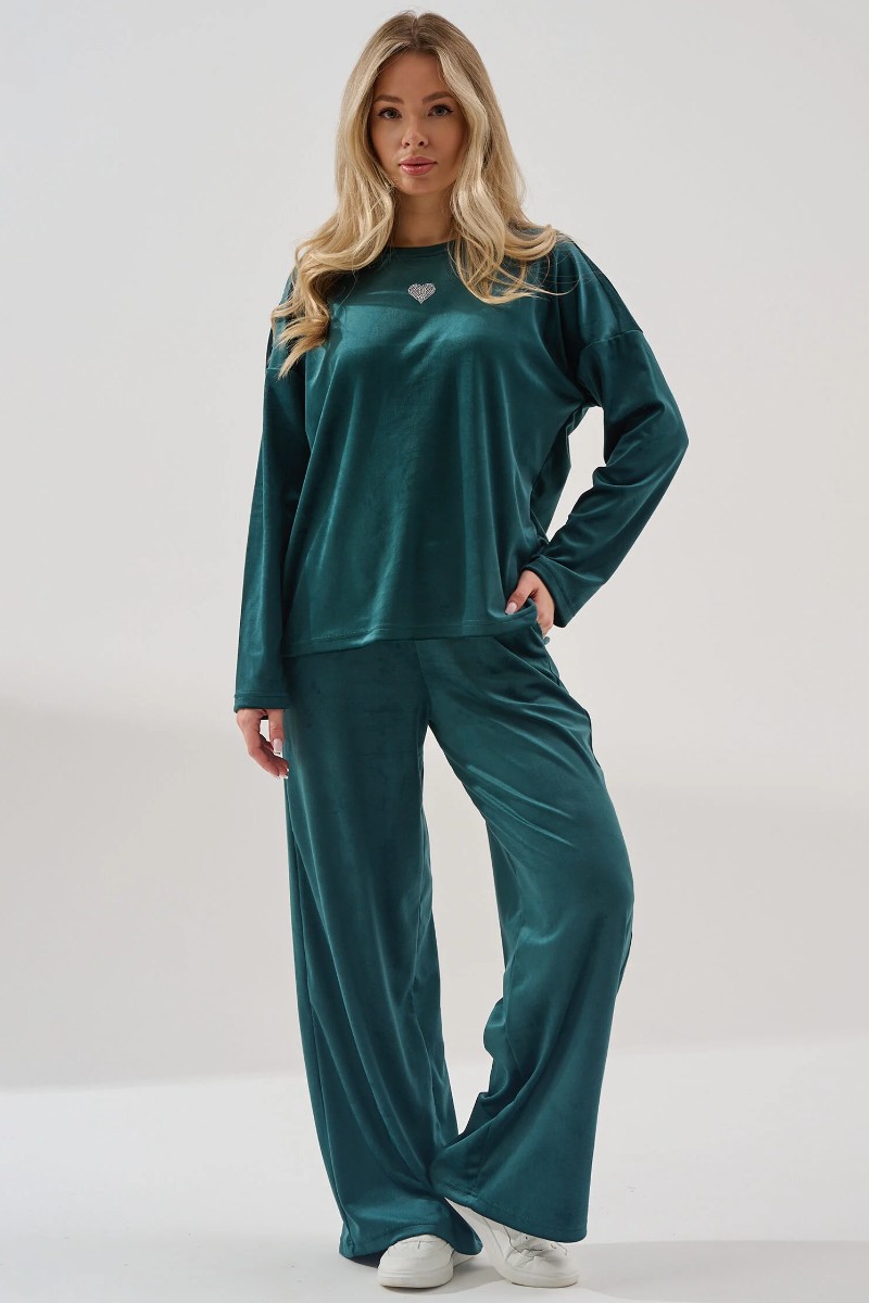 Костюм двойка женский "Бархат" 2406-В велюр (р-ры: 46-56) изумрудный