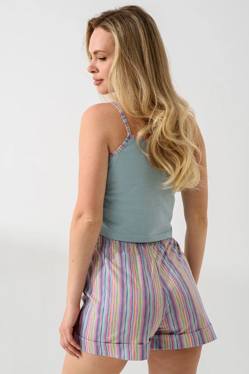 Представляем Вашему вниманию легкую женскую пижаму, сшитую из 100% хлопка. Комплект имеет яркую расцветку, которая интересно смотрится и поднимает настроение. Изделие красиво сидит на фигуре и подчеркивает её достоинства. В ней Ваш сон будет максимально приятным и расслабляющим.