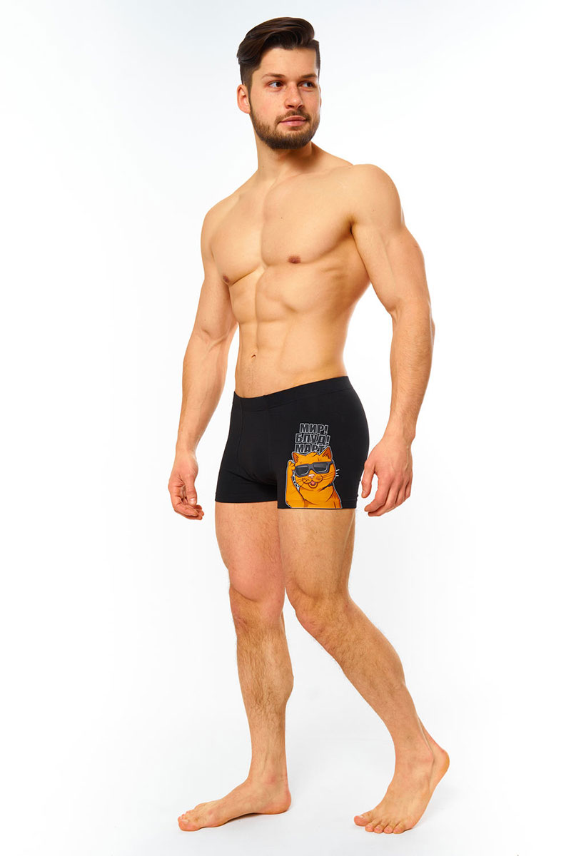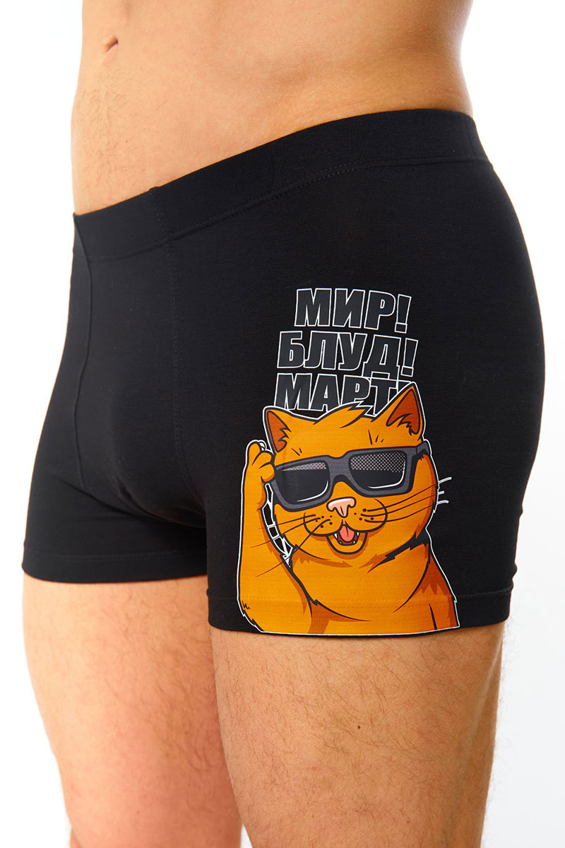 Трусы мужские "Мартовский кот" кулирка с лайкрой пенье (р-ры: 46-56) черный