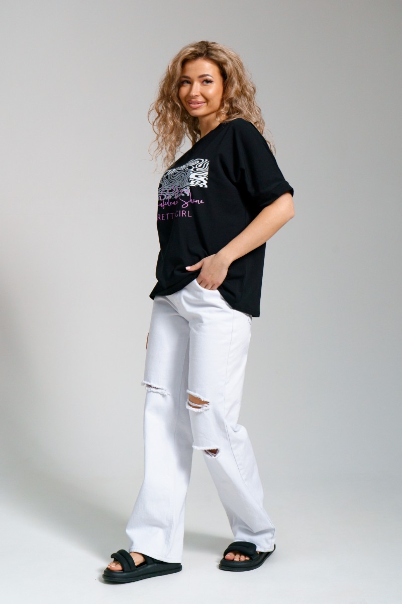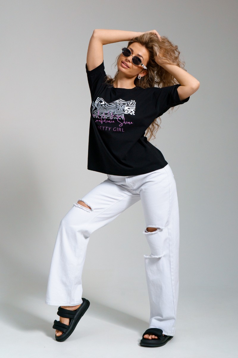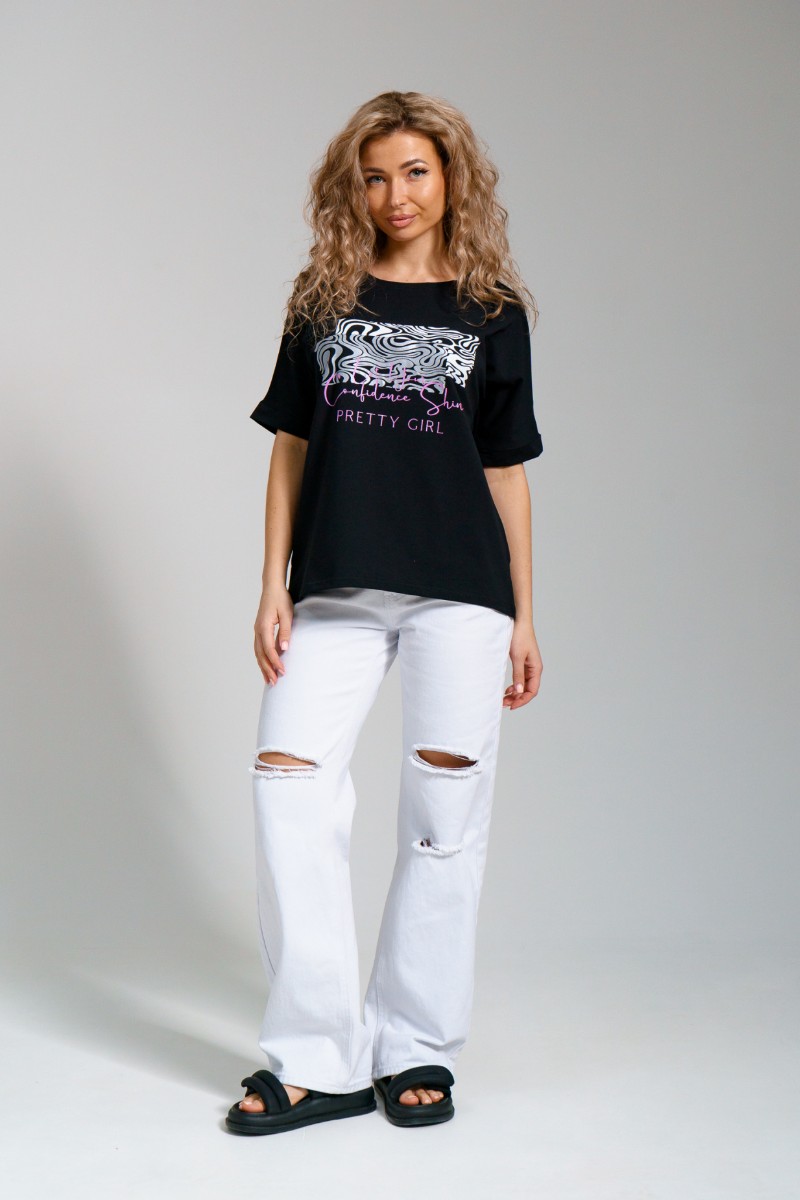 Представляем Вашему вниманию легкую женскую футболку, которая отлично сочетается с любым низом. Модель выполнена из высококачественного, натурального хлопка, который хорошо пропускает воздух, позволяя коже дышать.