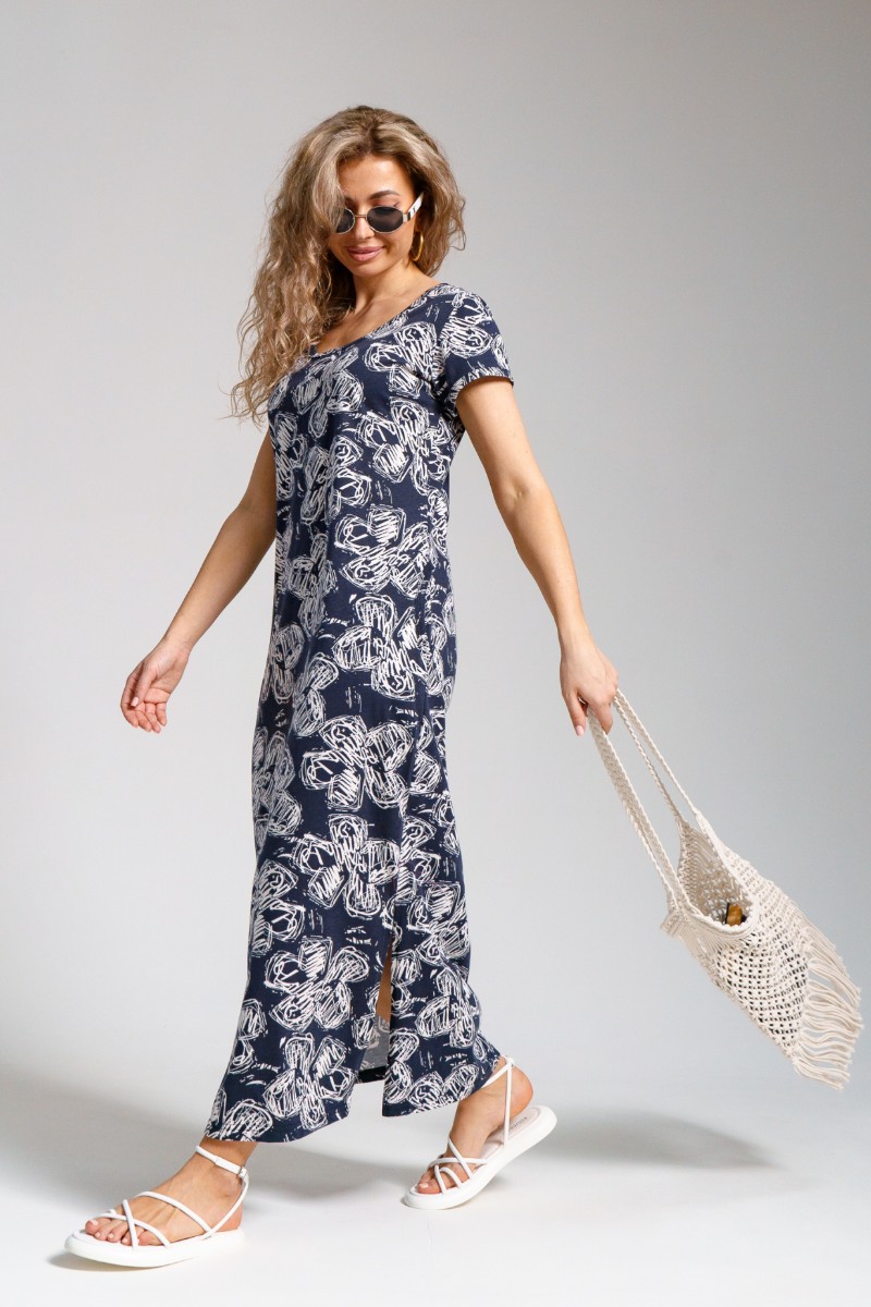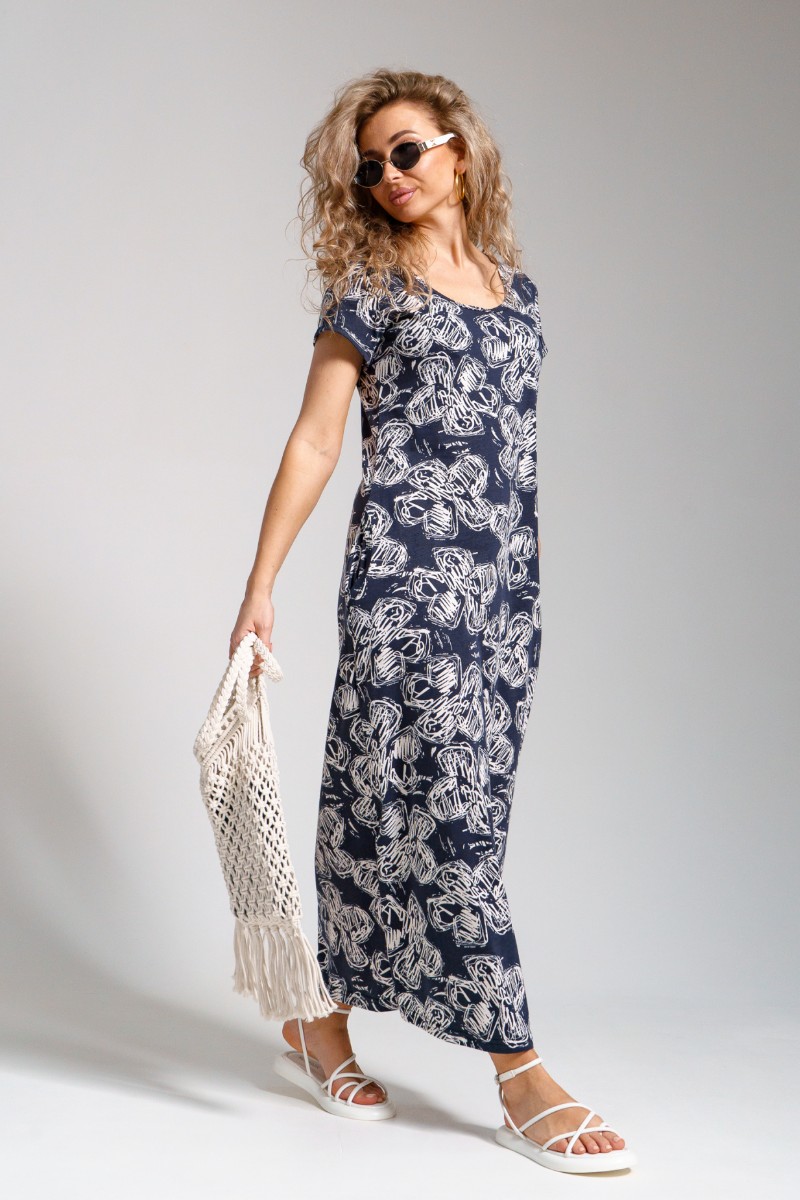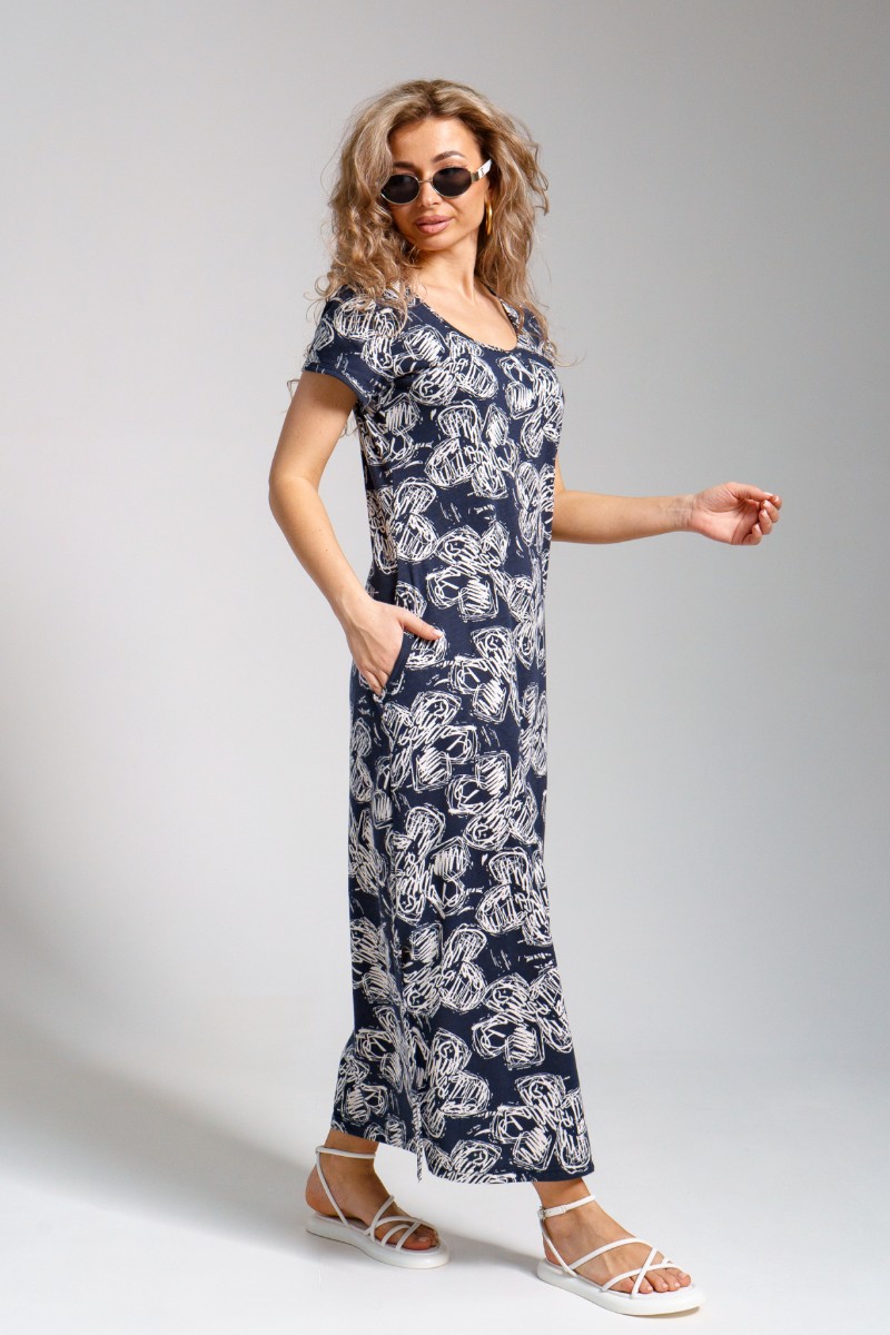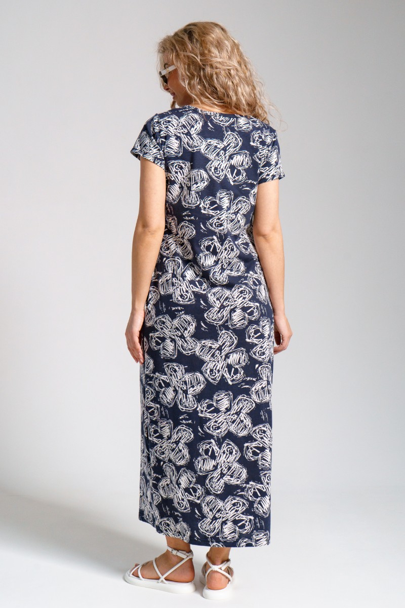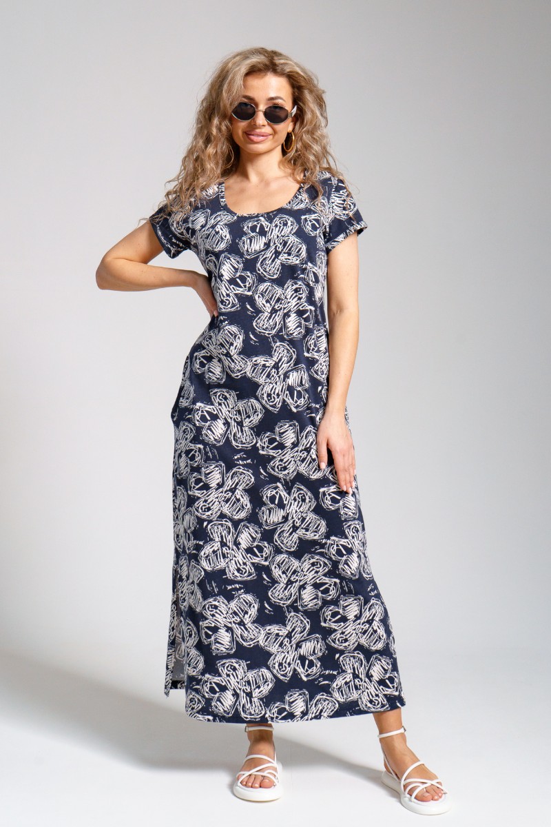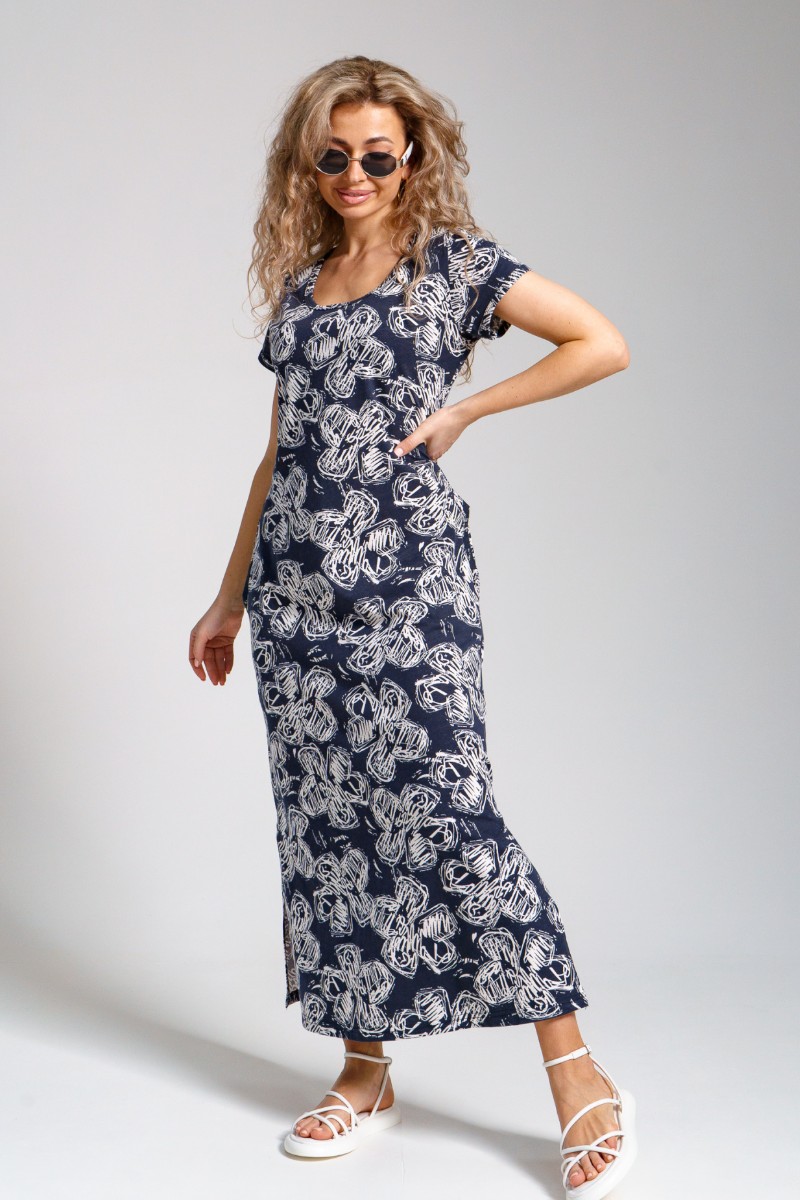 Платье женское 643 кулирка (последний размер) цветы т.синий 50