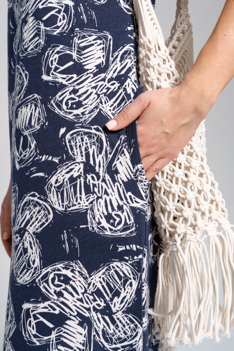 Представляем Вашему вниманию яркое и легкое женское платье полуприлегающего силуэта из набивной хлопковой ткани. Горловина округлой формы обработана из основной ткани. Рукав втачной, короткий. В боковых швах выполнены функциональные карманы. С двух сторон высокий разрез. Идеальная посадка на любую фигуру. Красивое платье способно преобразить любую девушку, а модный образ придает уверенность в себе и просто поднимает настроение.