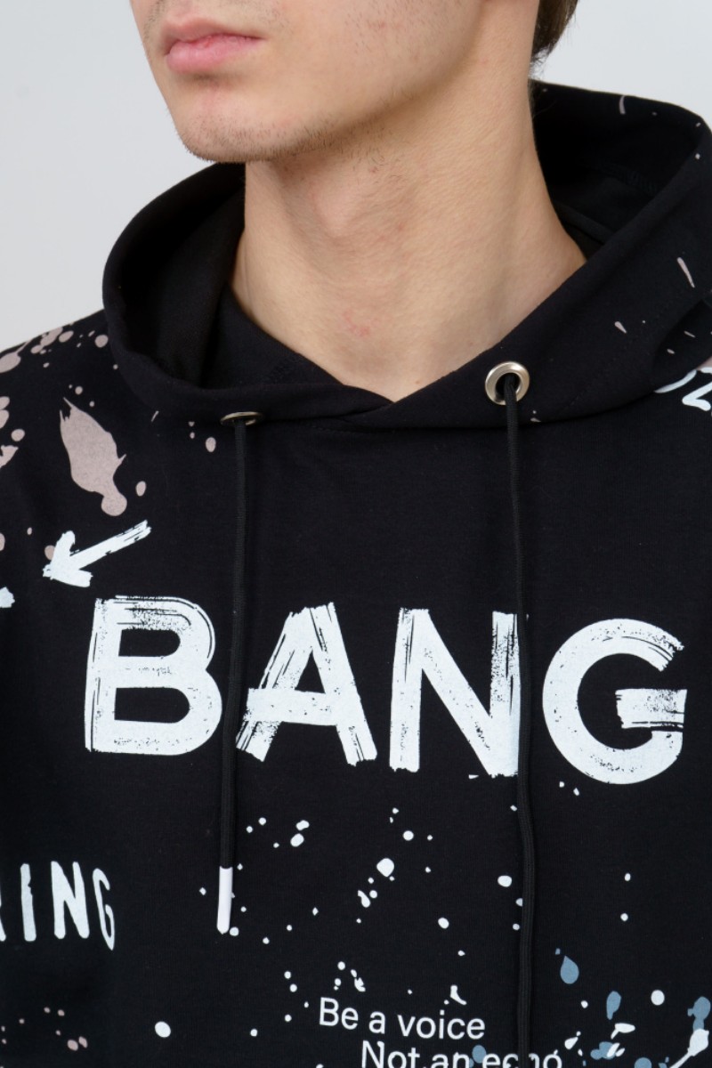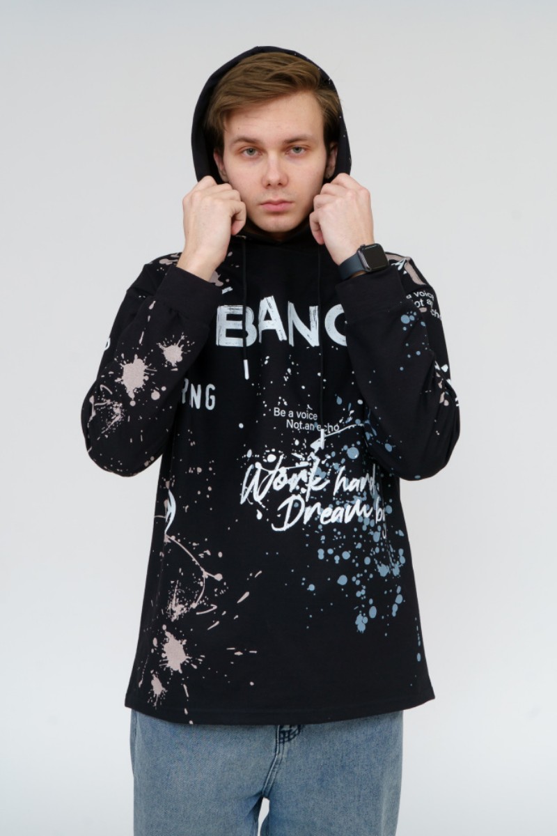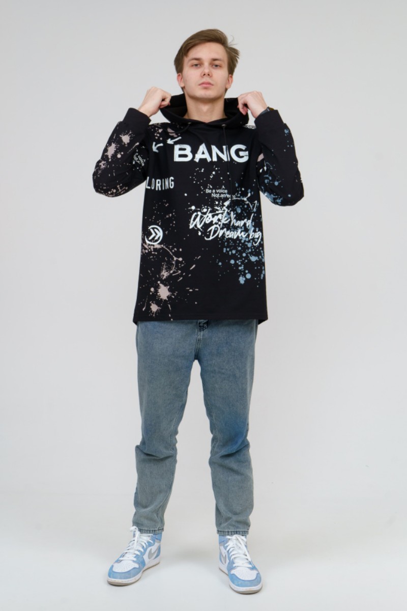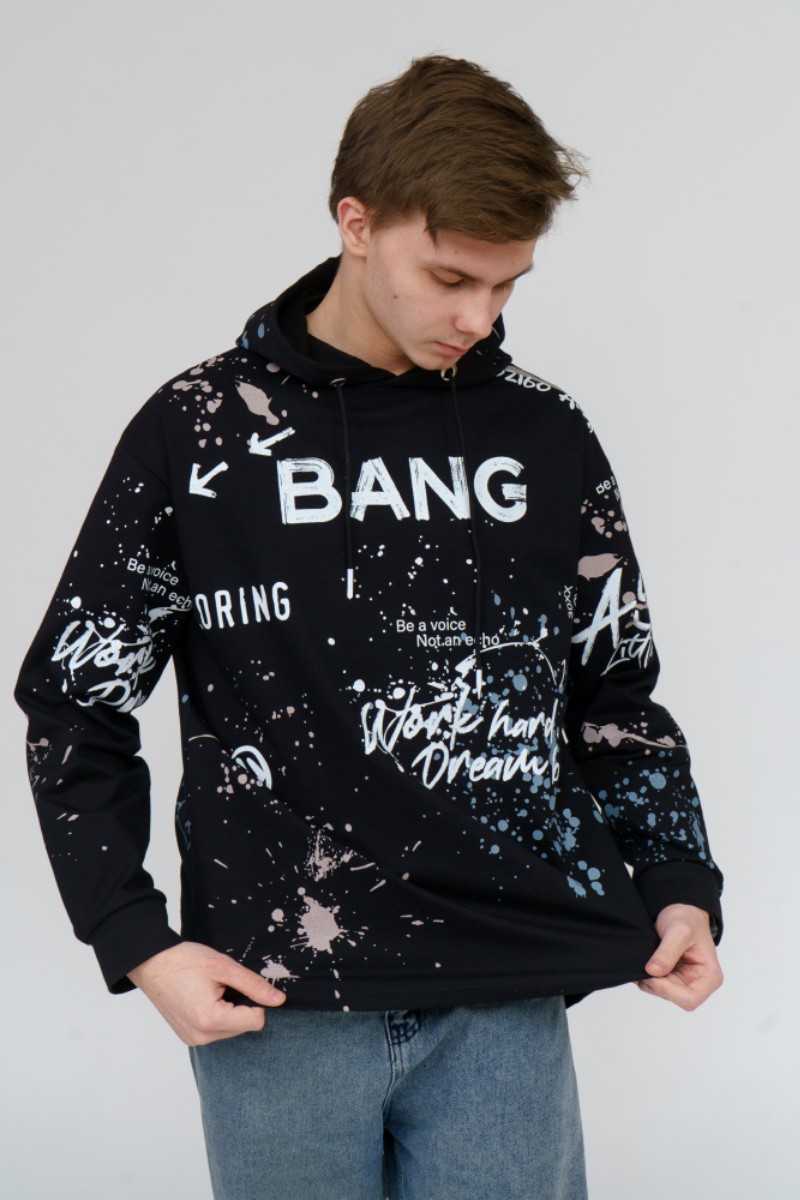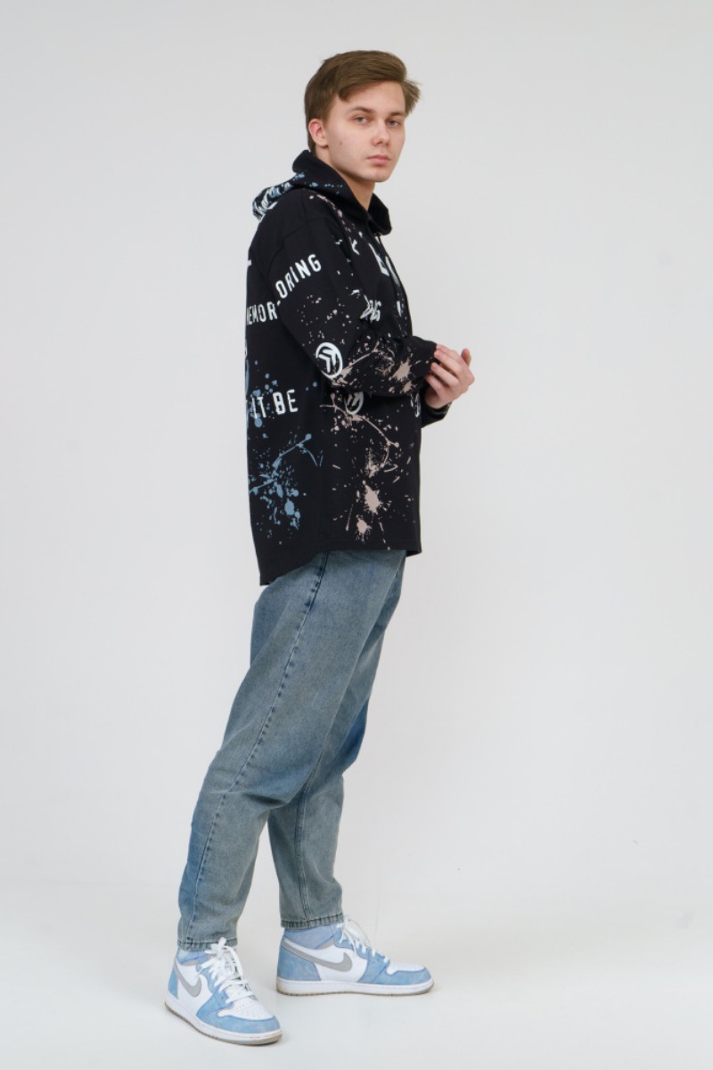 Представляем Вашему вниманию стильное, современное и удобное мужское худи oversize покроя. Модель полностью декорирована контрастным принтом. Изделие с длинным рукавом на манжете, с капюшоном и кулисой со шнуром внутри. Этот стиль помогает гармонично вписать спортивную одежду в повседневный гардероб.