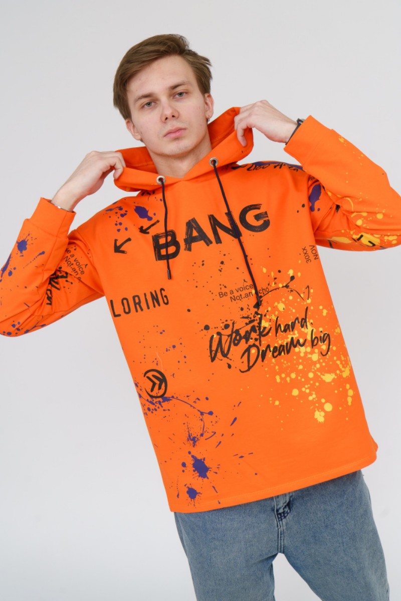 Представляем Вашему вниманию стильное, современное и удобное мужское худи oversize покроя. Модель полностью декорирована контрастным принтом. Изделие с длинным рукавом на манжете, с капюшоном и кулисой со шнуром внутри. Этот стиль помогает гармонично вписать спортивную одежду в повседневный гардероб.