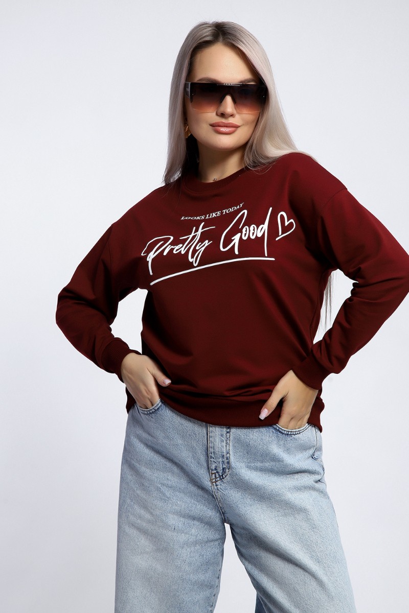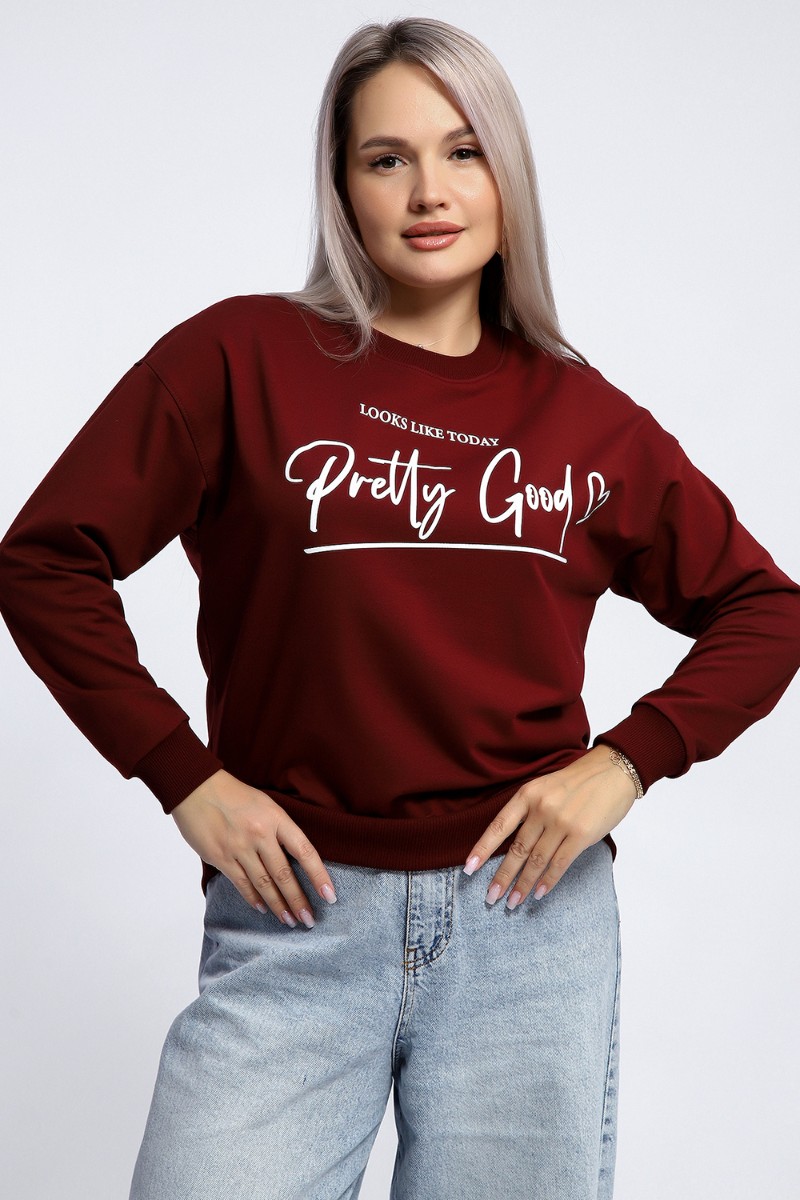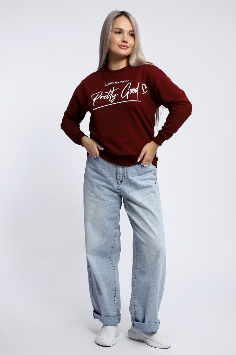 Толстовка женская №80048 футер 2-х нитка (р-ры: 44-62) бордовый