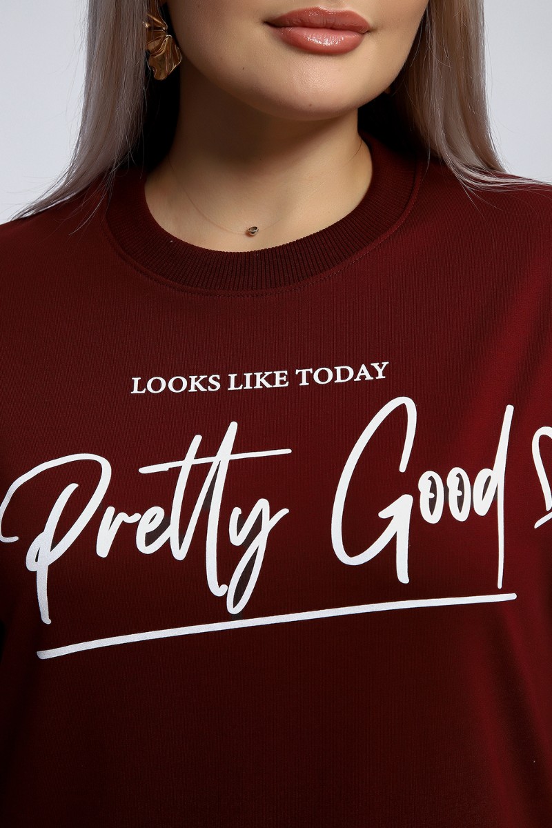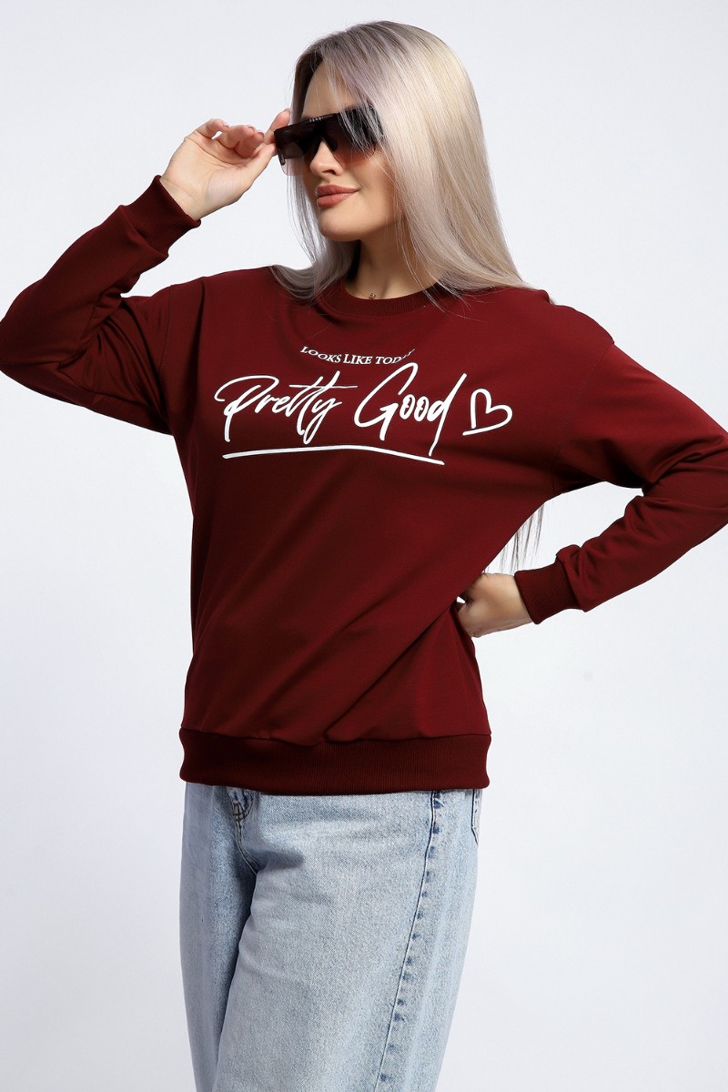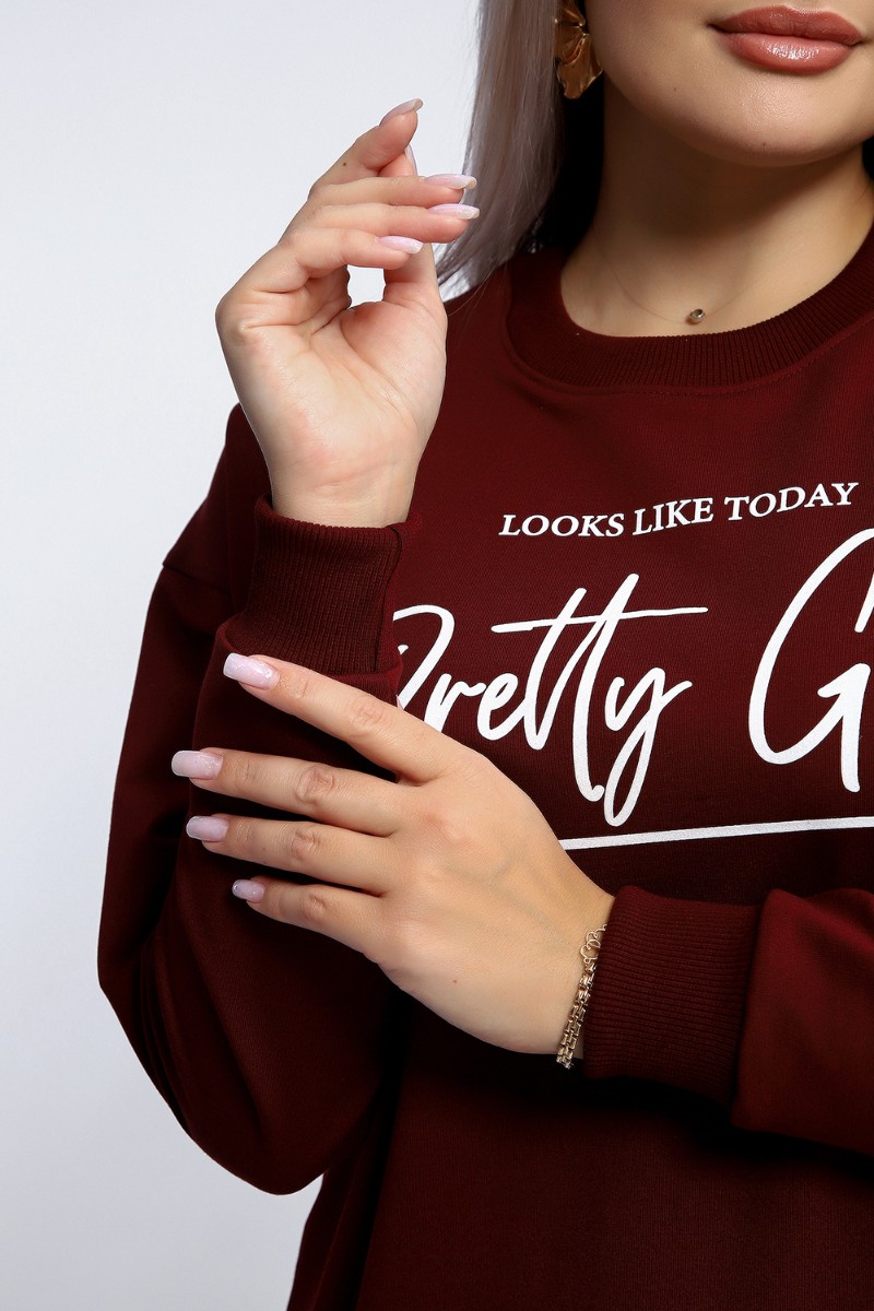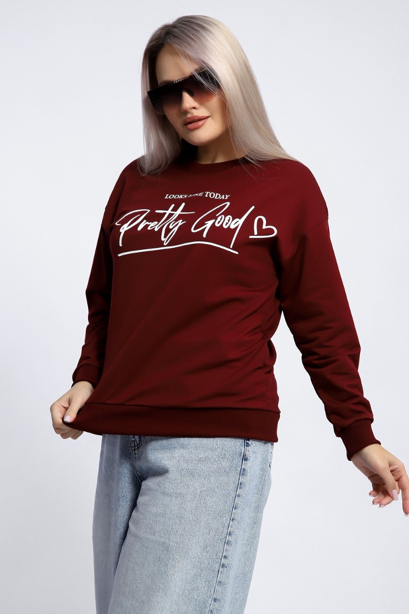 Толстовка женская №80048 футер 2-х нитка (р-ры: 44-62) бордовый