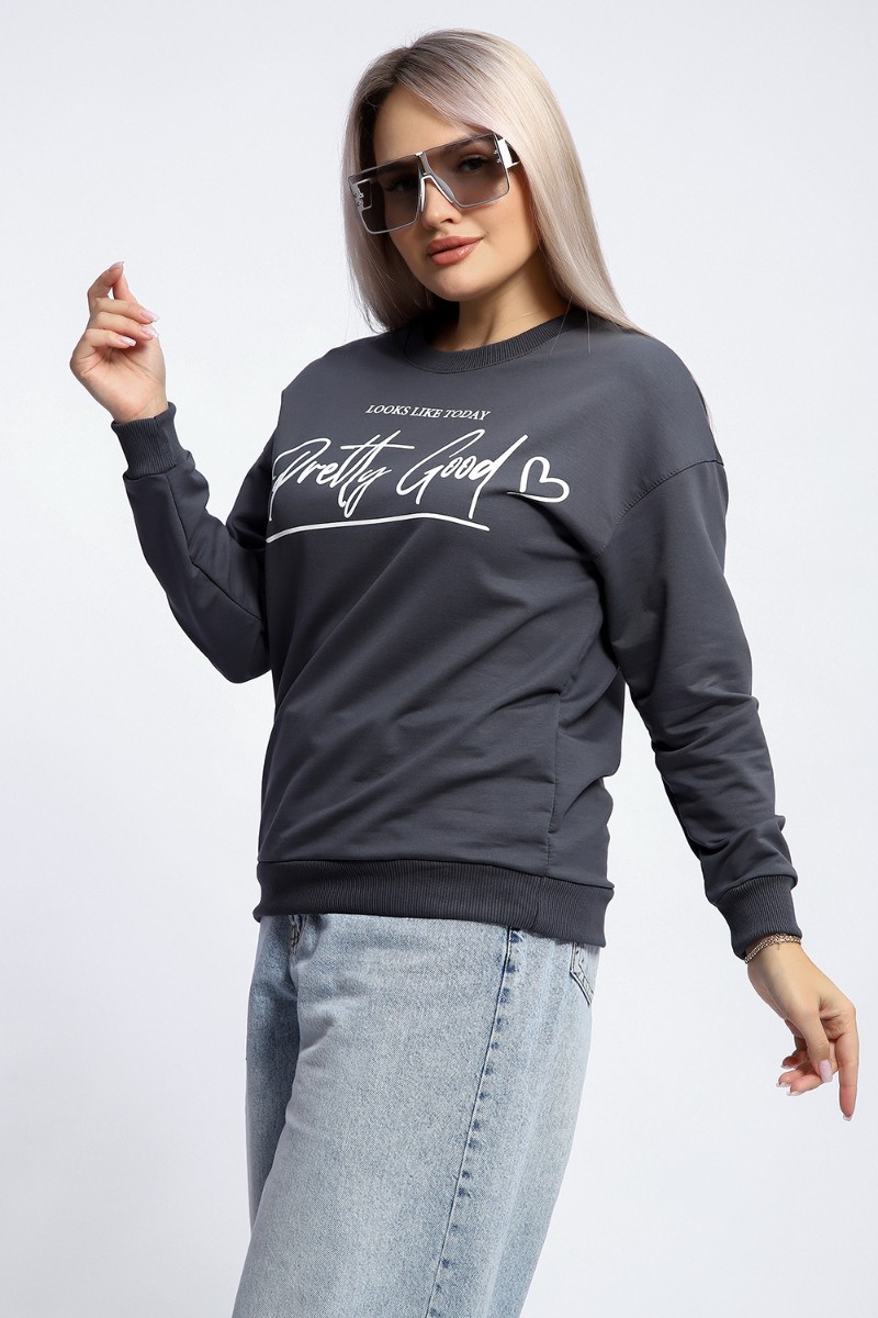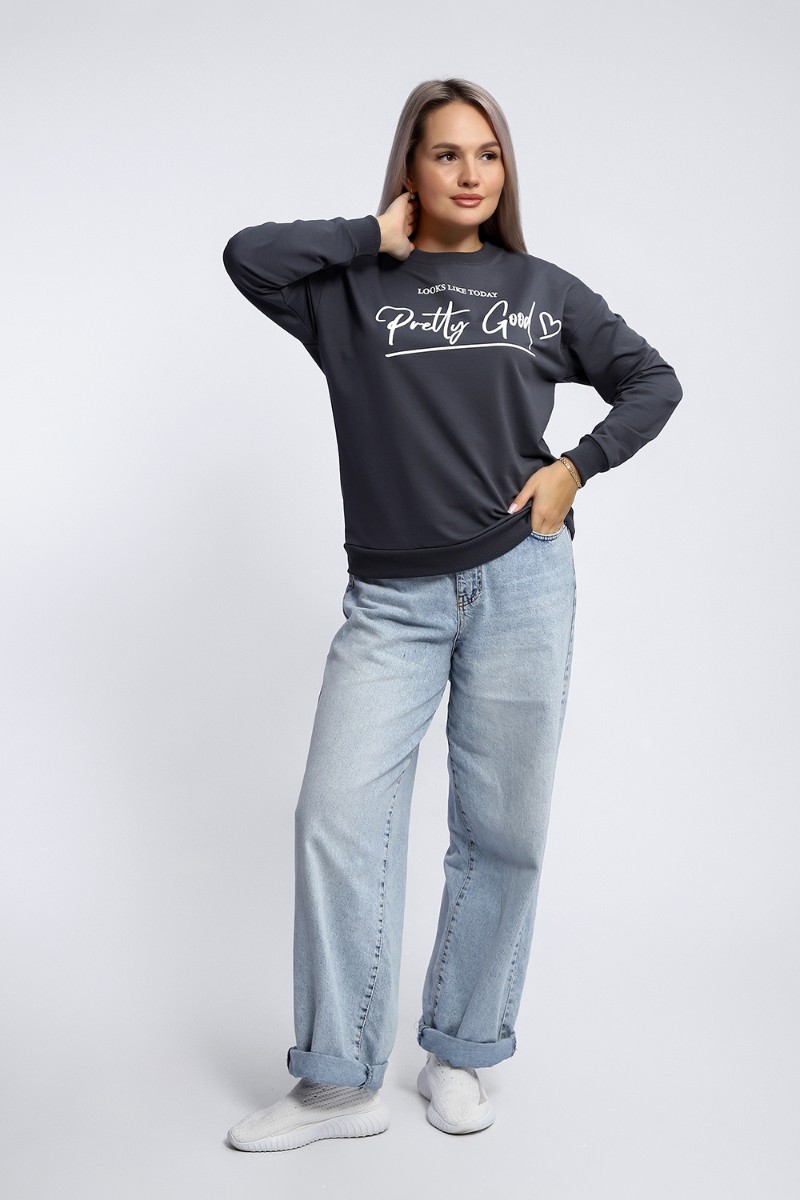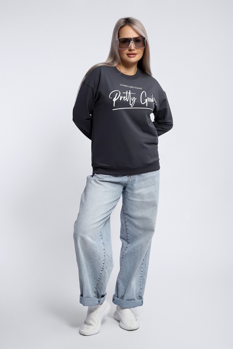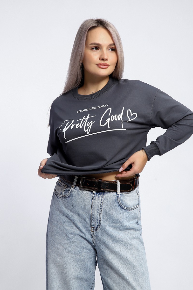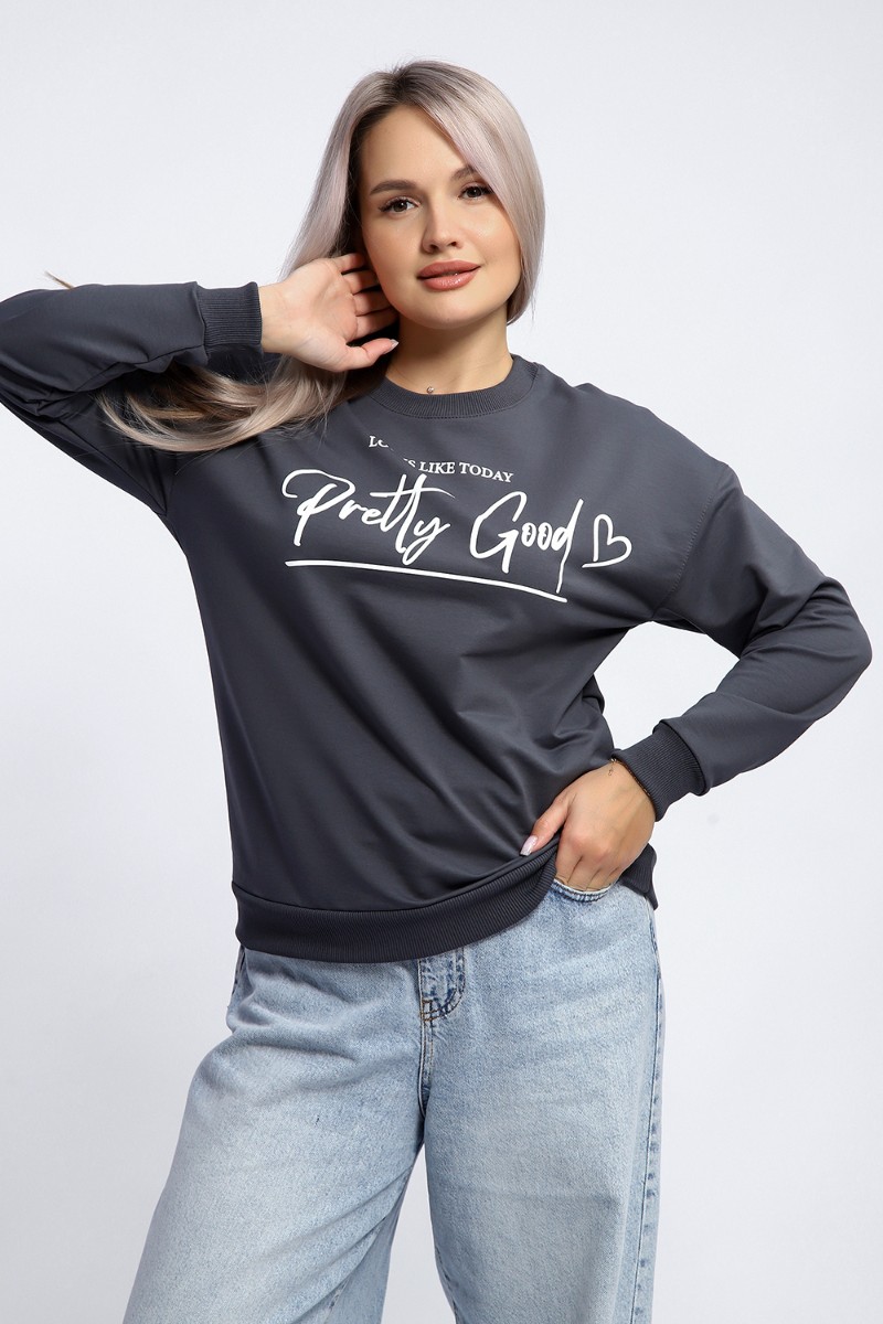 Толстовка женская №80048 футер 2-х нитка (р-ры: 44-62) темно-серый