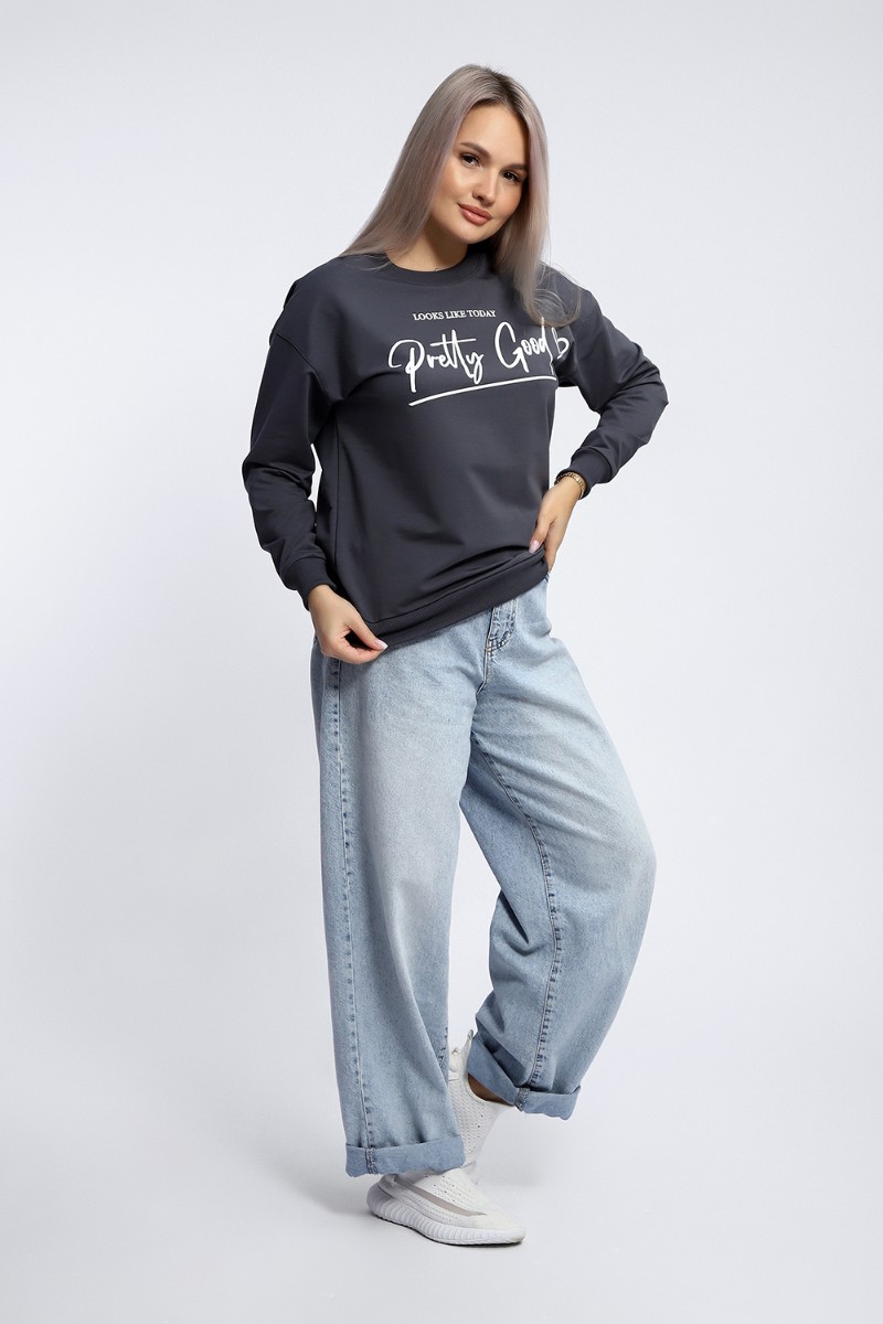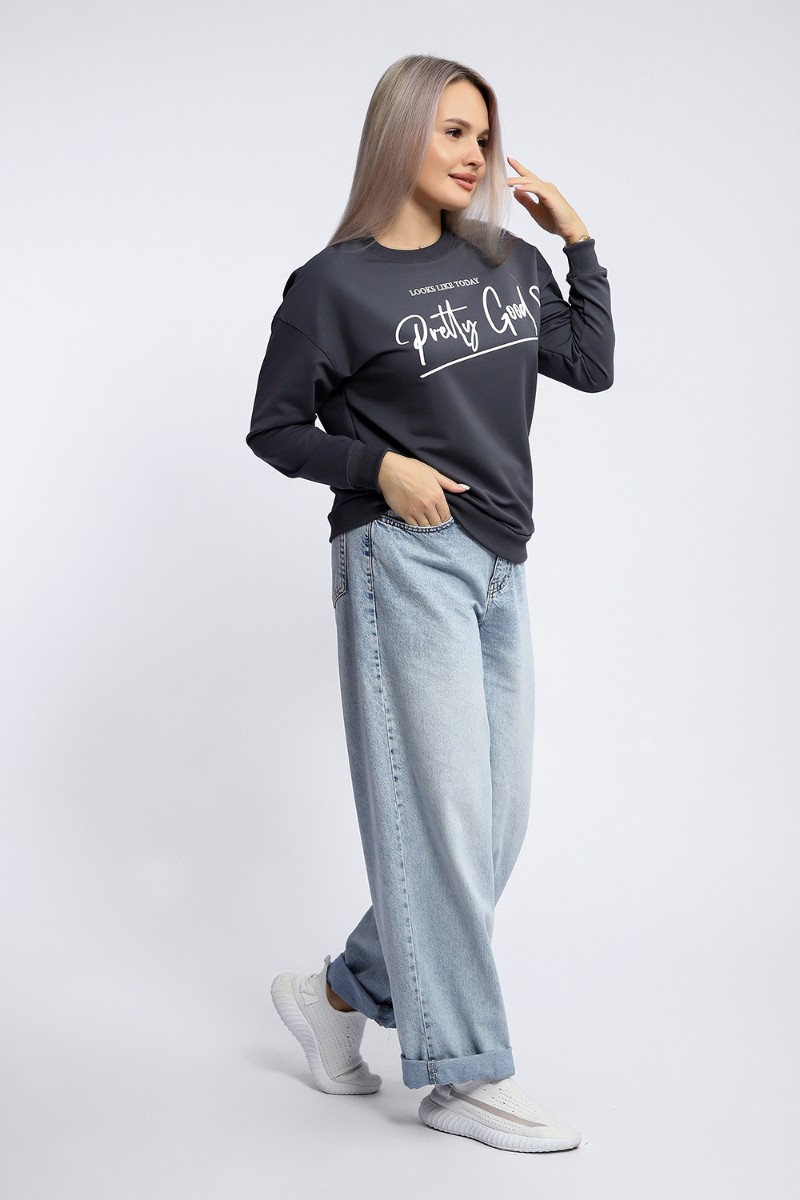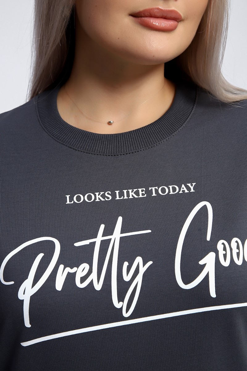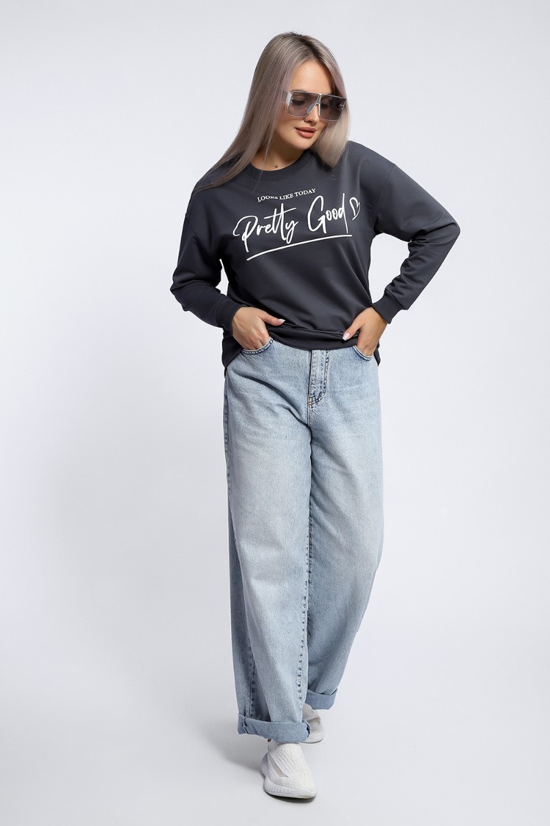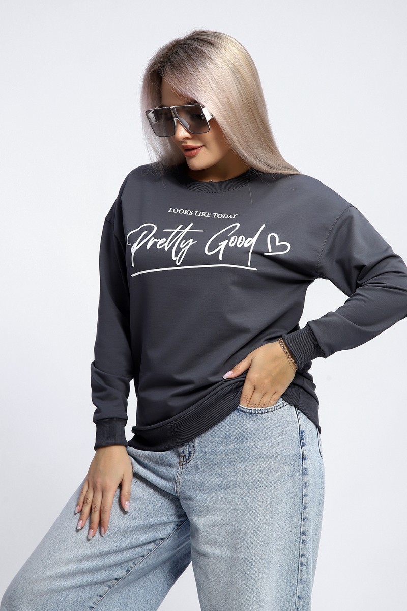 Толстовка женская №80048 футер 2-х нитка (р-ры: 44-62) темно-серый