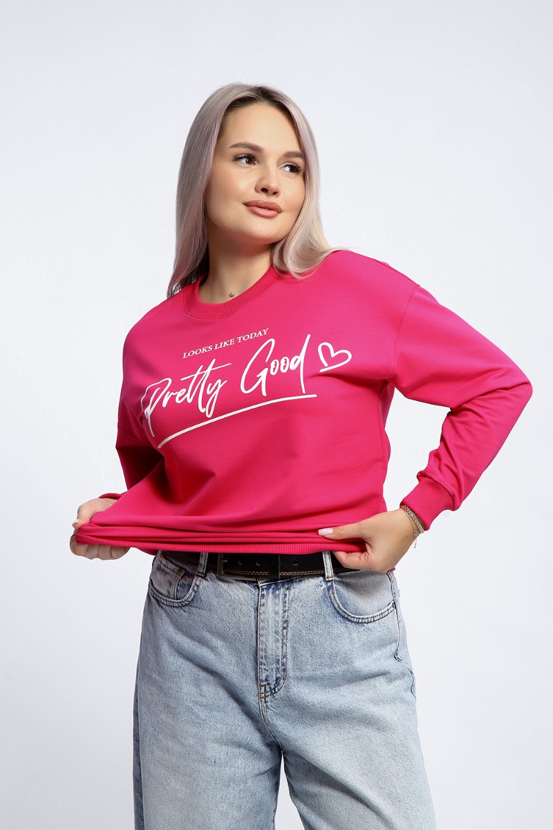 Толстовка женская №80048 футер 2-х нитка (р-ры: 44-62) фуксия