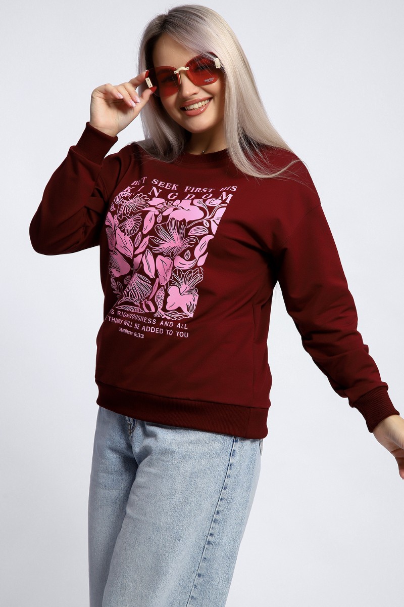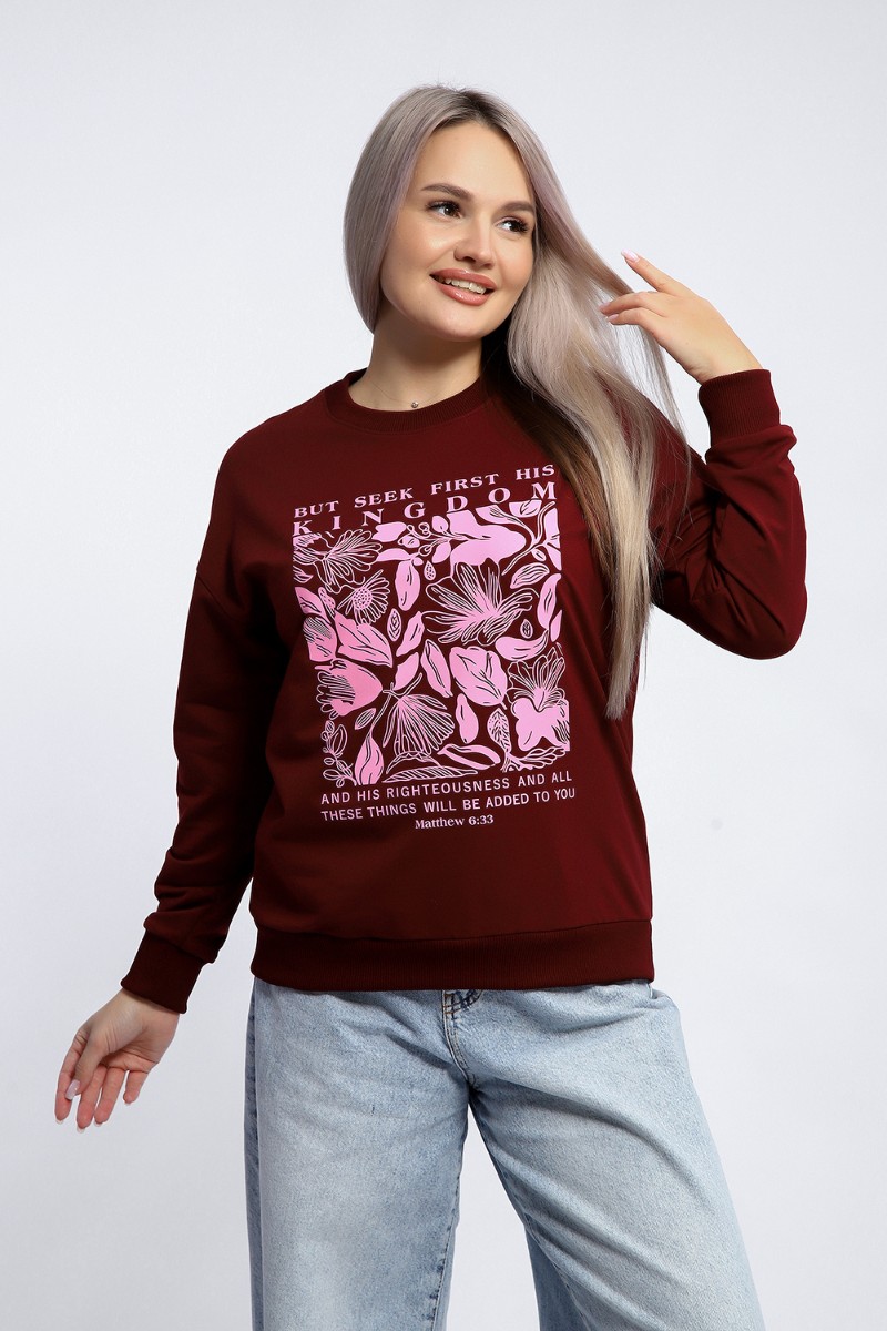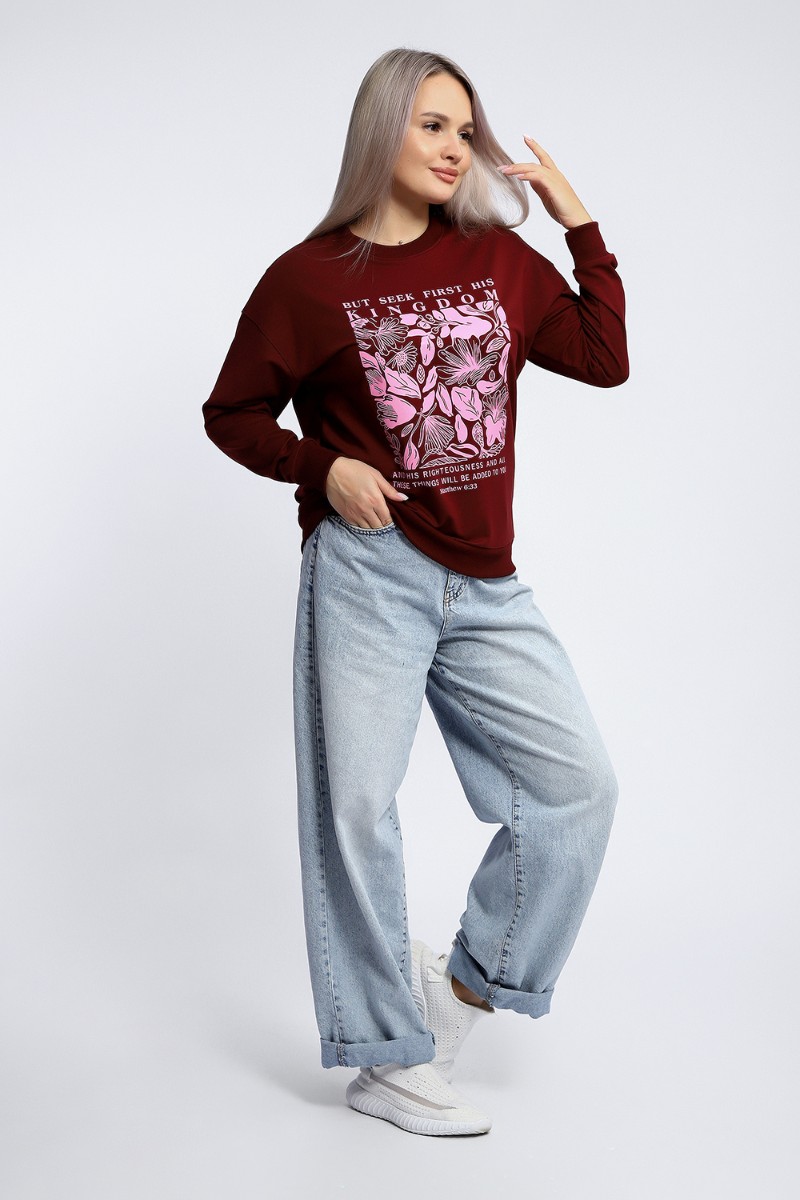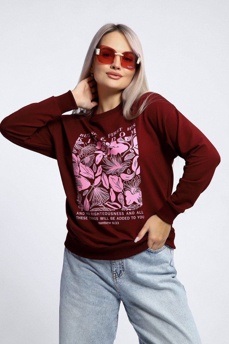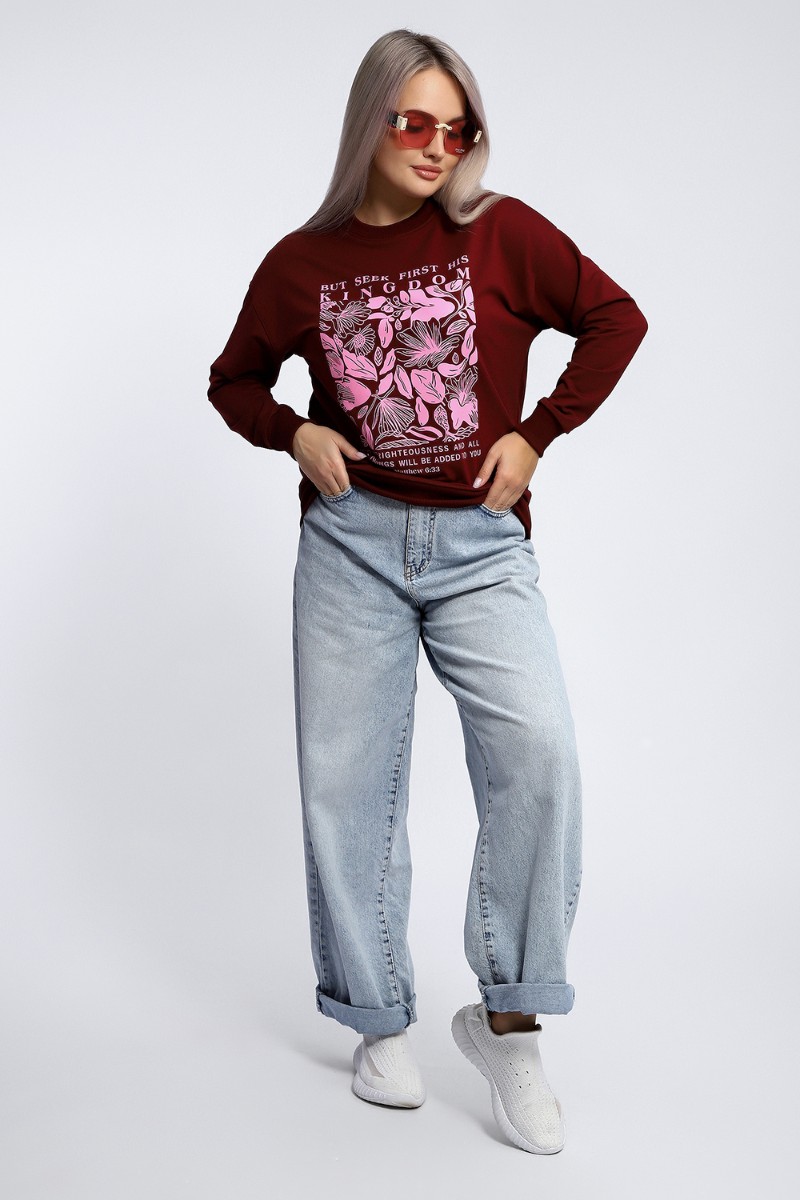 Толстовка женская №80047 футер 2-х нитка (р-ры: 44-62) бордовый
