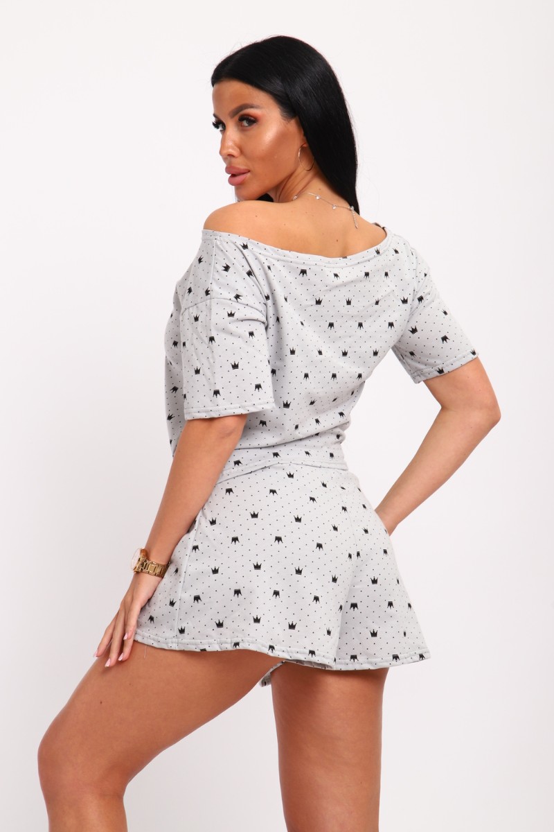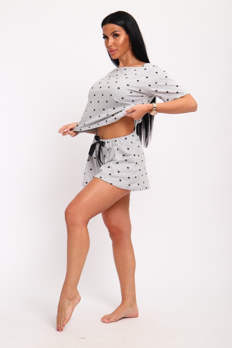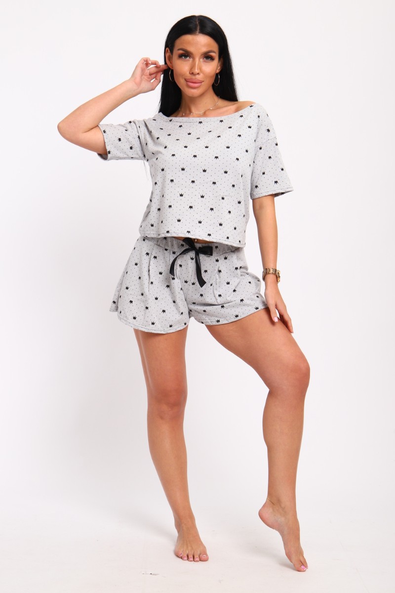 Представляем Вашему вниманию изящную женскую пижаму, сшитую из приятной телу, высококачественной кулирки - 100% хлопок, позволяющий коже дышать. Комплект состоит из шортов и футболки. Футболка свободного кроя, широкий вырез горловины. Рукав короткий на спущенном плече.