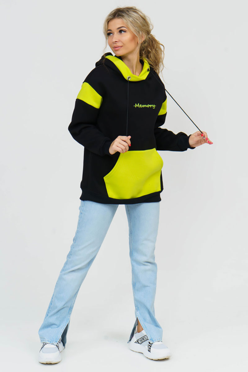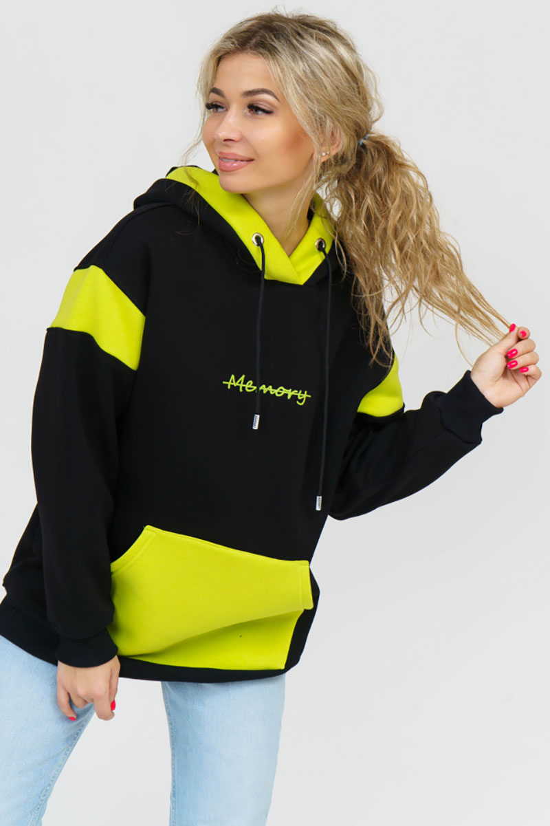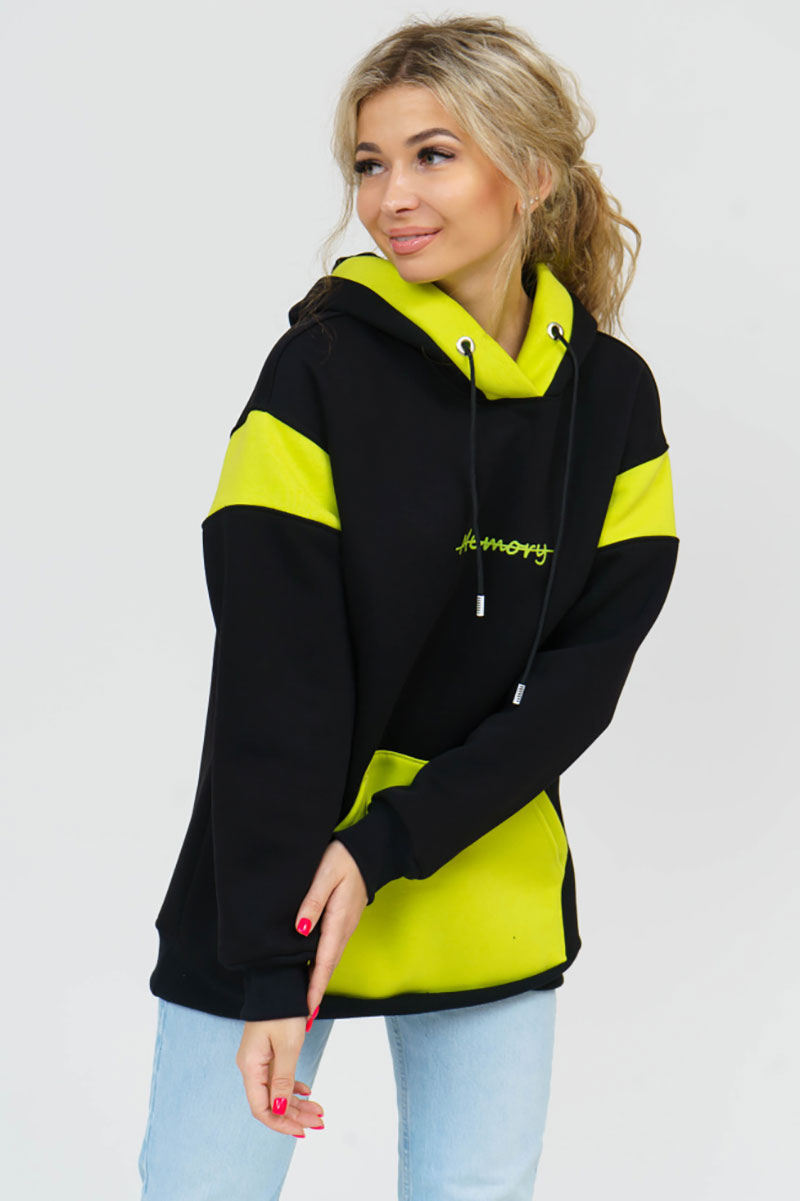 Толстовка женская 879 футер 3-х нитка с начесом пенье (последний размер) черный-салатовый 52