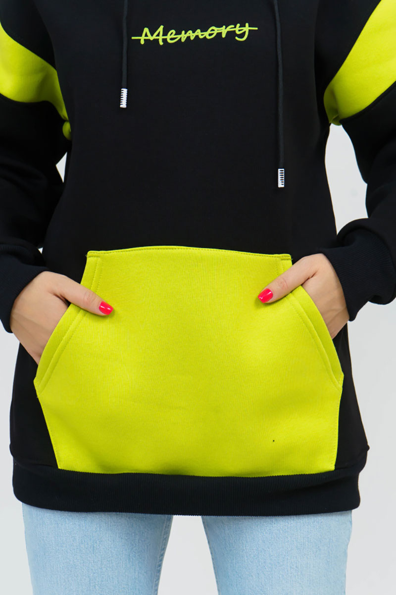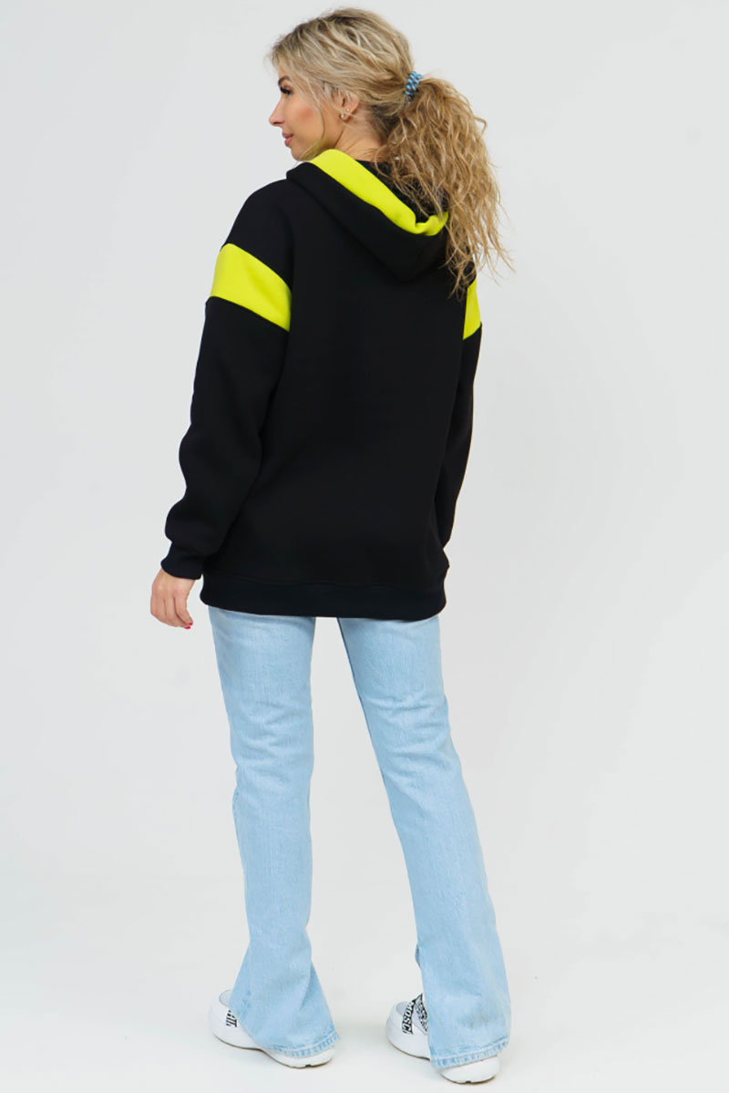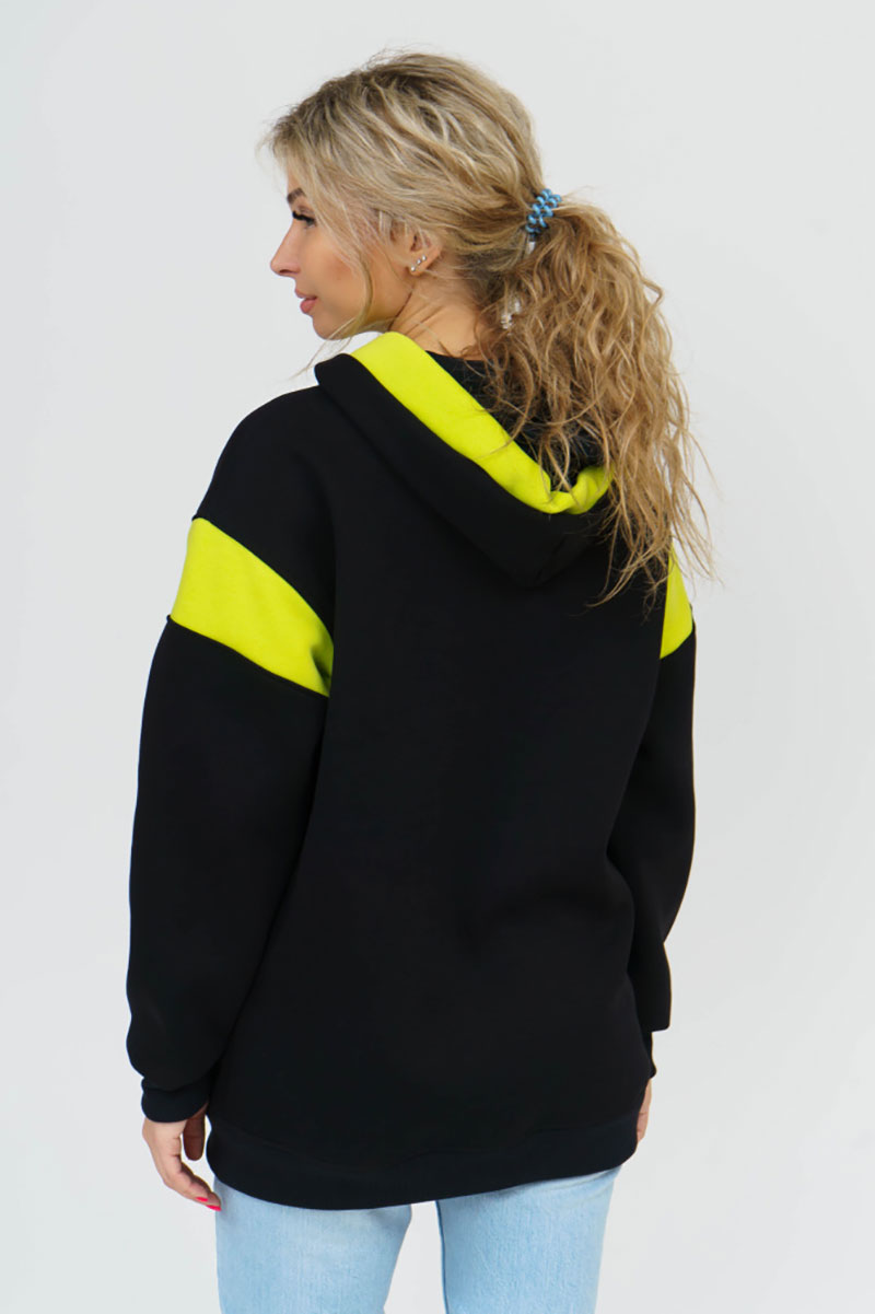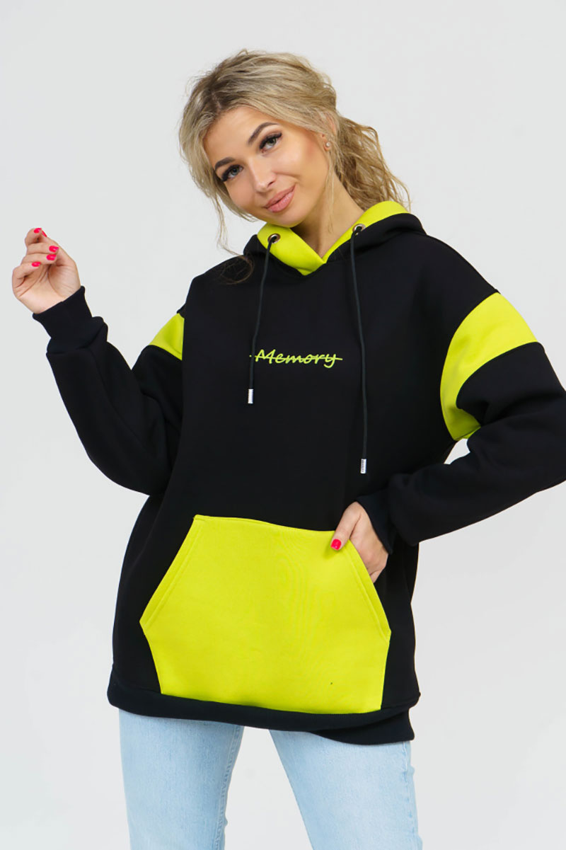 Толстовка женская 879 футер 3-х нитка с начесом пенье (последний размер) черный-салатовый 52