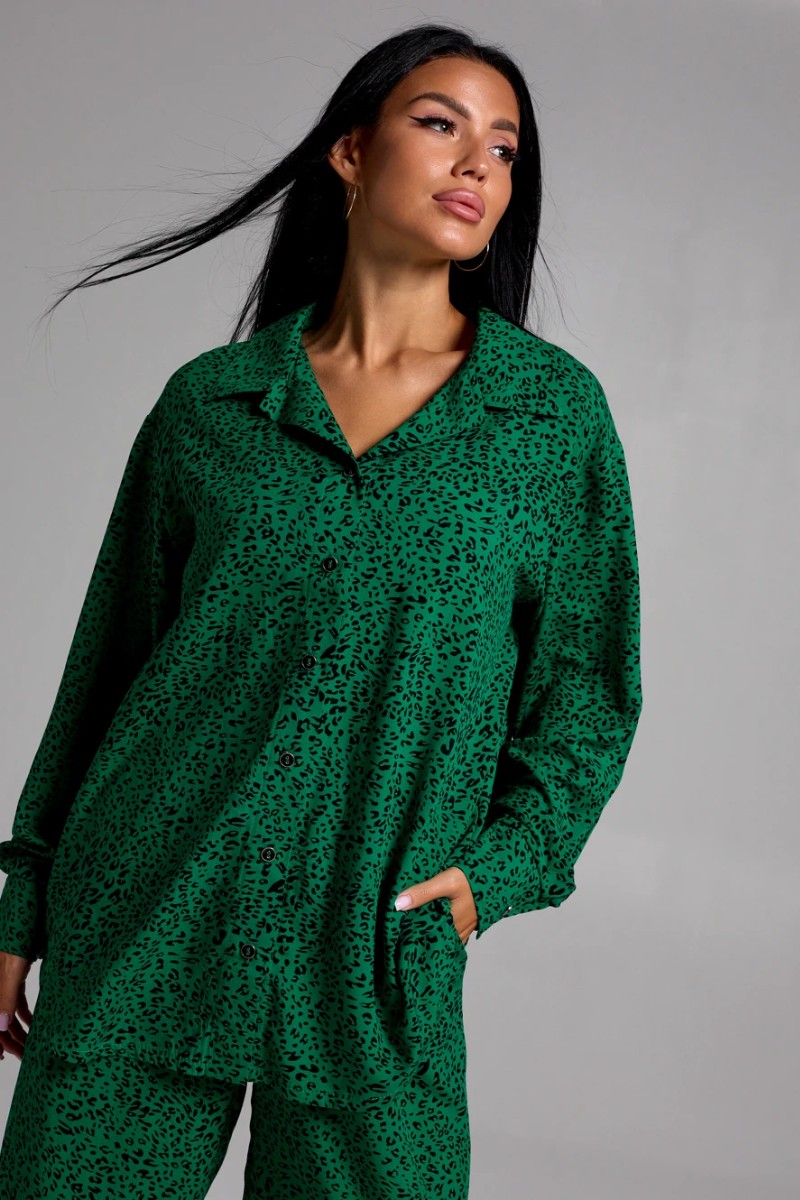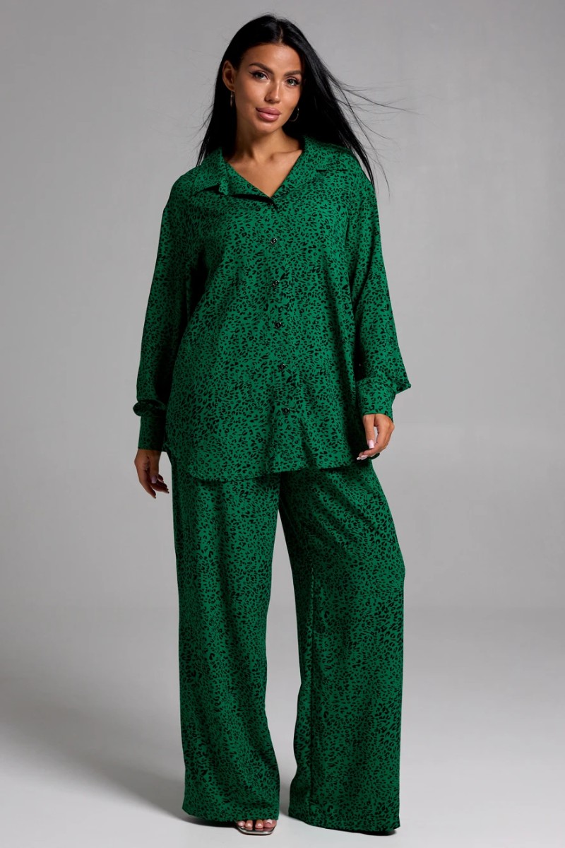 Костюм двойка женский "Рошель" штапель (последний размер) леопард зеленый 50-52,54-56