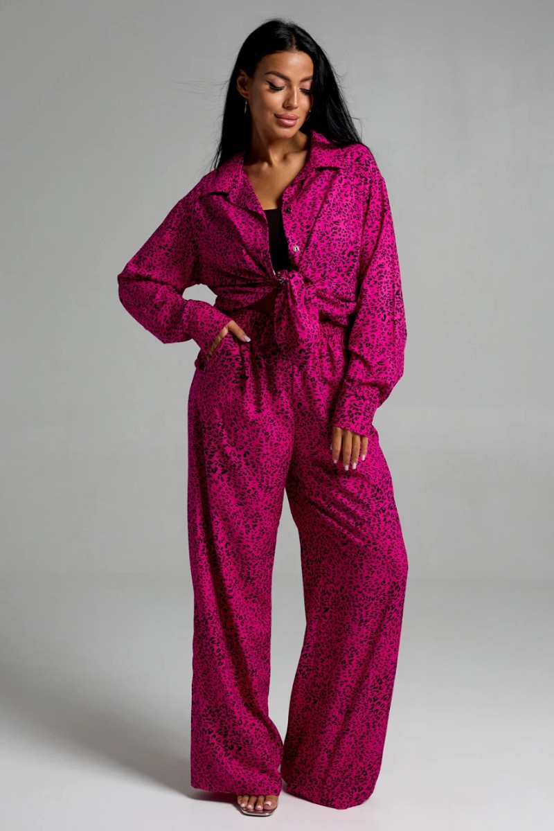 Костюм двойка женский "Рошель" штапель (последний размер) леопард фуксия 46-48,50-52,54-56