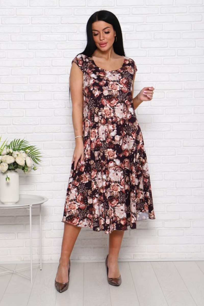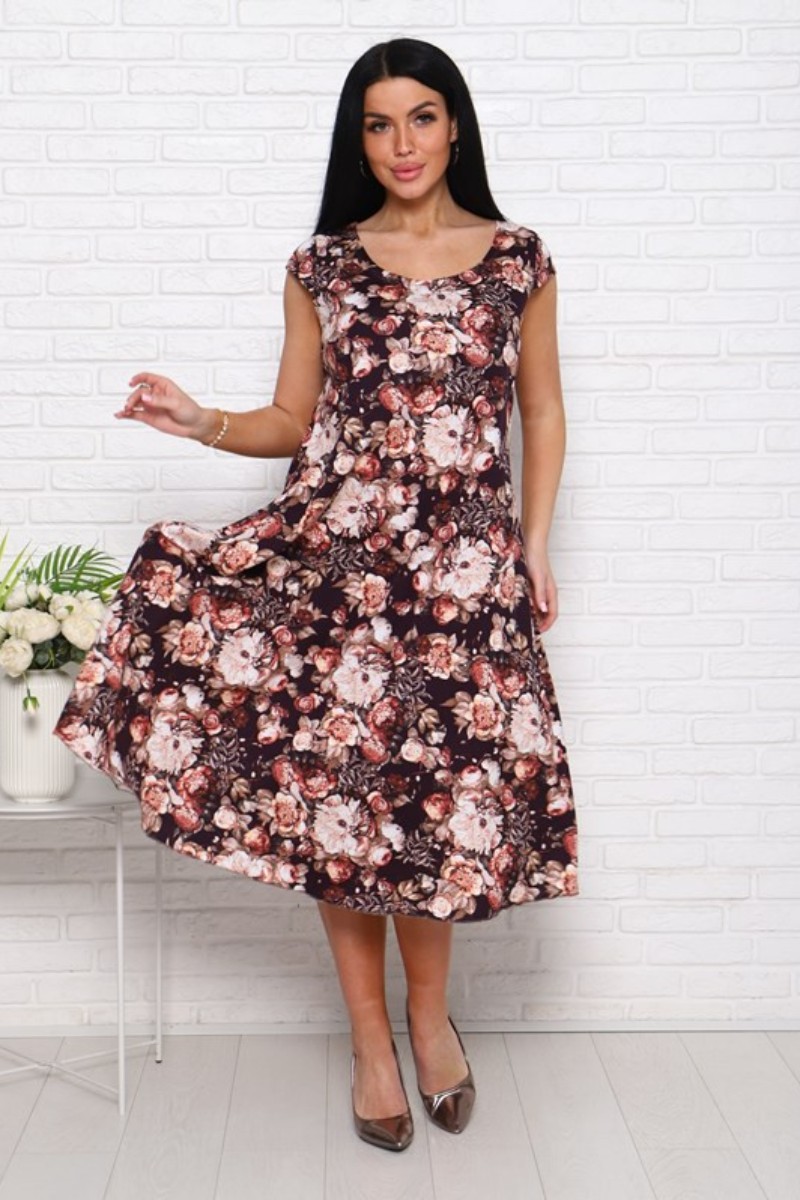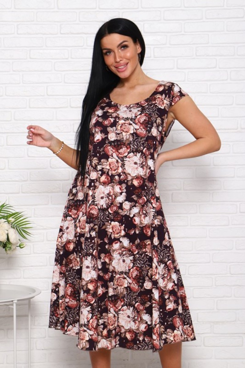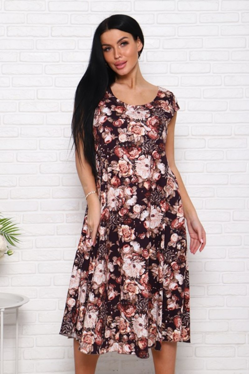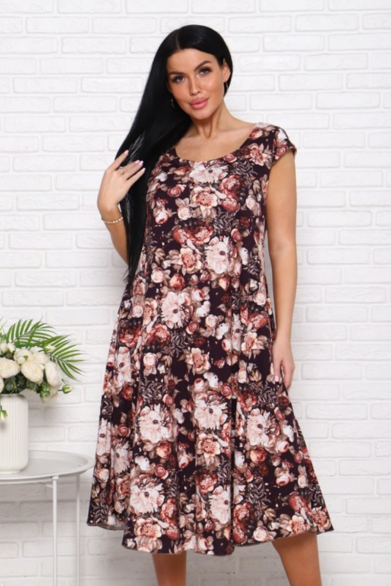 Платье женское П-8 кулирка (последний размер) пионы на коричневом 54