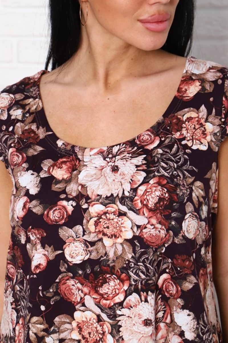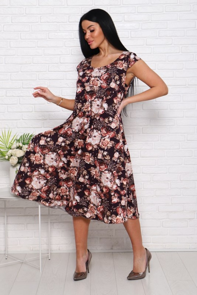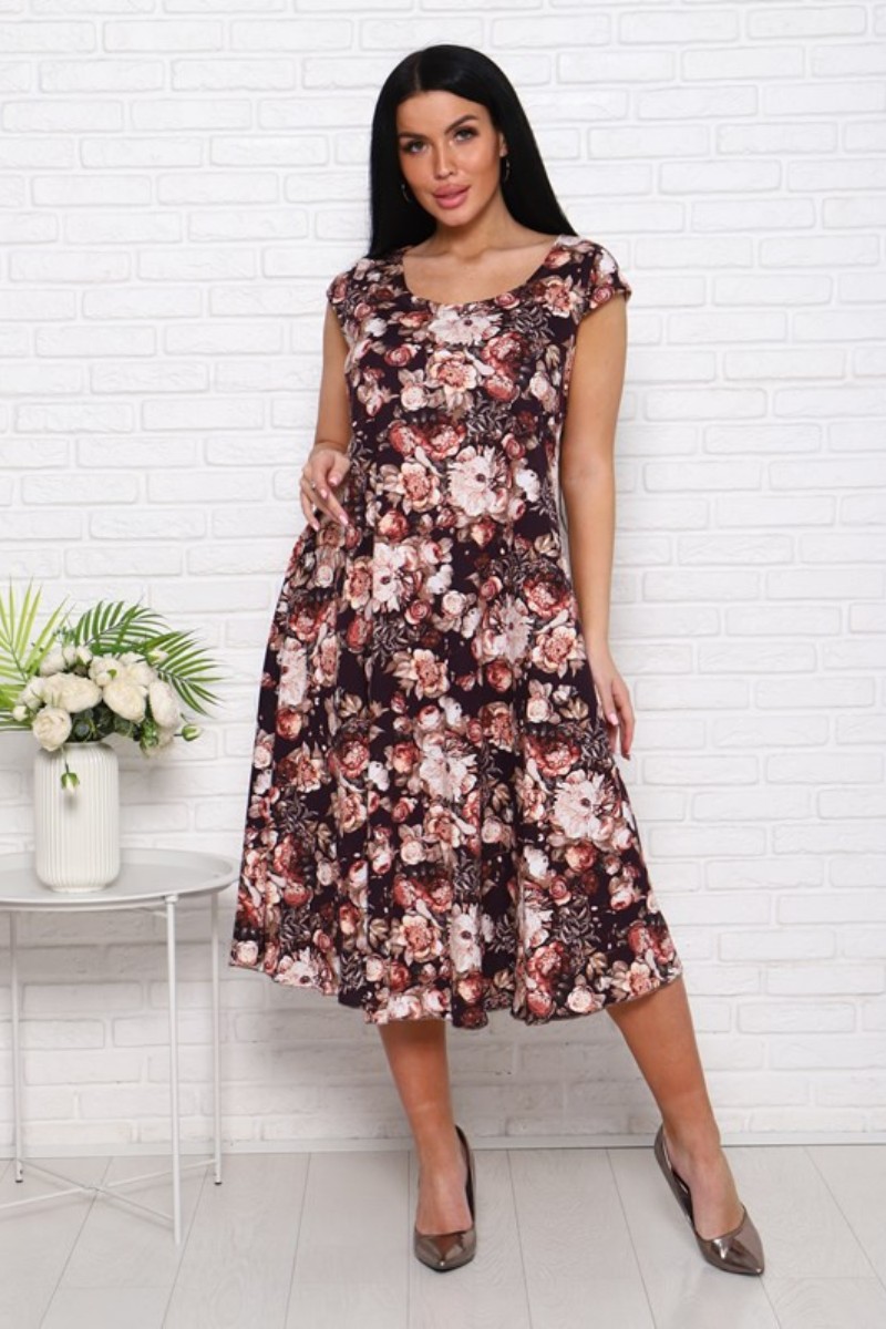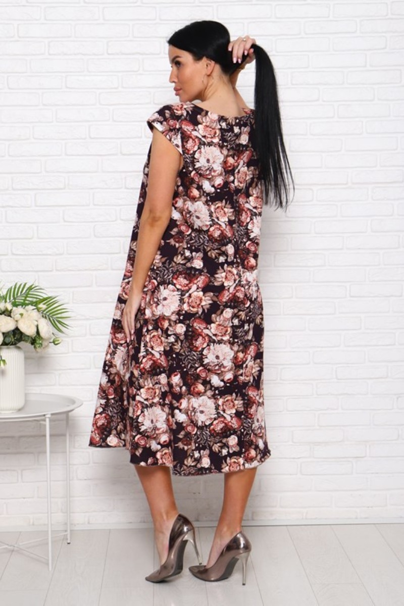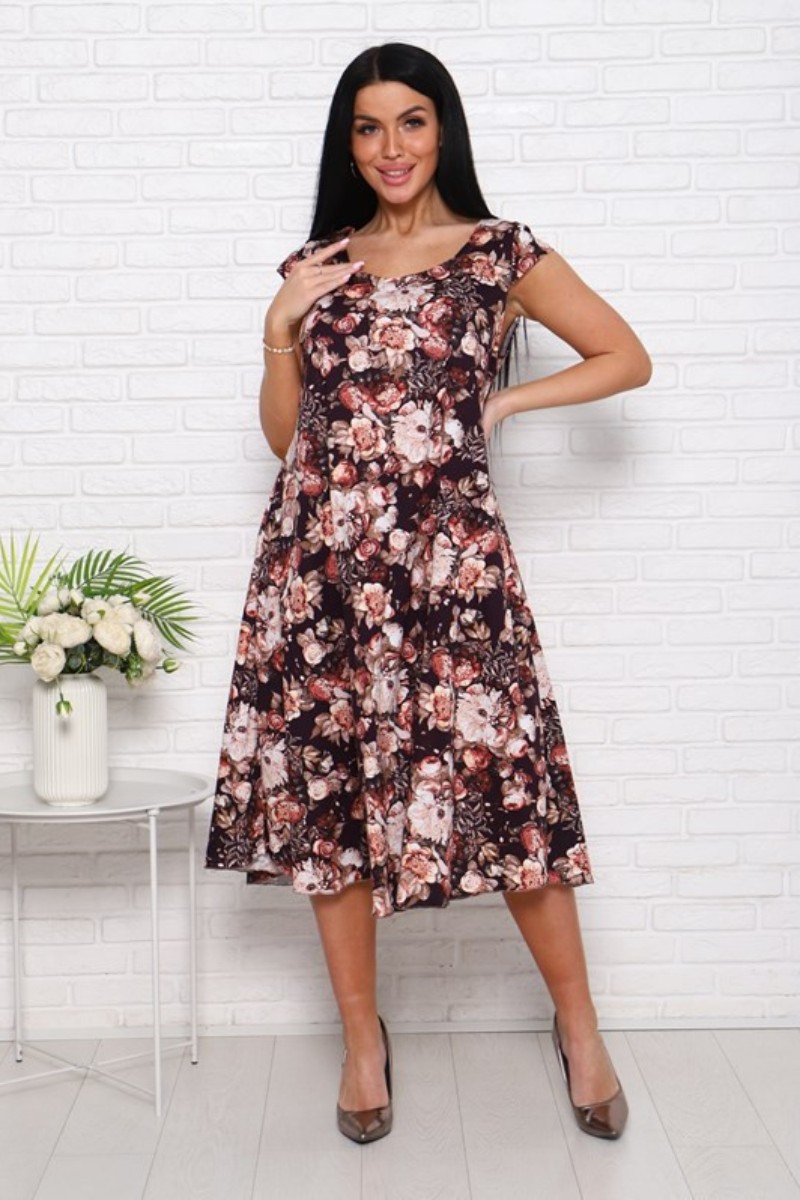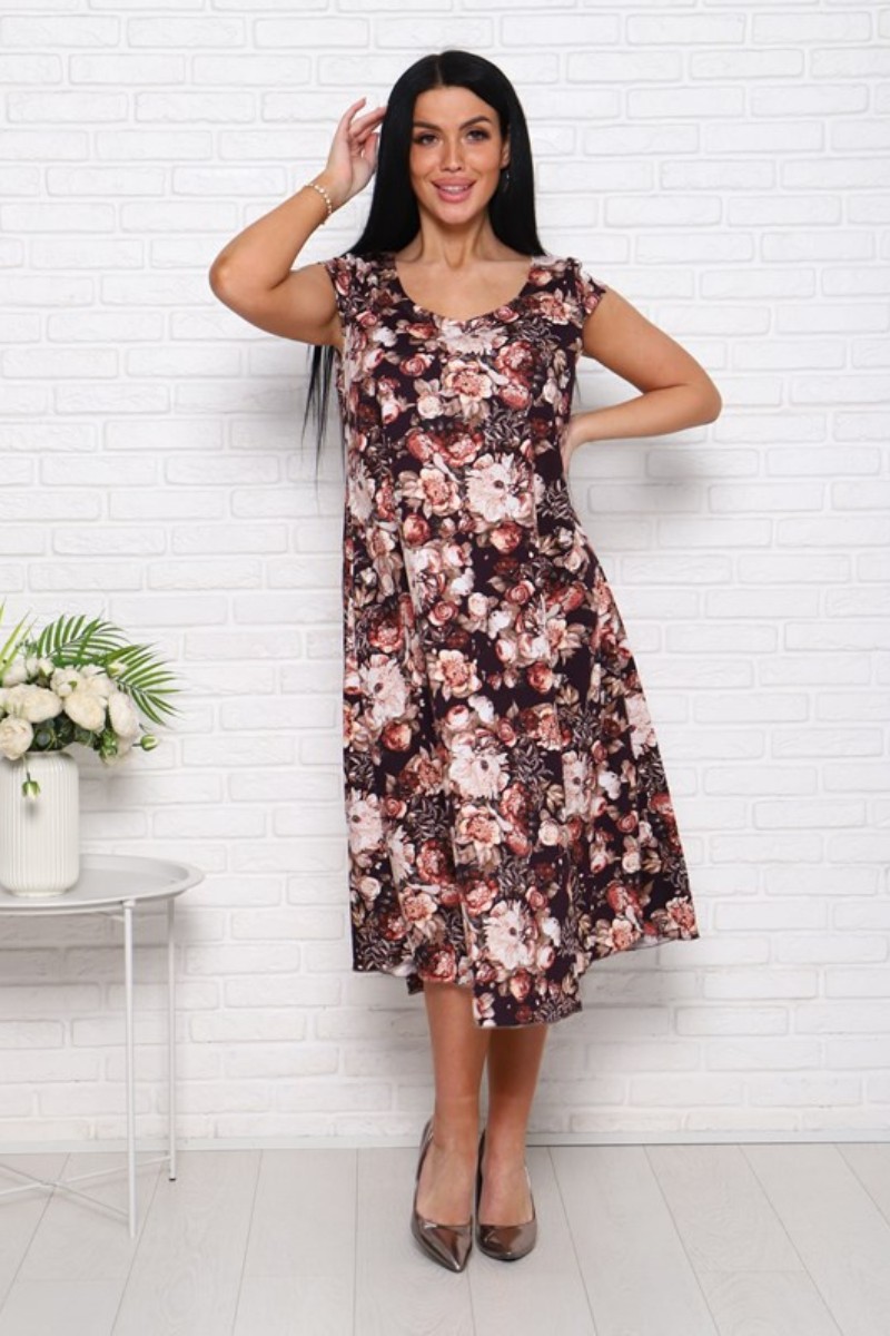 Платье женское П-8 кулирка (последний размер) пионы на коричневом 54