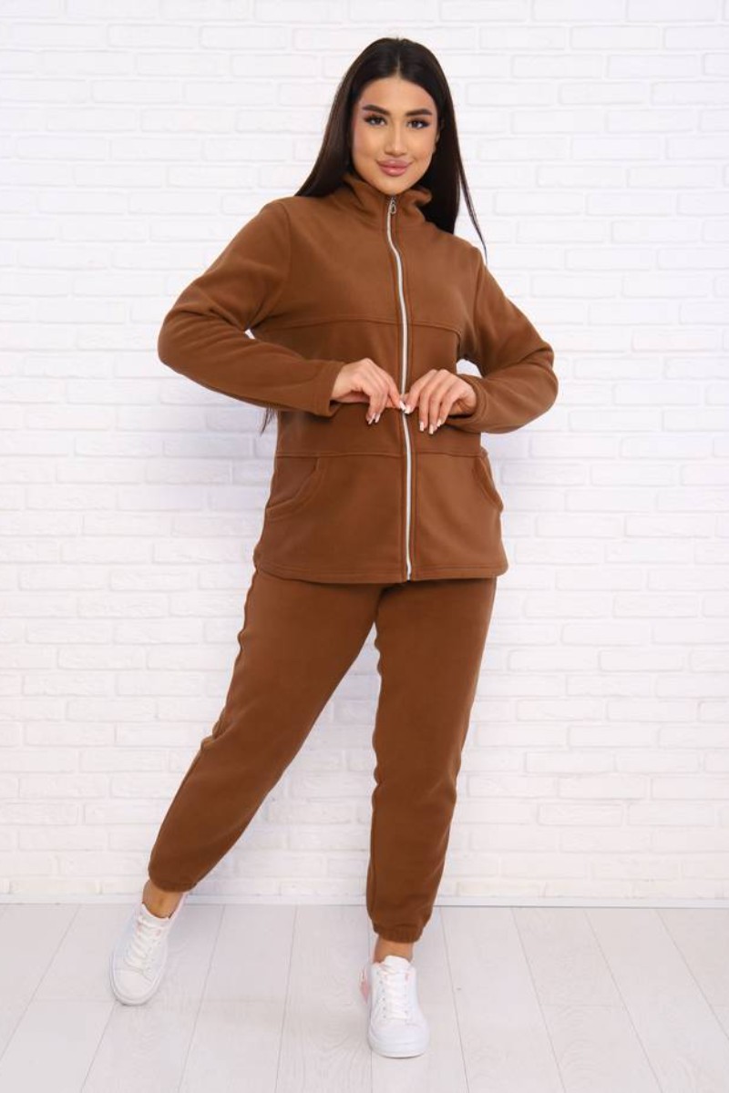 Костюм двойка женский КД-445 флис (последний размер) коричневый 52