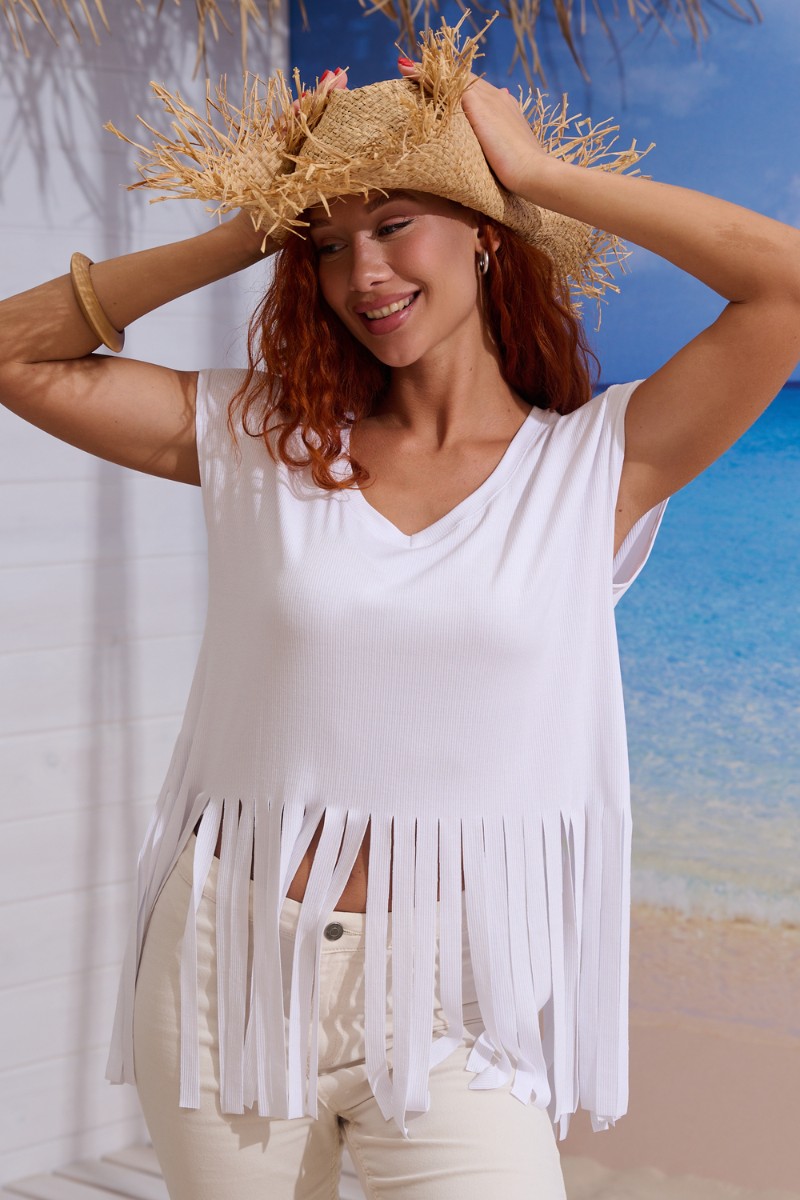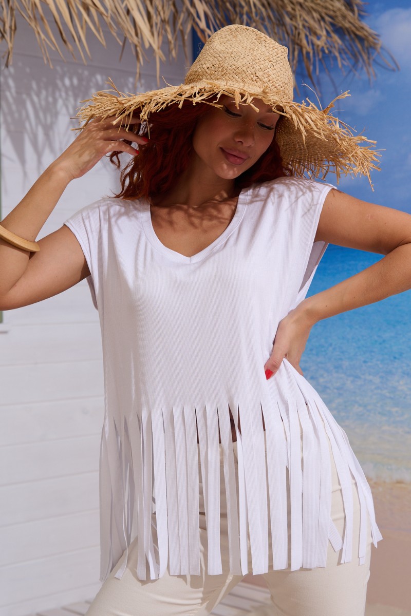Представляем Вашему вниманию женскую футболку оверсайз с бахромой, которая прекрасно подойдет для как отдыха на море и повседневной носки, так и для создания стильного образа на выход. Сшито из приятного телу материала, устойчивого к износу.