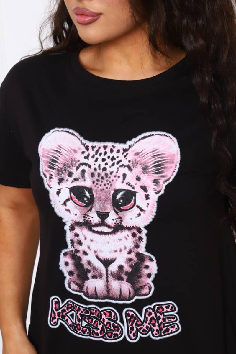 Представляем Вашему вниманию легкий женский костюм двойку из хлопковой ткани, которая идеально повторяет изгибы тела и не стесняет движений. Трикотаж легкий и гигроскопичный. В комплекте идет футболка полуприлегающего силуэта, украшенная очаровательным принтом, и короткие шорты с небольшими кармашками. В этом костюме Ваш домашний отдых будет максимально приятным и расслабляющим.