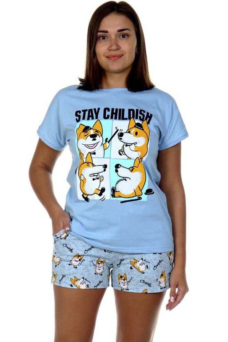 Представляем Вашему вниманию легкий женский костюм двойку из хлопковой ткани, которая идеально повторяет изгибы тела и не стесняет движений. Трикотаж легкий и гигроскопичный. В комплекте идет футболка полуприлегающего силуэта, украшенная очаровательным принтом, и короткие шорты с небольшими кармашками. В этом костюме Ваш домашний отдых будет максимально приятным и расслабляющим.