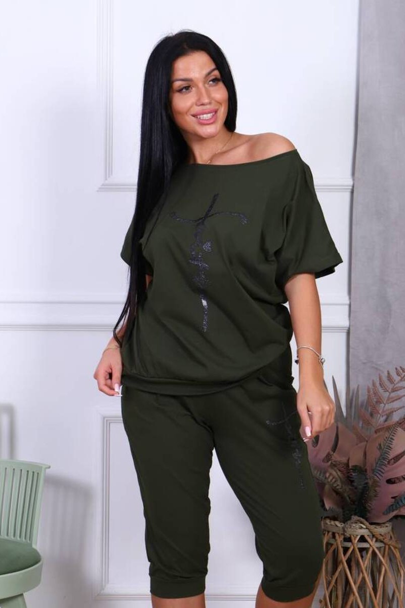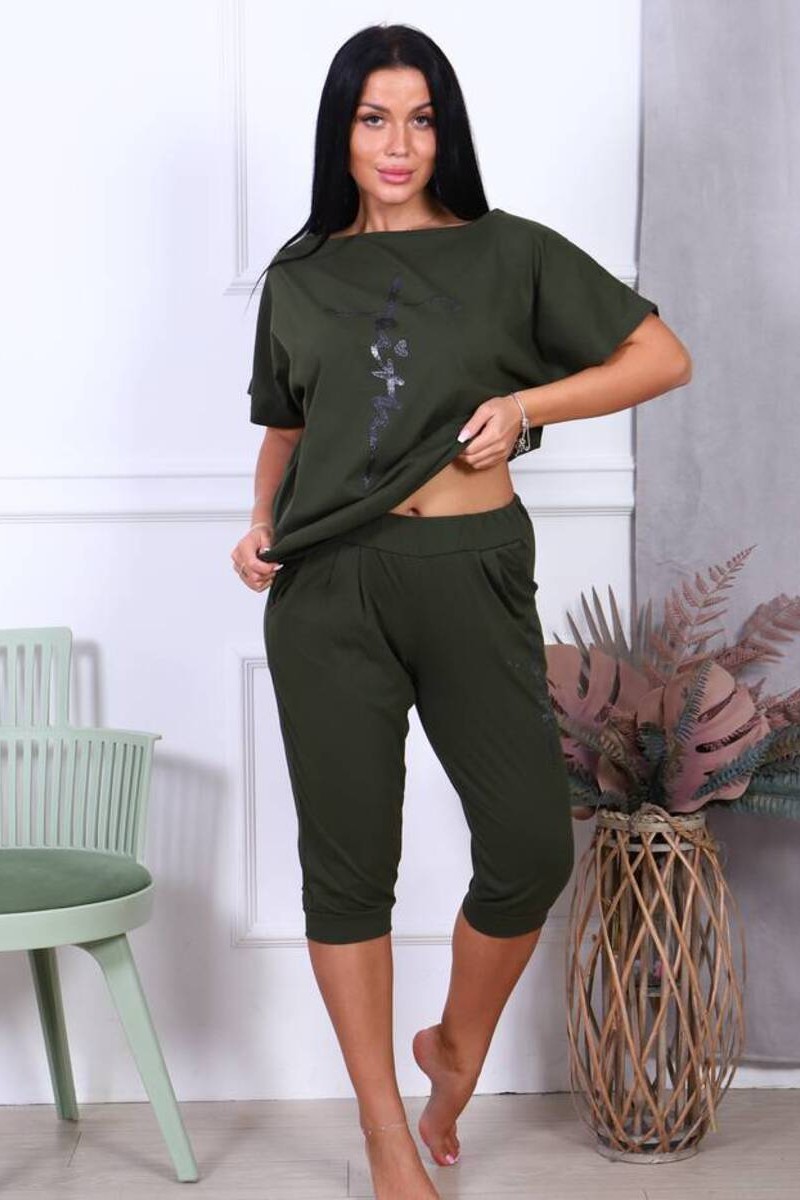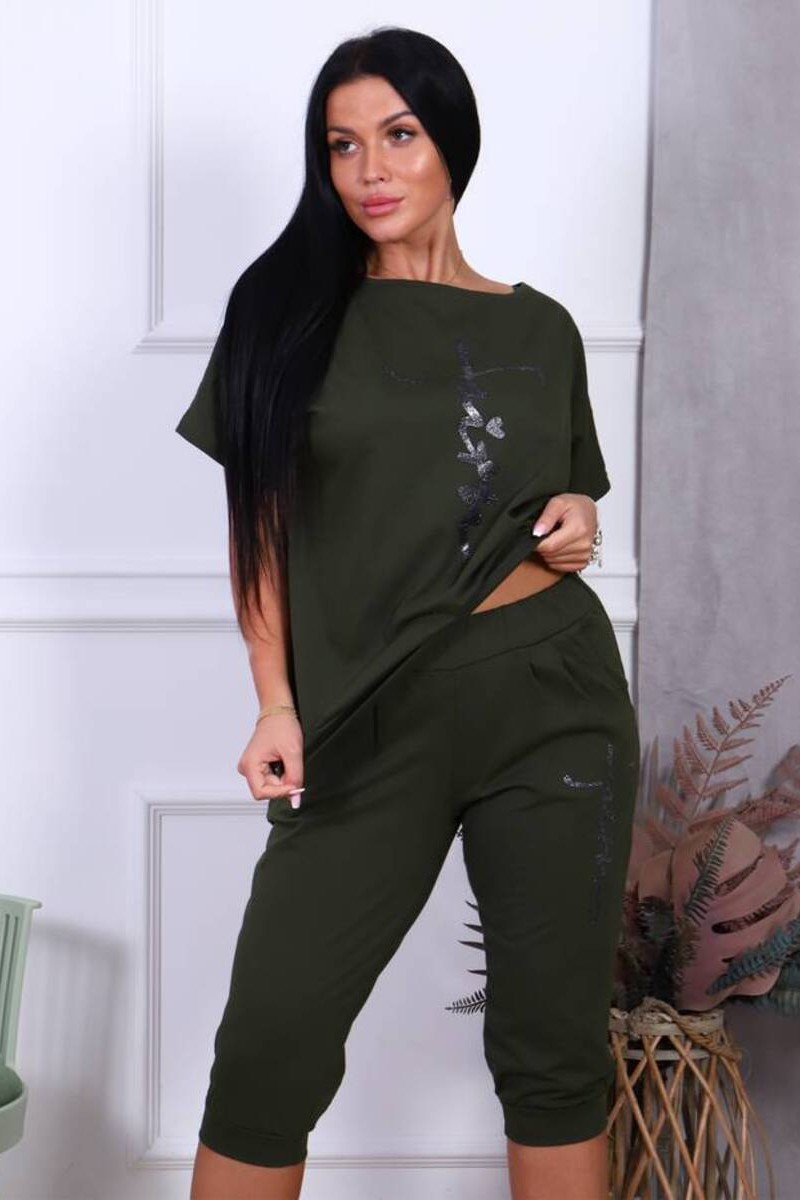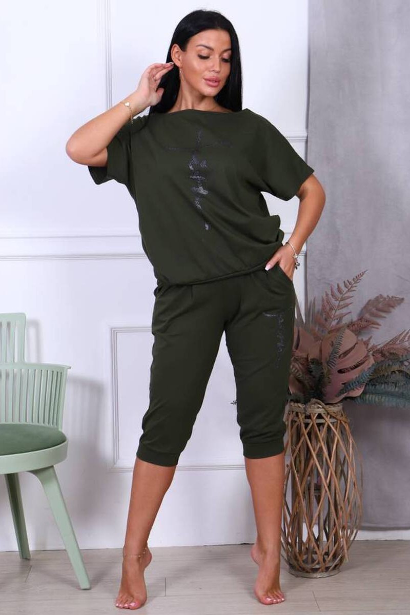 Костюм двойка женский КД-233 кулирка (последний размер) темный хаки 50