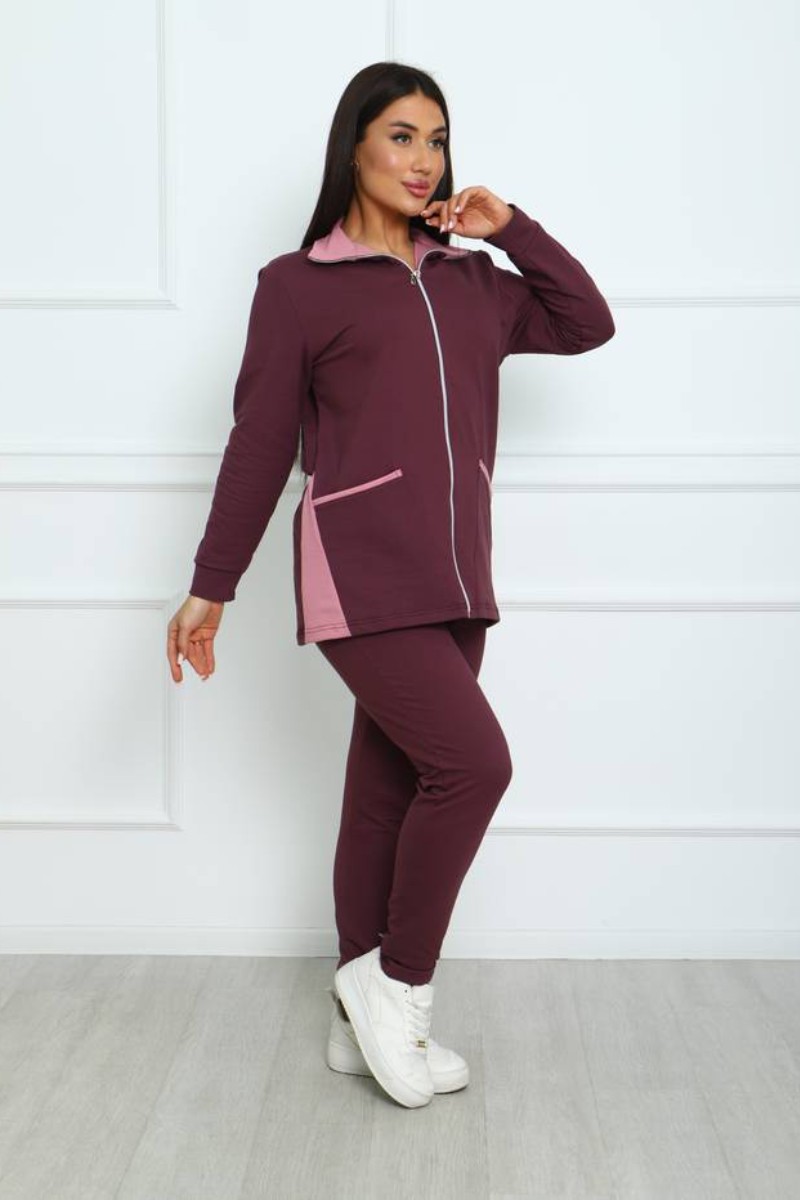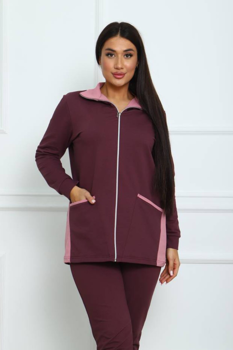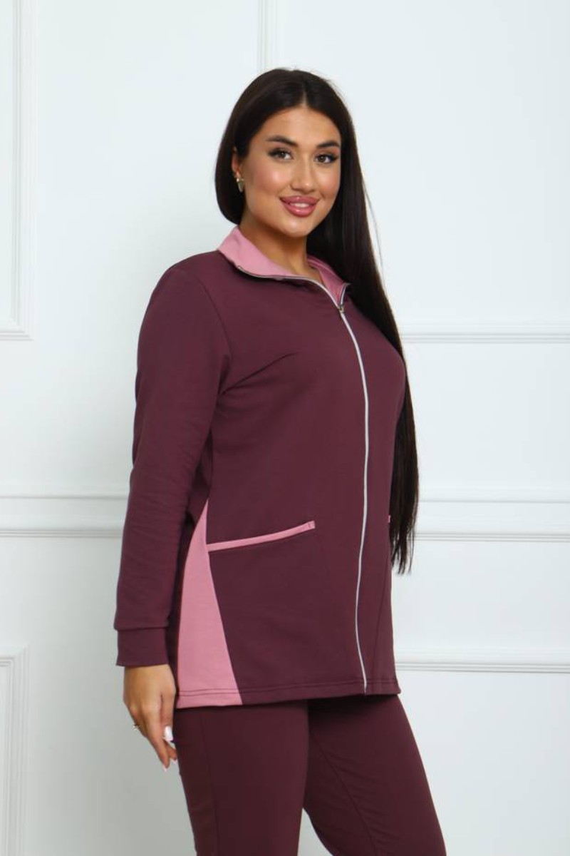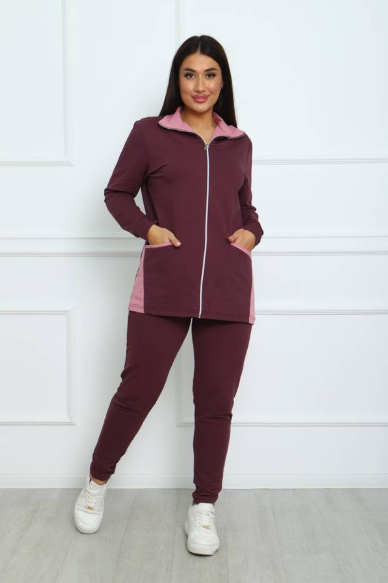 Костюм двойка женский КД-445 футер 2-х нитка с лайкрой (последний размер) темно-бордовый 52,54