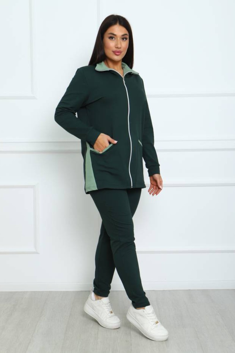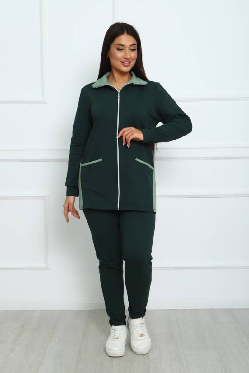 Костюм двойка женский КД-445 футер 2-х нитка с лайкрой (последний размер) салатовый-зеленый 52
