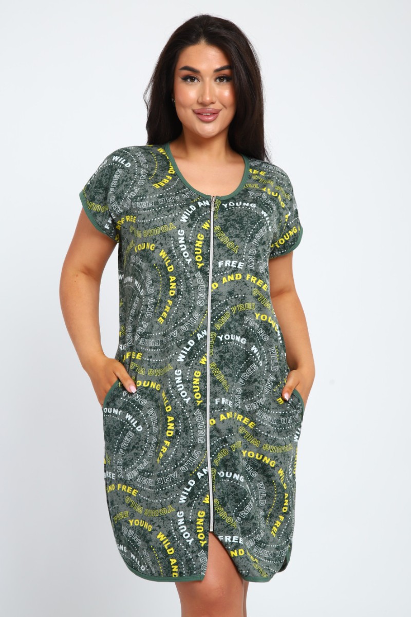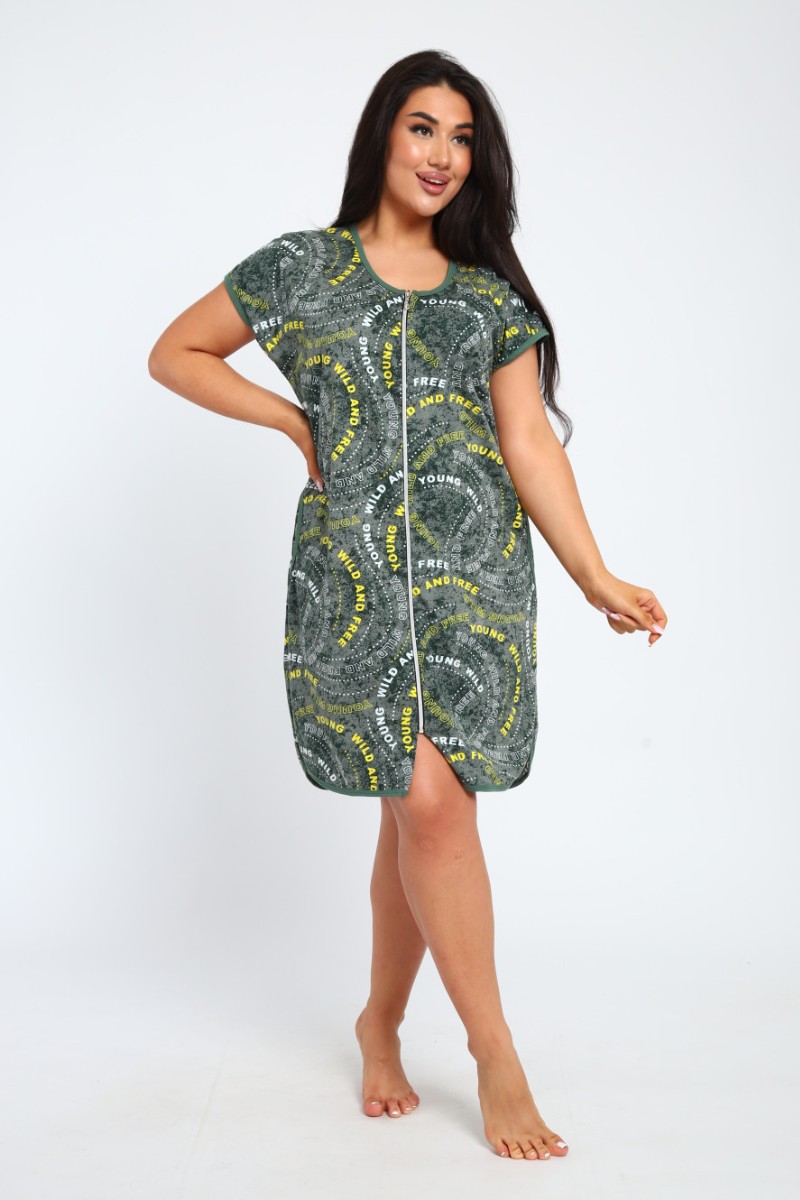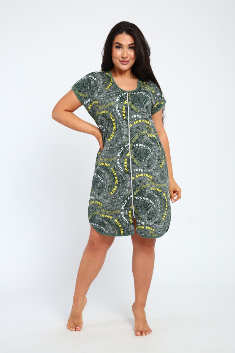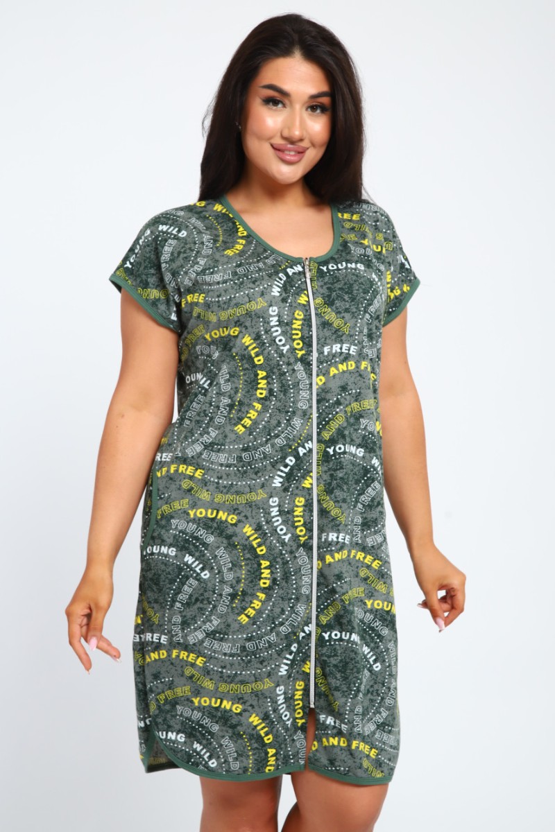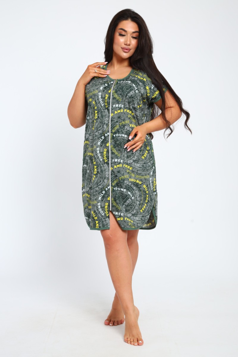 Халат женский Х-00377 кулирка (последний размер) зеленый-белый 46
