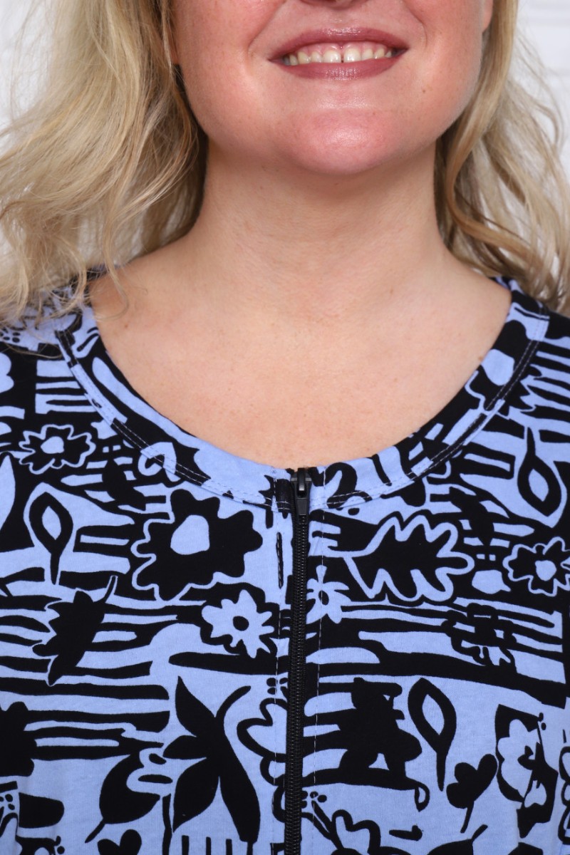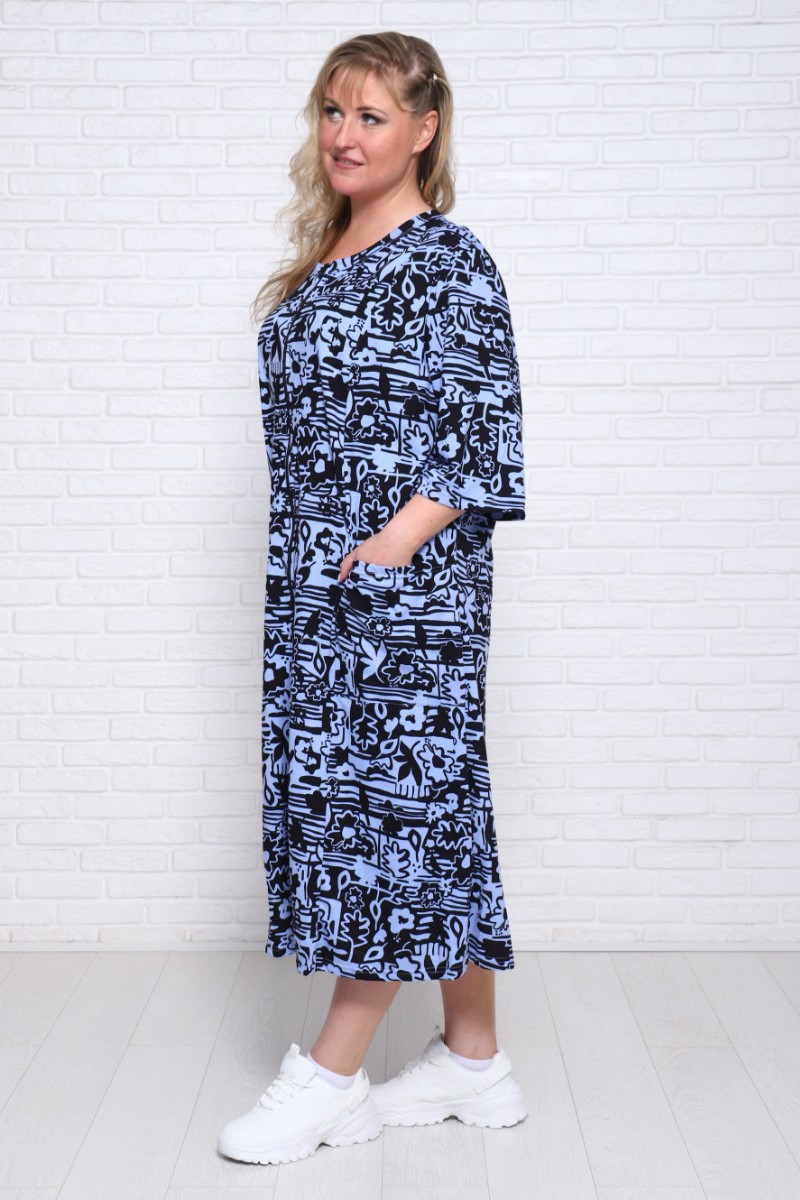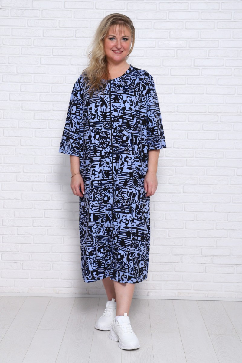 Халат женский Х-00372 кулирка (последний размер) голубой-черный 50