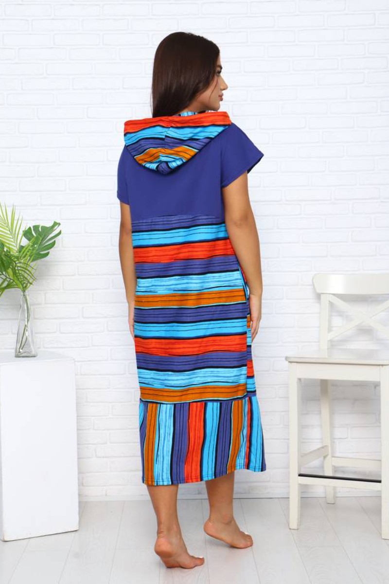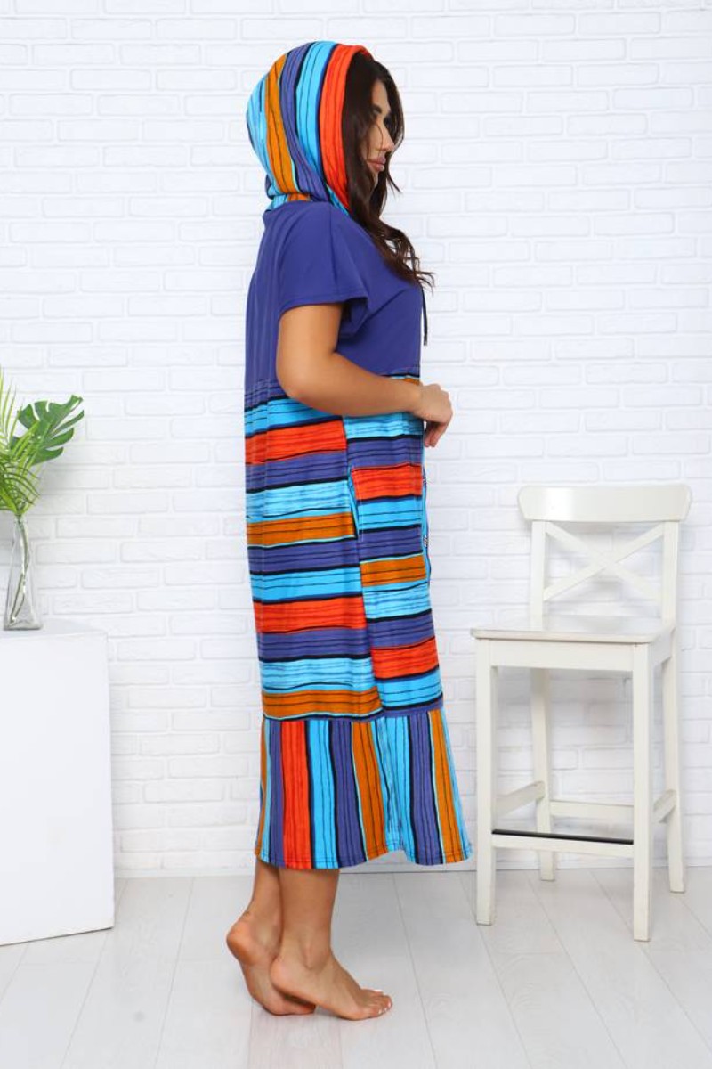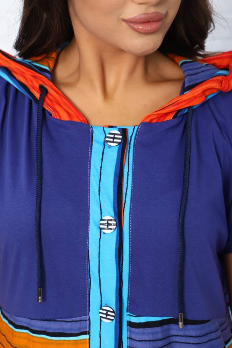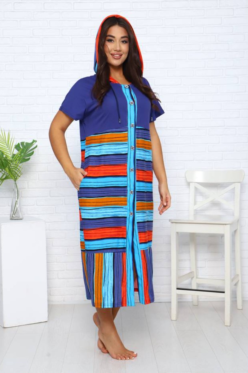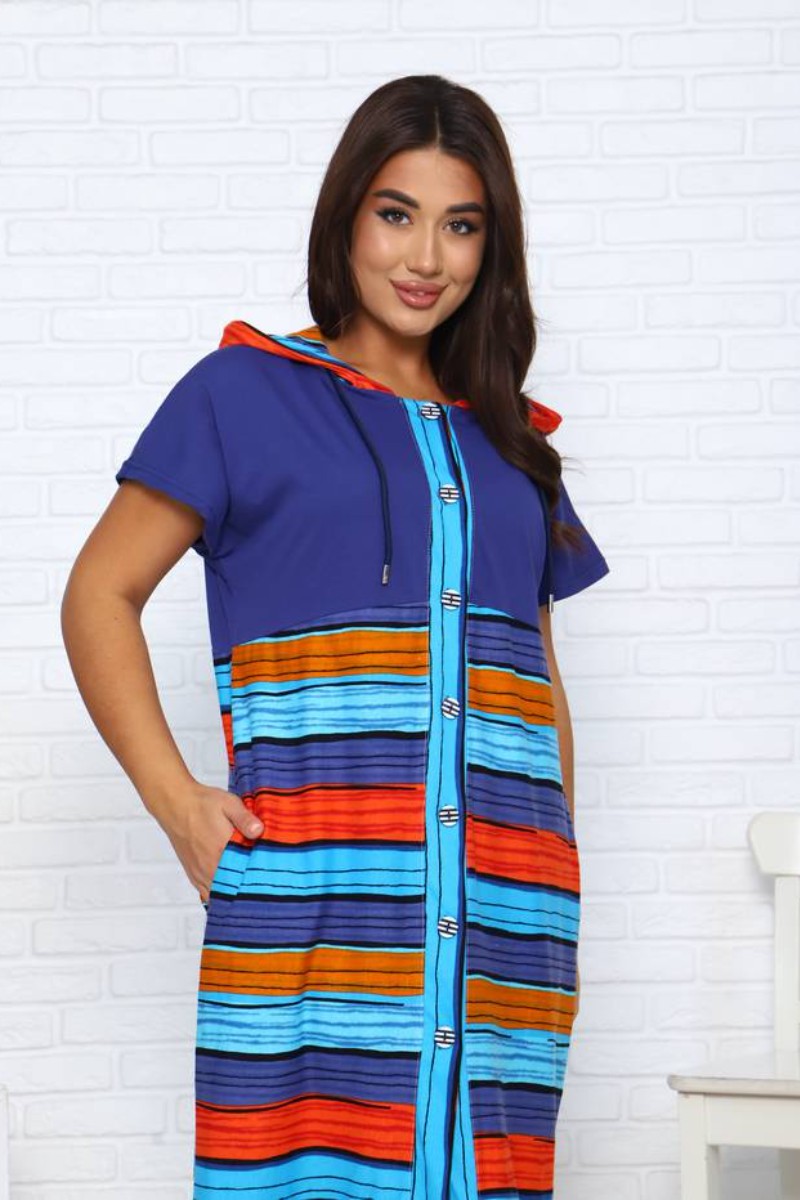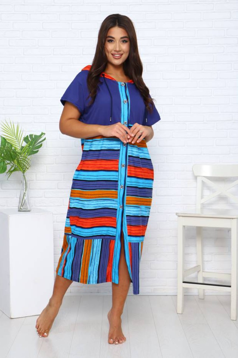 Халат женский Х-371гиг кулирка (последний размер) синий-бирюзовый 52,60