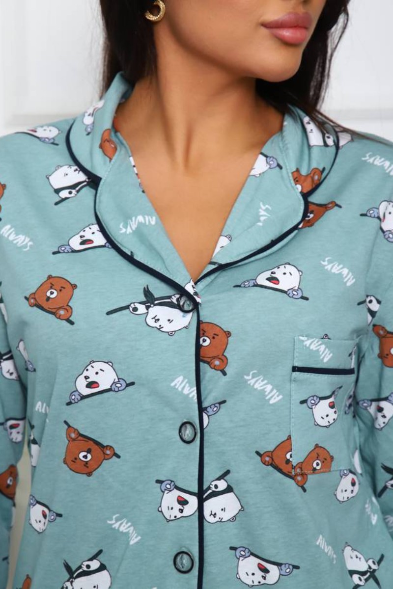 Представляем Вашему вниманию легкую женскую пижаму, состоящую из длинных брюк и рубашки на пуговицах с длинными рукавами. Комплект изготовлен из воздухопроницаемого, натурального материала, который мягко облегает тело, позволяя коже дышать и обеспечивая приятные тактильные ощущения во время отдыха.