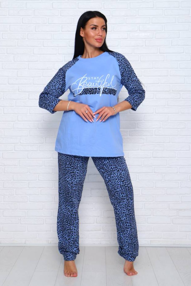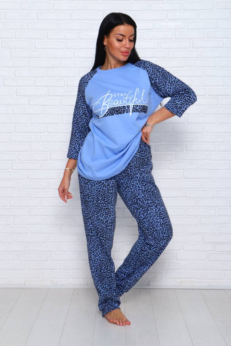 Представляем Вашему вниманию уютную женскую пижаму из футера с начёсом - 100% натурального, дышащего хлопка. Комплект имеет элегантную расцветку, которая интересно смотрится и поднимает настроение. Изделие красиво сидит на фигуре и подчеркивает её достоинства. В ней Ваш сон будет максимально приятным и расслабляющим.