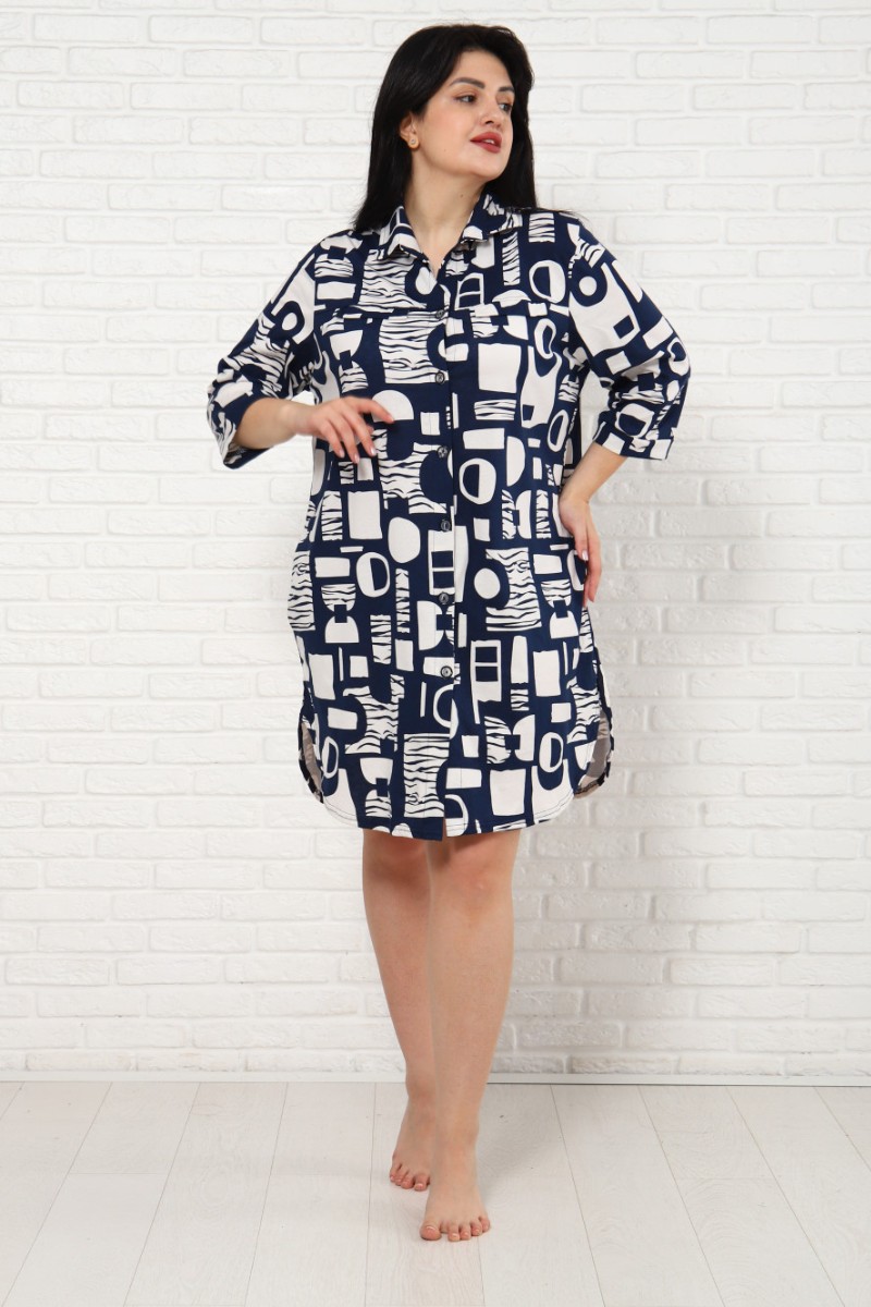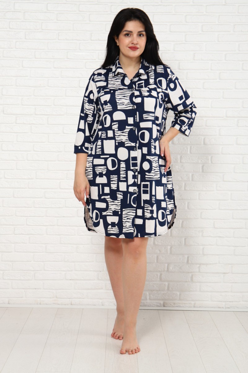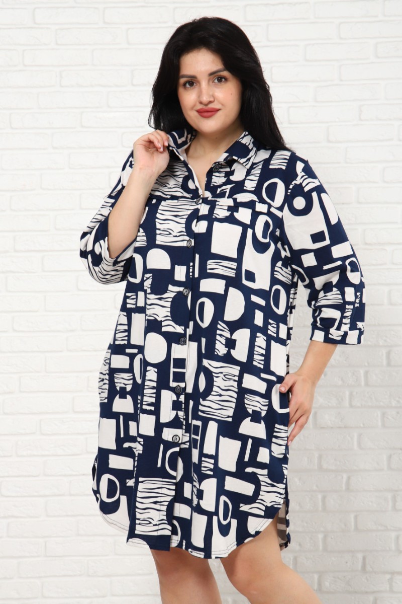 Туника женская Т-0050 кулирка (последний размер) синий-бежевый 48